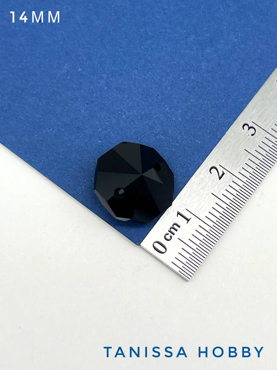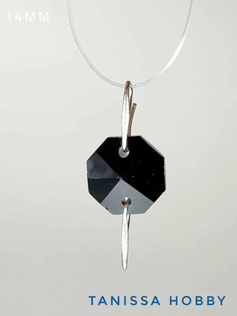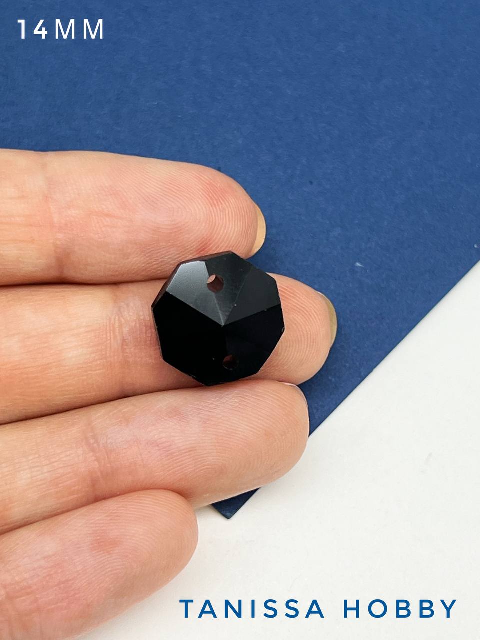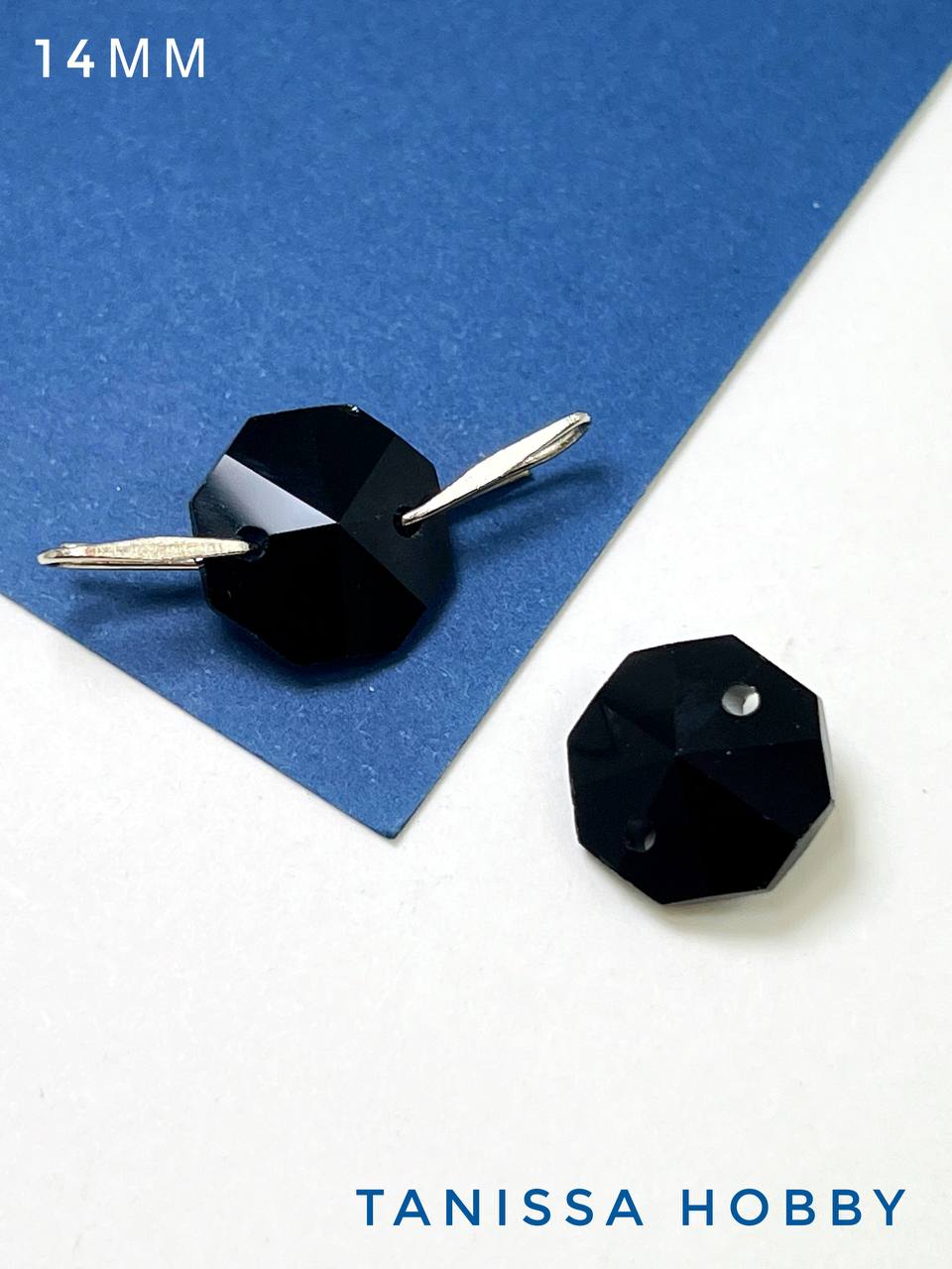 Коннектор октагон, интерьерный кристалл, 14мм, черный, ЛС070