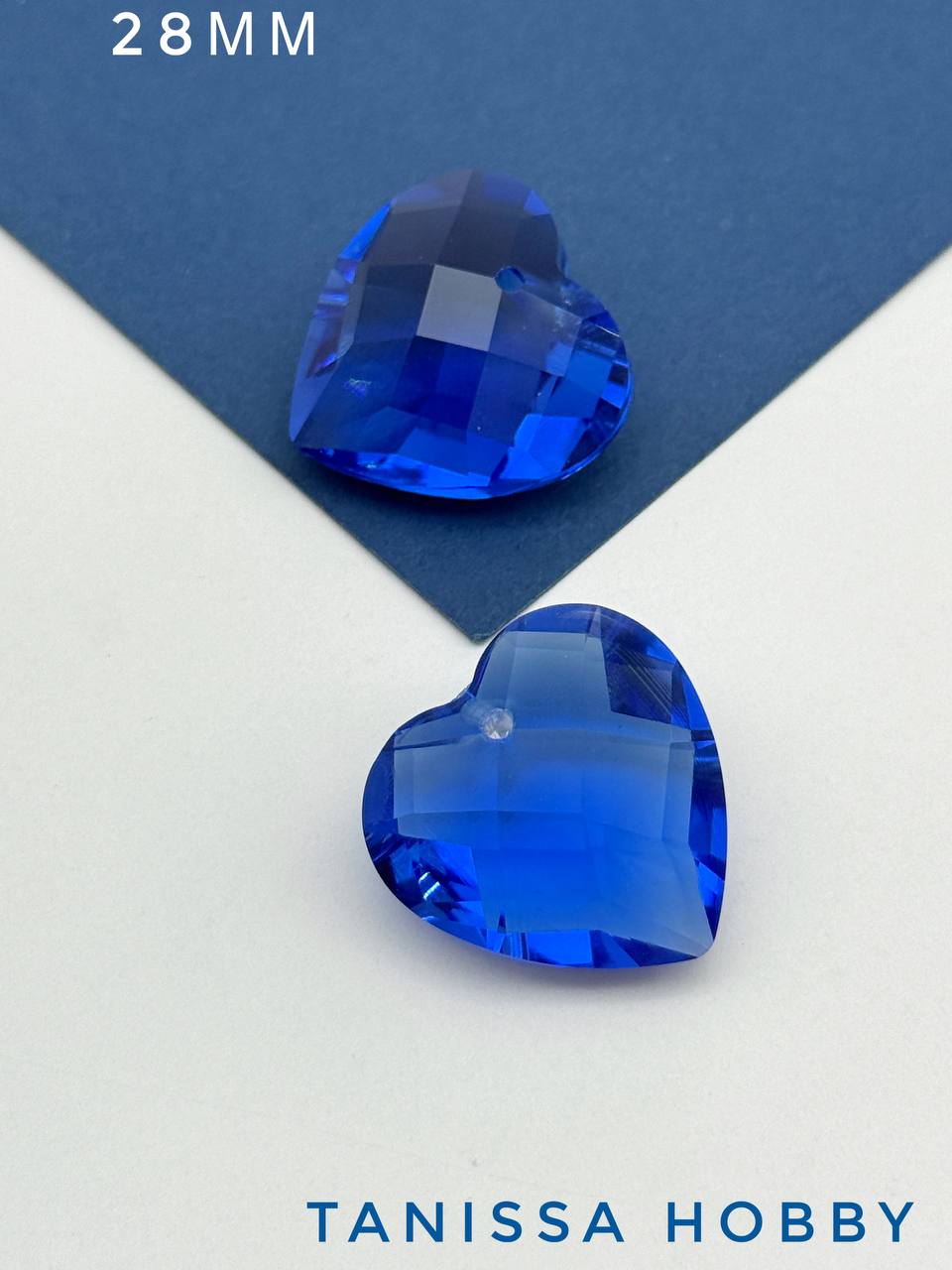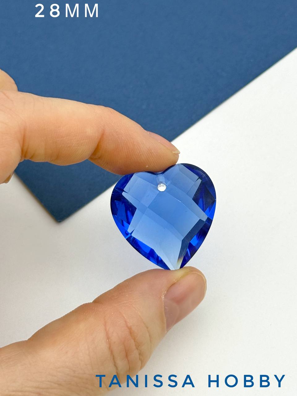 Подвеска сердце, интерьерный кристалл, синий, 28мм, хрусталь, ЛС108