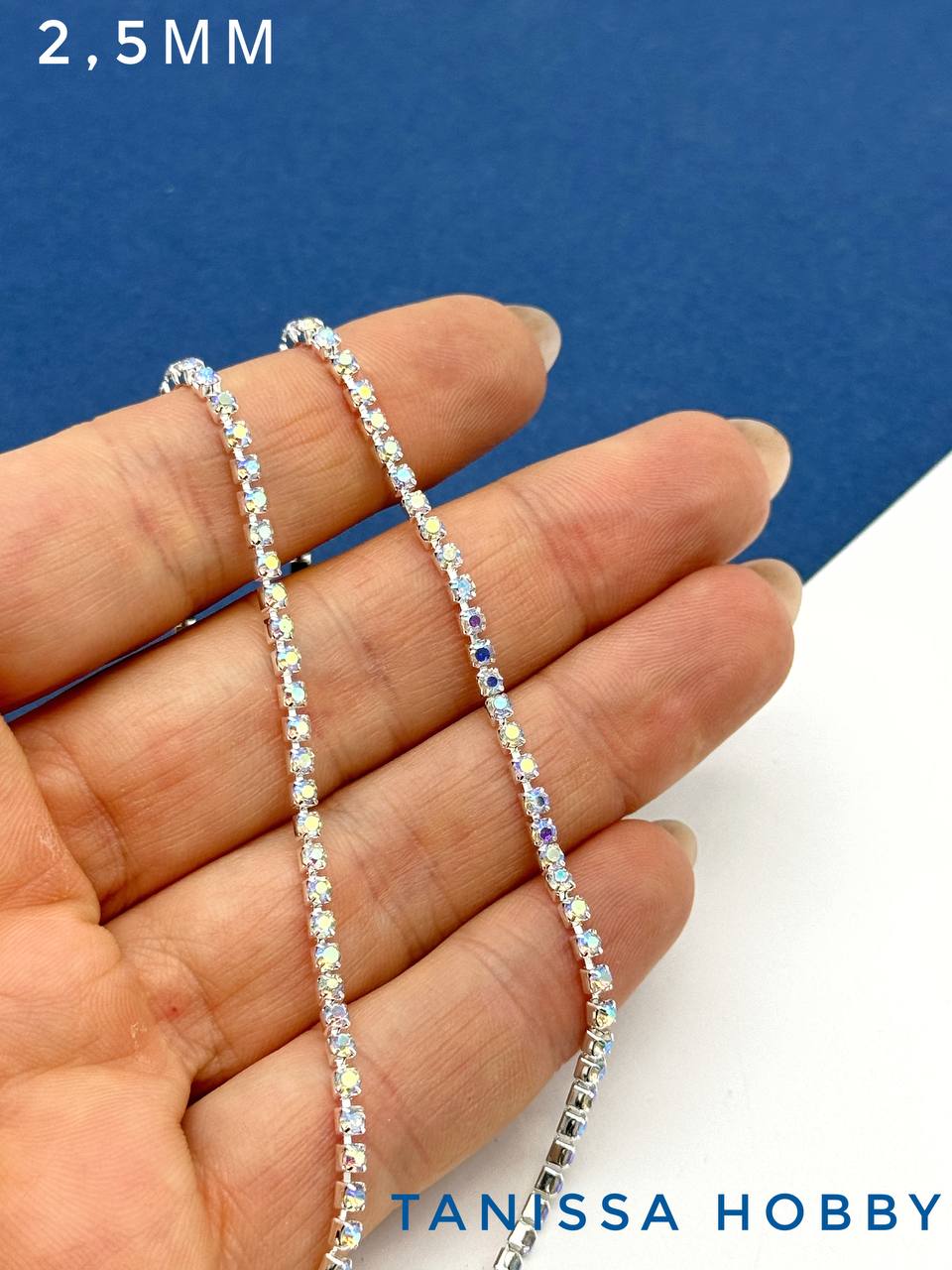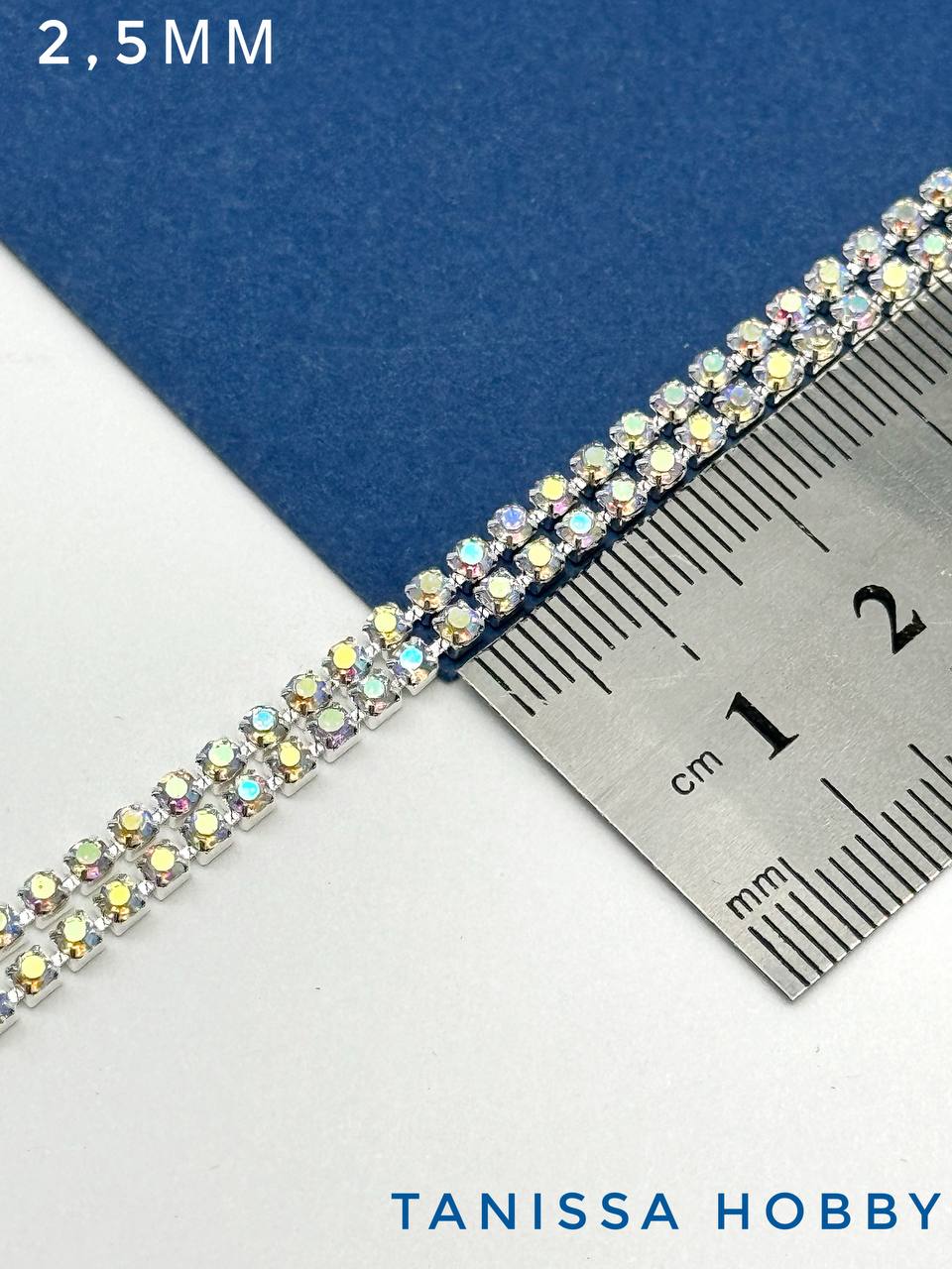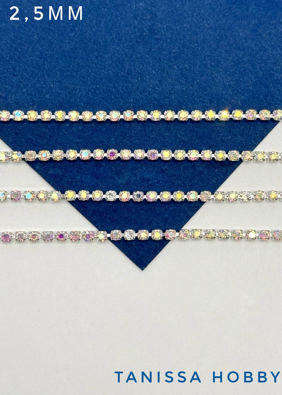 Стразовая лента цепочка SS08 2,5мм прозрачный АВ/серебро 10см. СТ029