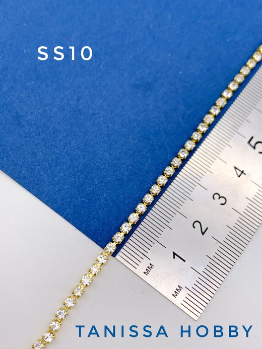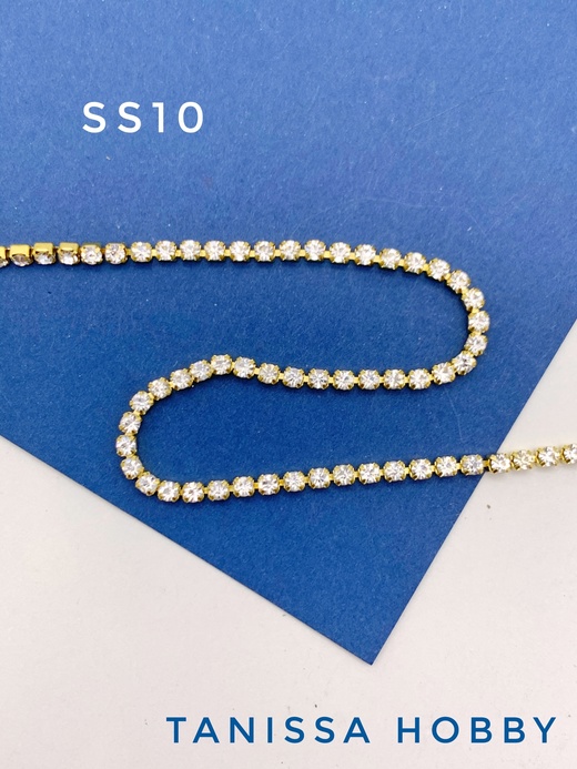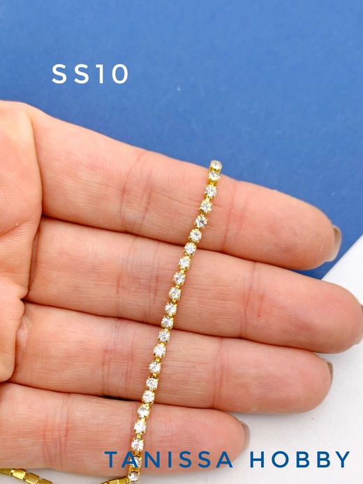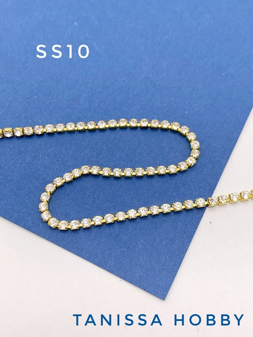 Стразовая лента цепочка SS10 2,8мм прозрачный/золото 10 см. СТ007