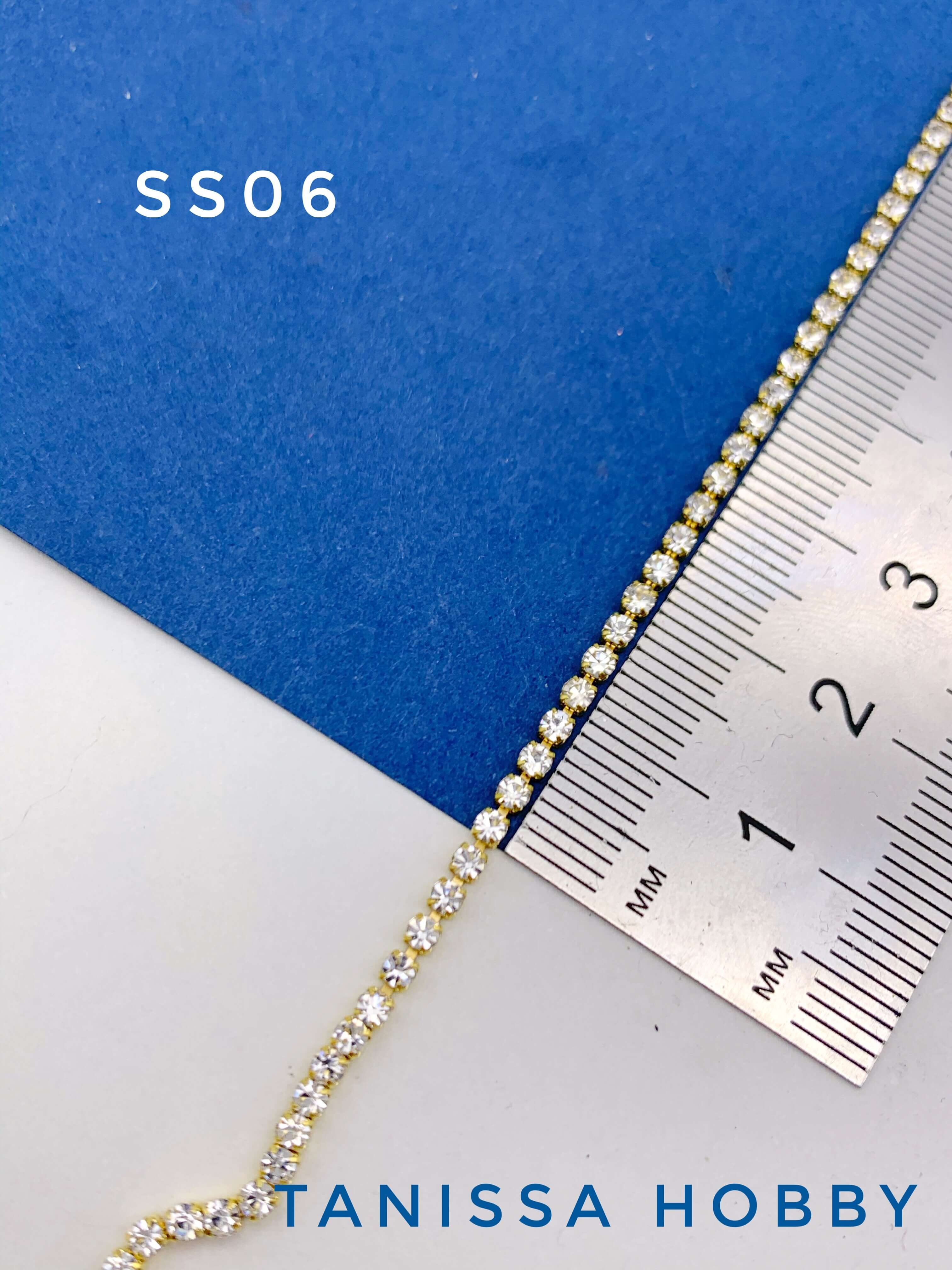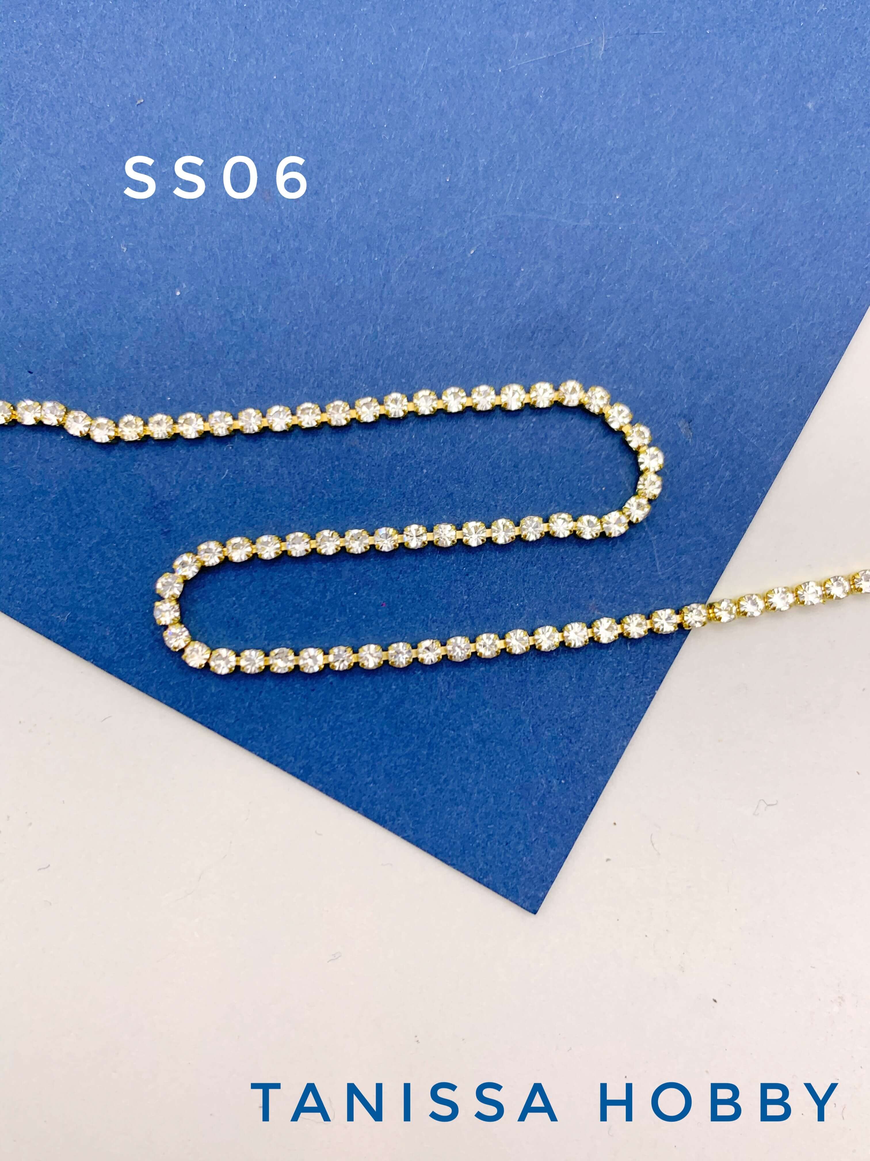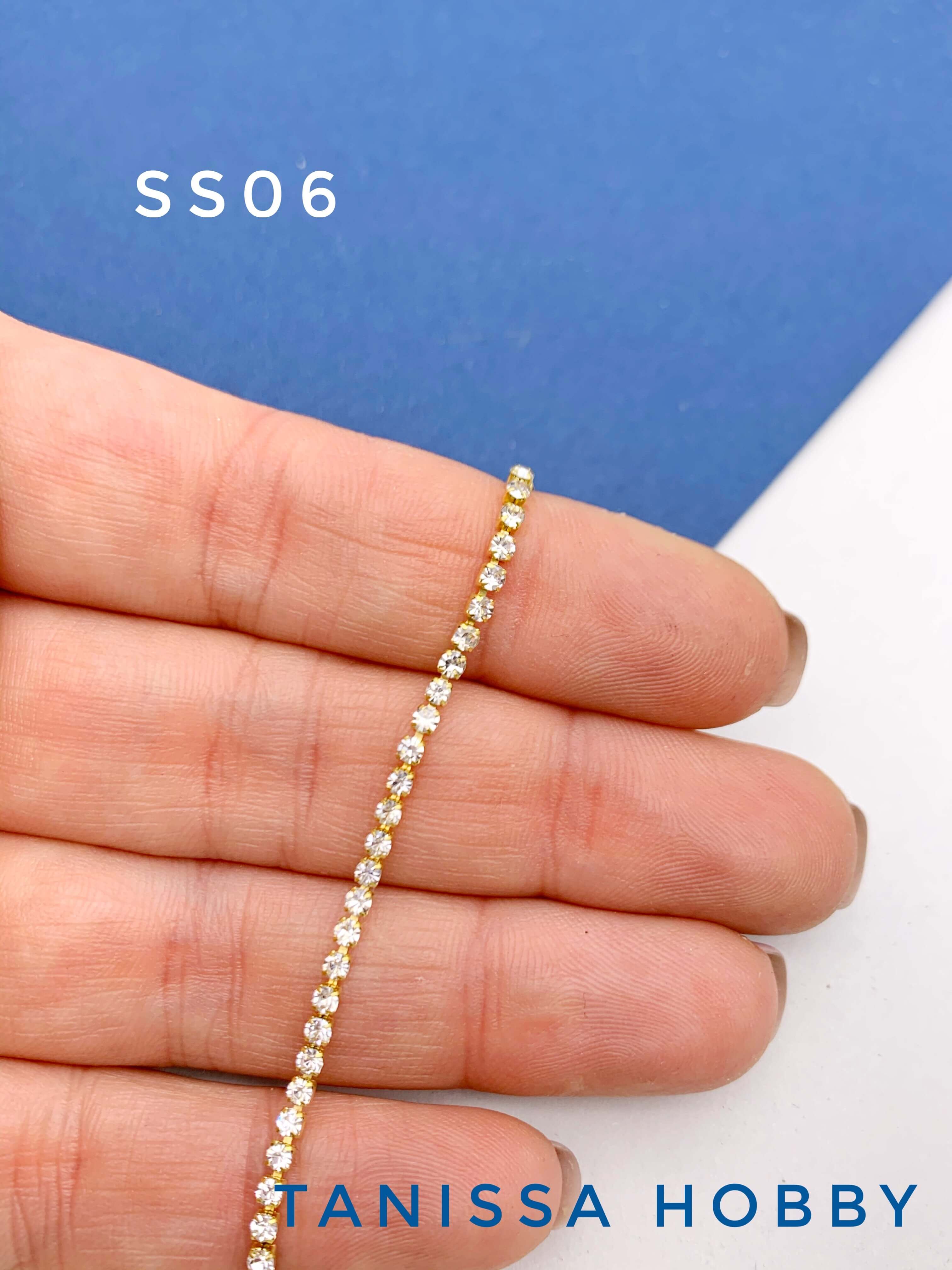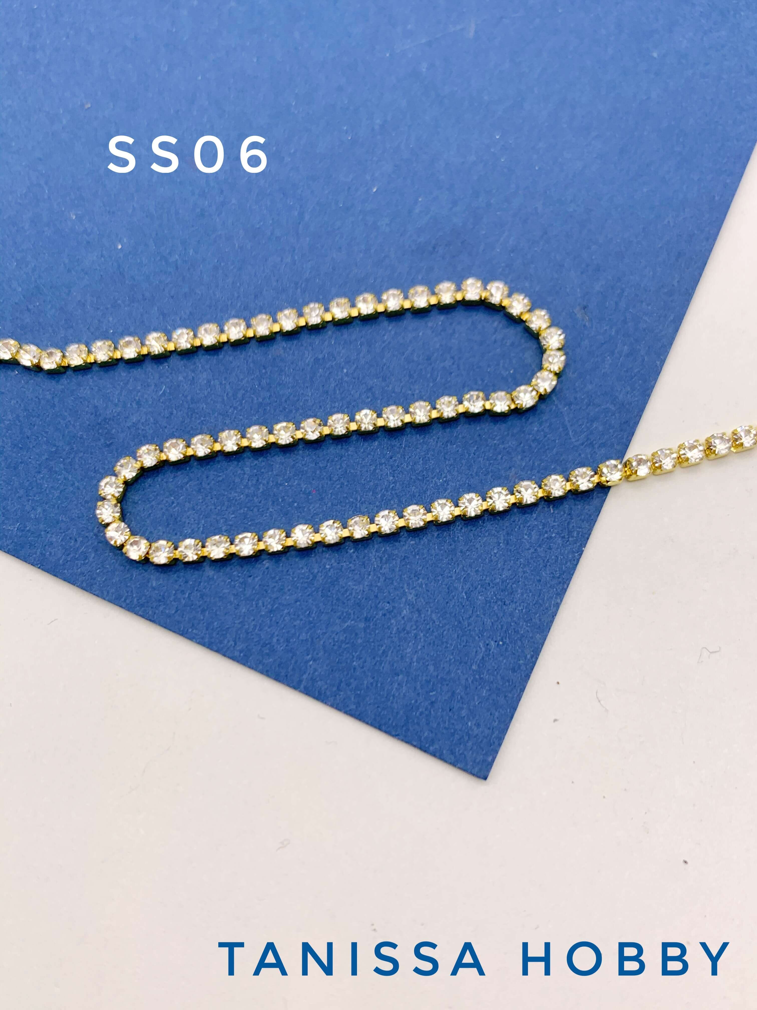 Стразовая лента цепочка SS06 2мм прозрачный/золото 10см. СТ005