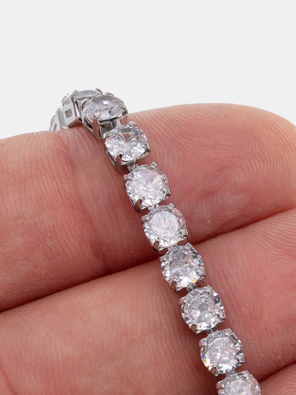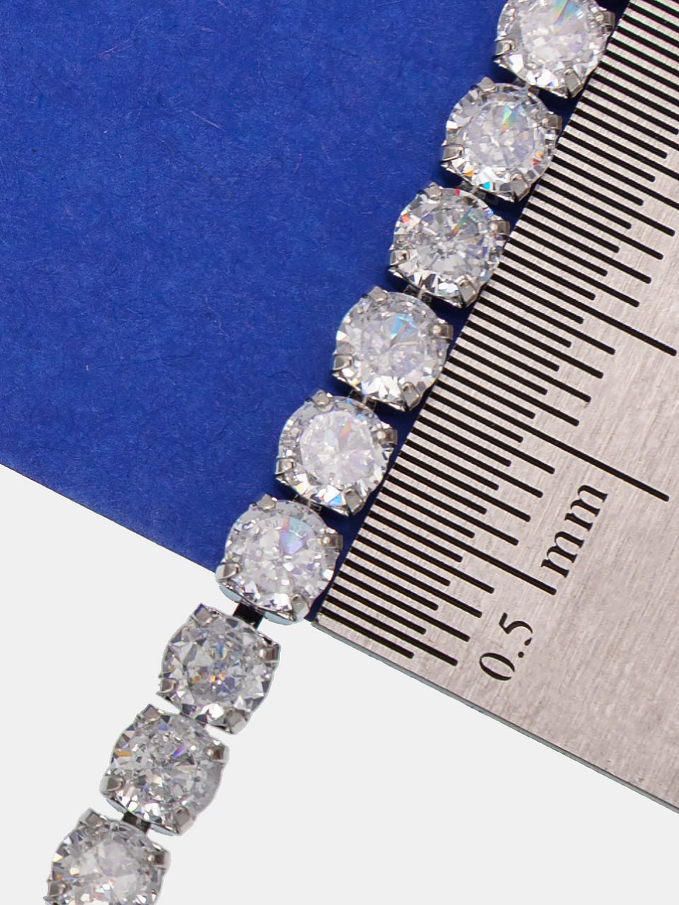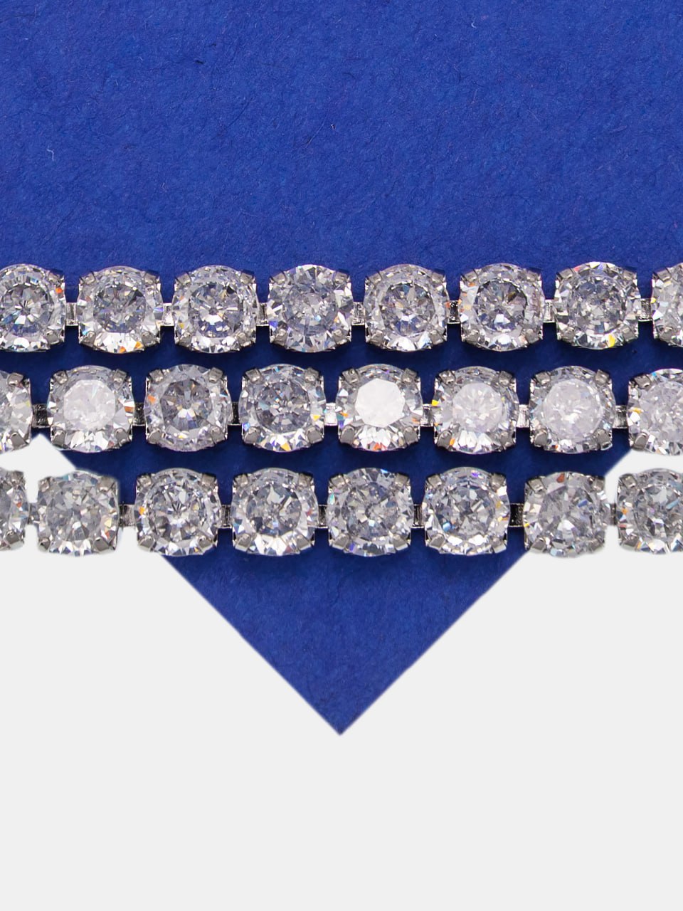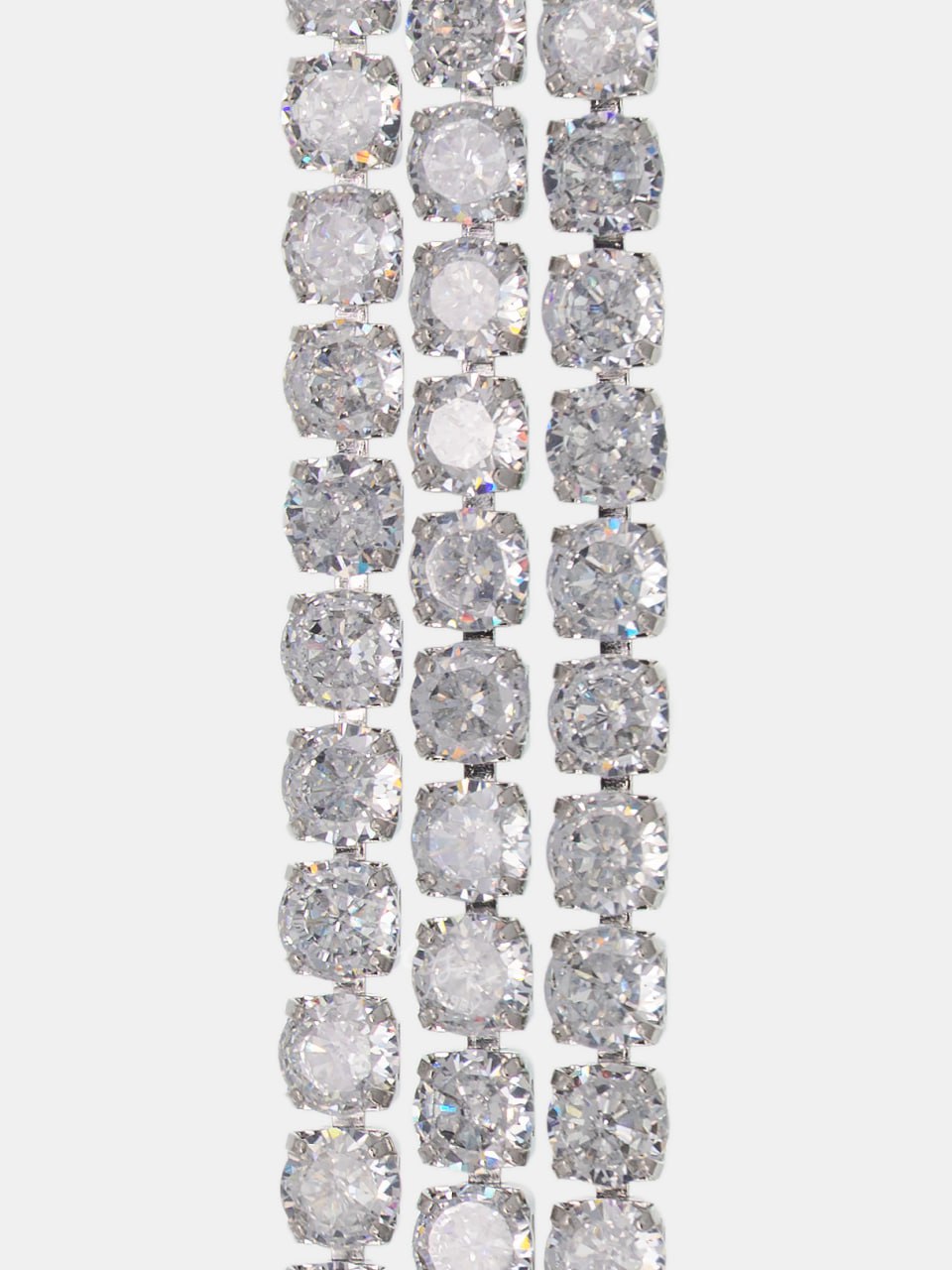 Стразовая цепь с прозрачными кристаллами в родиевой основе.