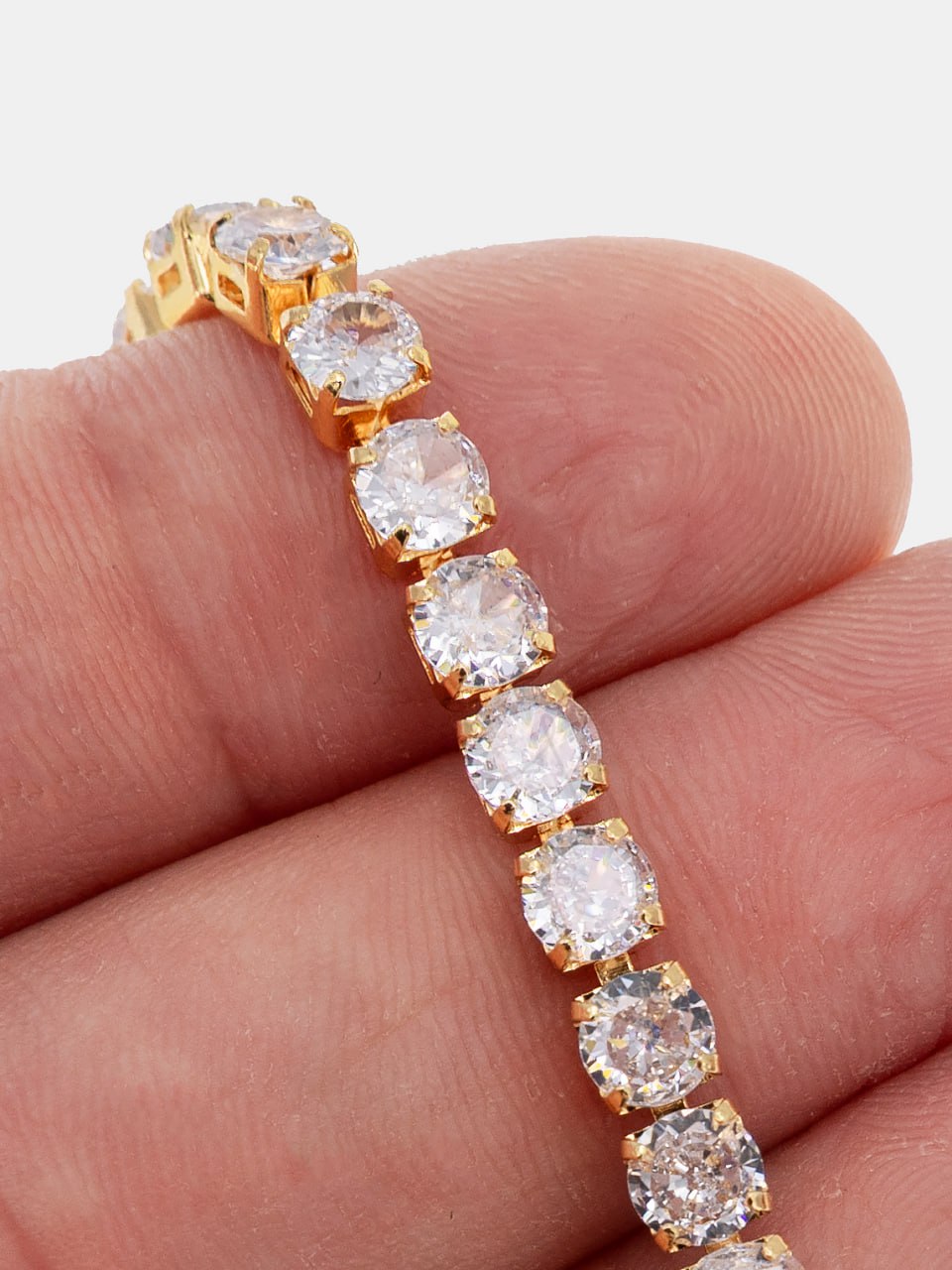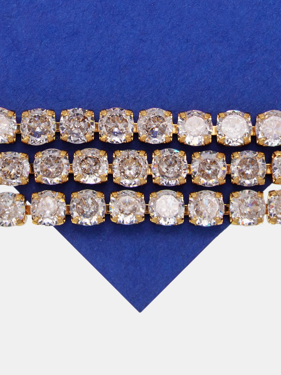 Стразовая цепь с прозрачными кристаллами в позолоченной основе.