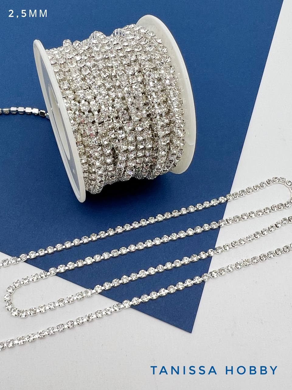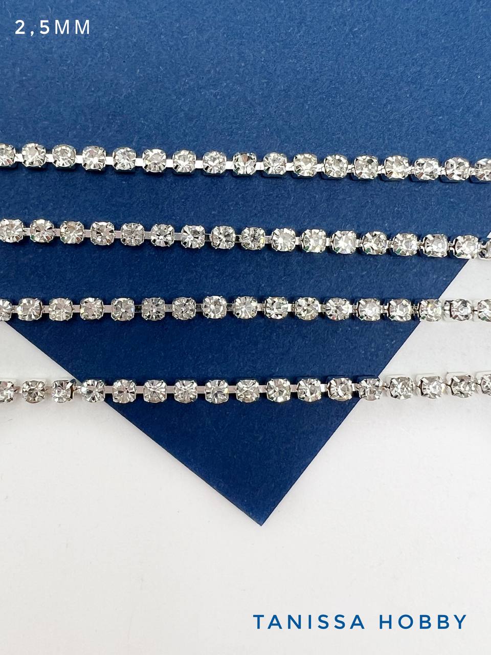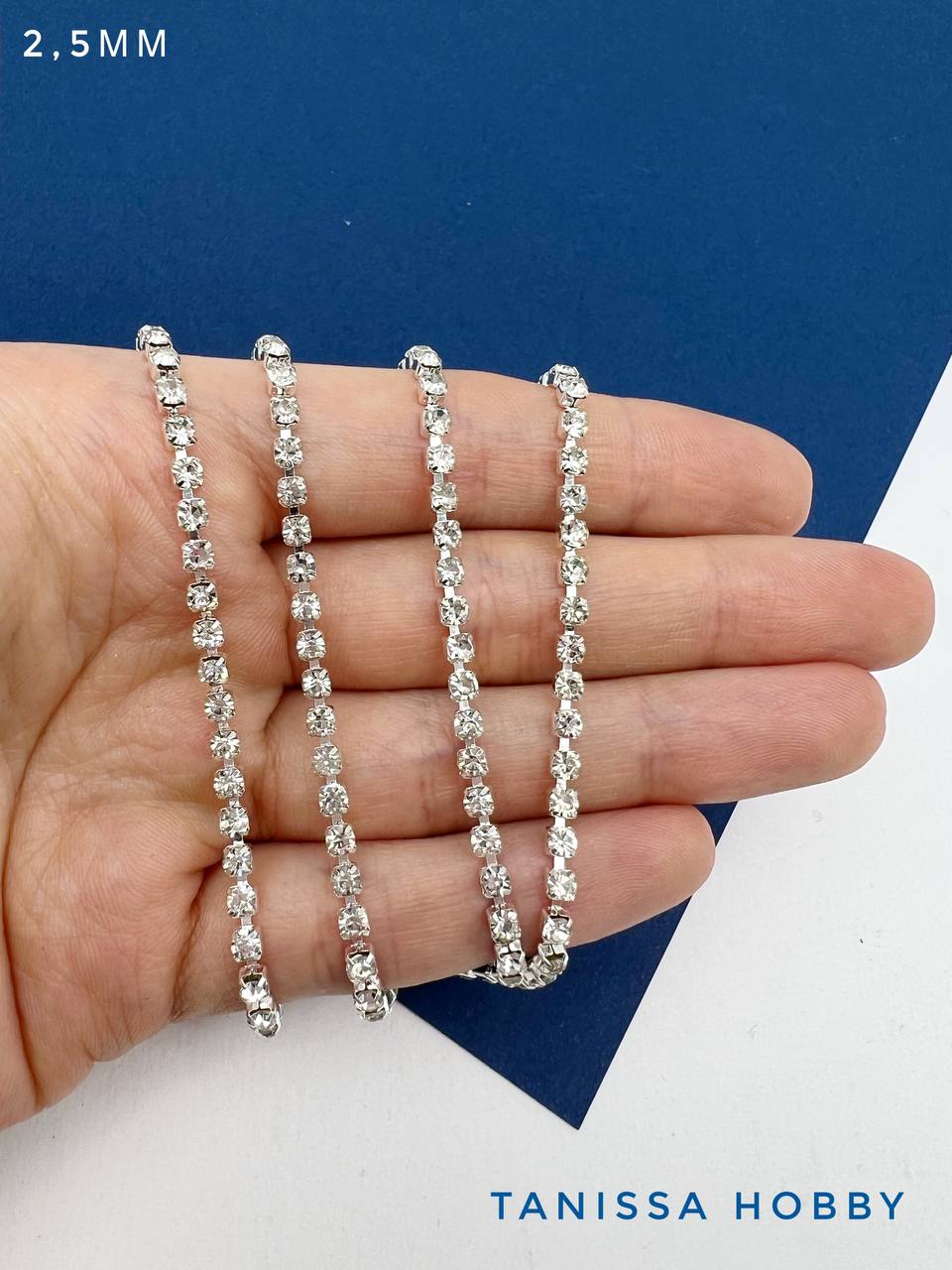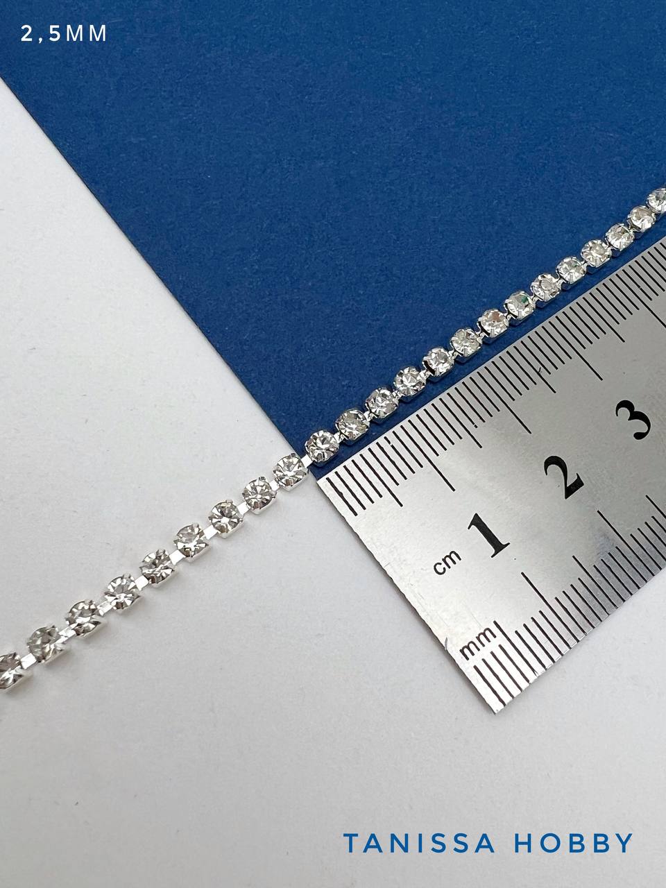 Стразовая лента цепочка SS08 2,5мм прозрачный/серебро 10см. СТ002