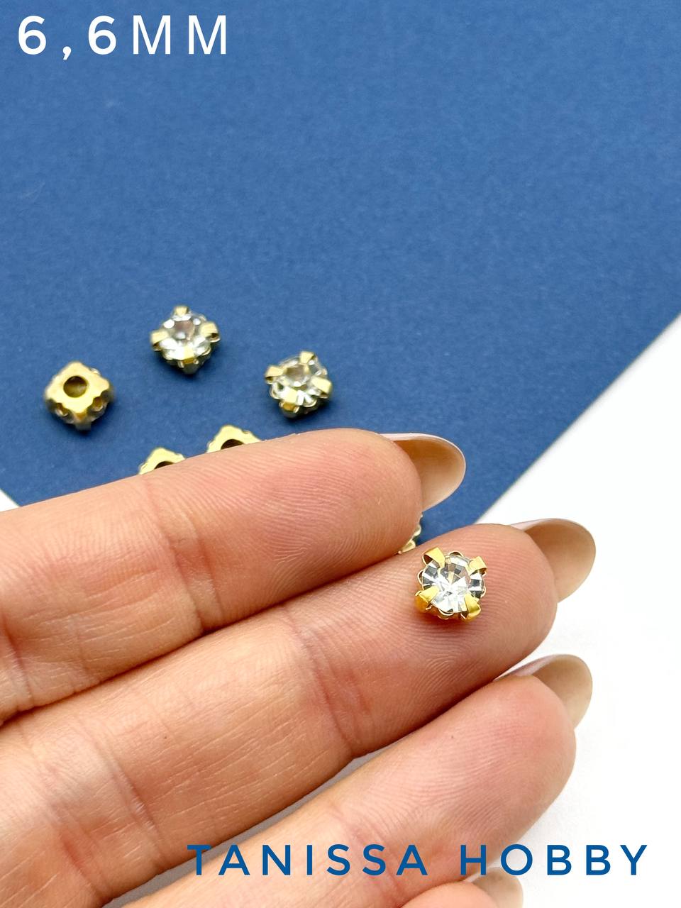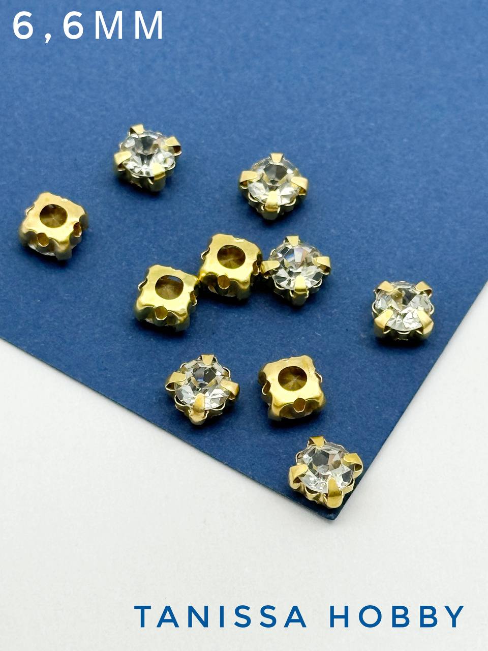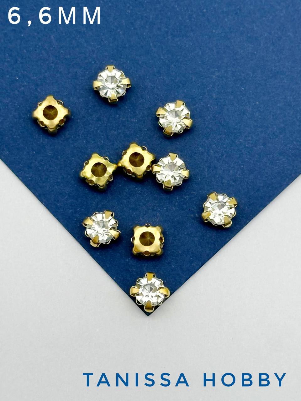 Стразы Шатоны, 6,6мм прозрачный, золото, 31SS, 10 штук, СТ212
