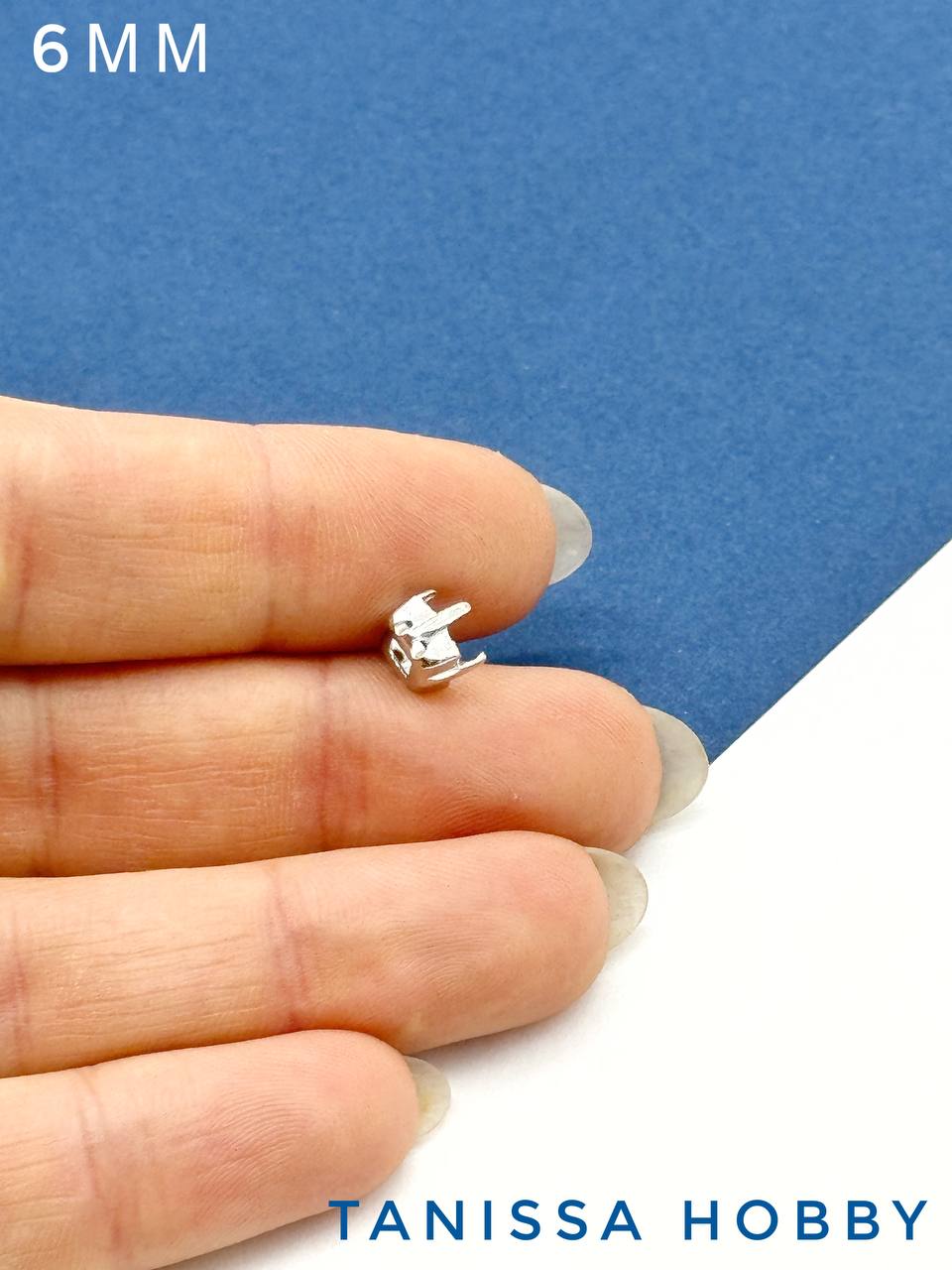 Оправа (цапы) для кристалла квадрат Square, 6мм, родий, СТ103