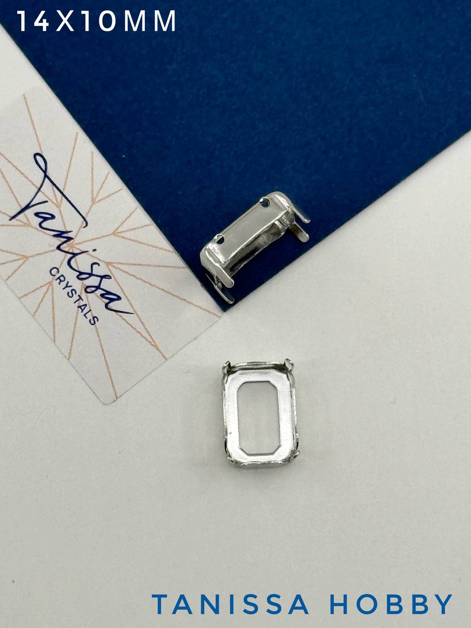 Оправа (цапы) для кристалла прямоугольник Octagon 14х10мм, родий, СТ117