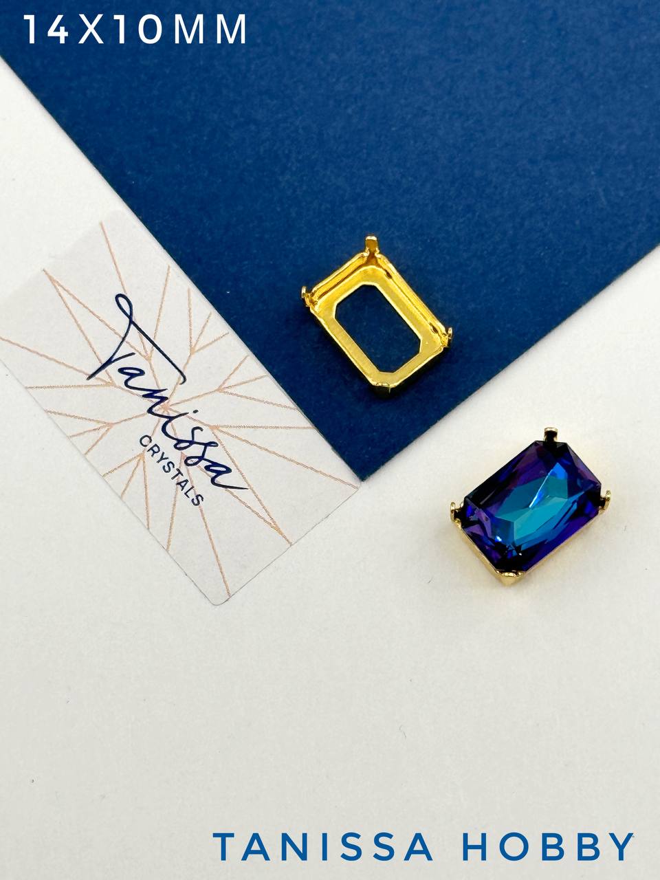 Оправа (цапы) для кристалла прямоугольник Octagon 14х10мм, позолота, СТ123
