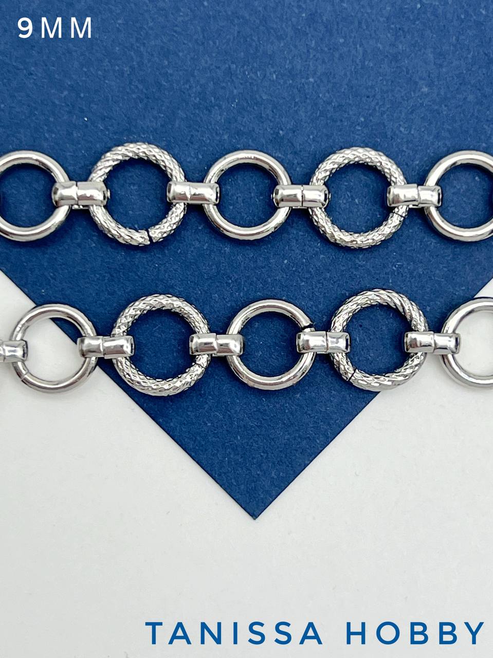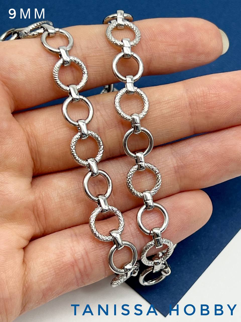 Цепочка плоский витой круг 9мм, родий, 50 СМ. СН003