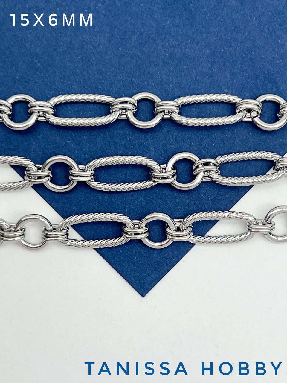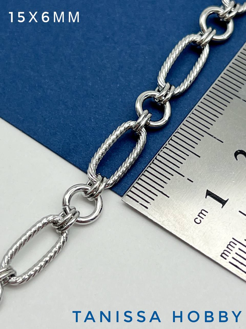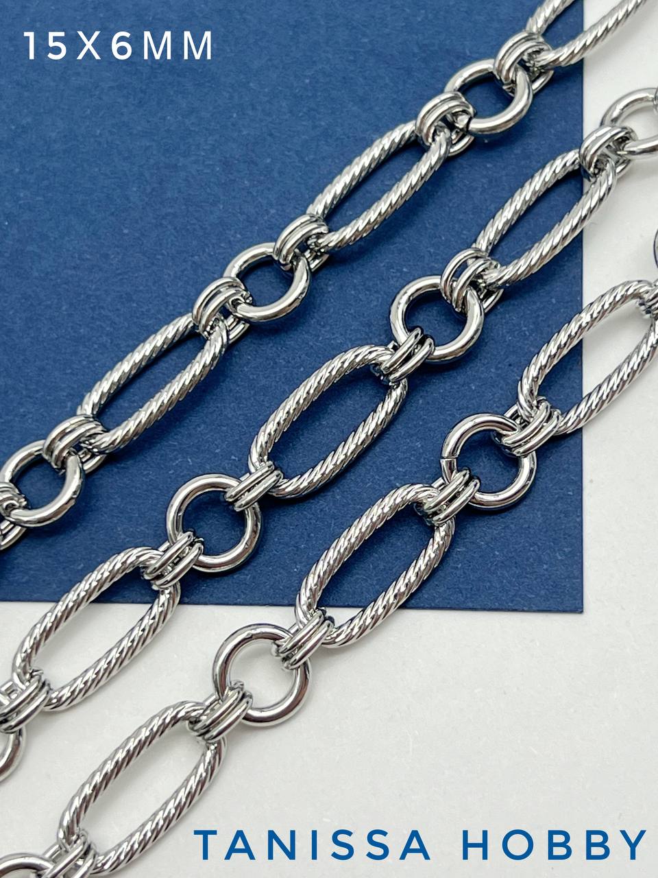 Цепочка витые овалы, 15х6мм, родий, 50СМ, СН079