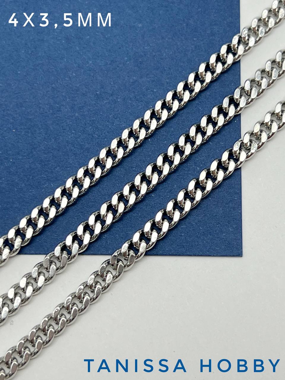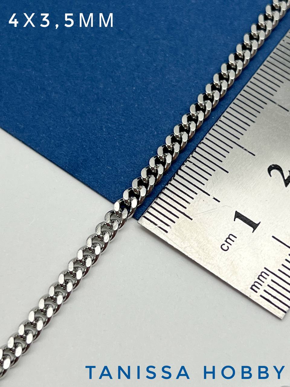 Цепочка панцирная 4х3,5мм, родий, 50см, СН093
