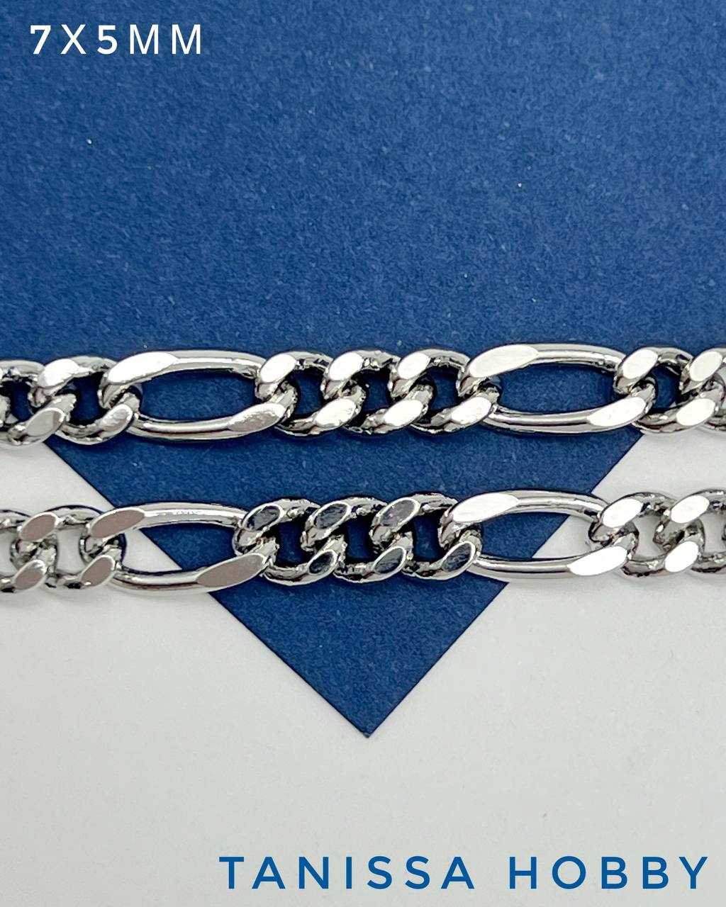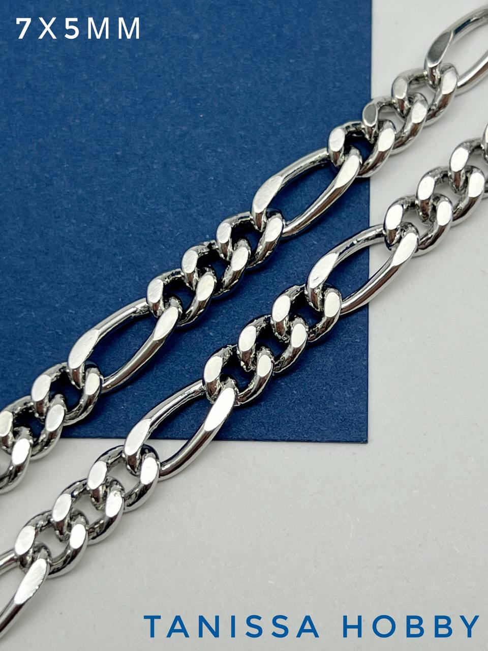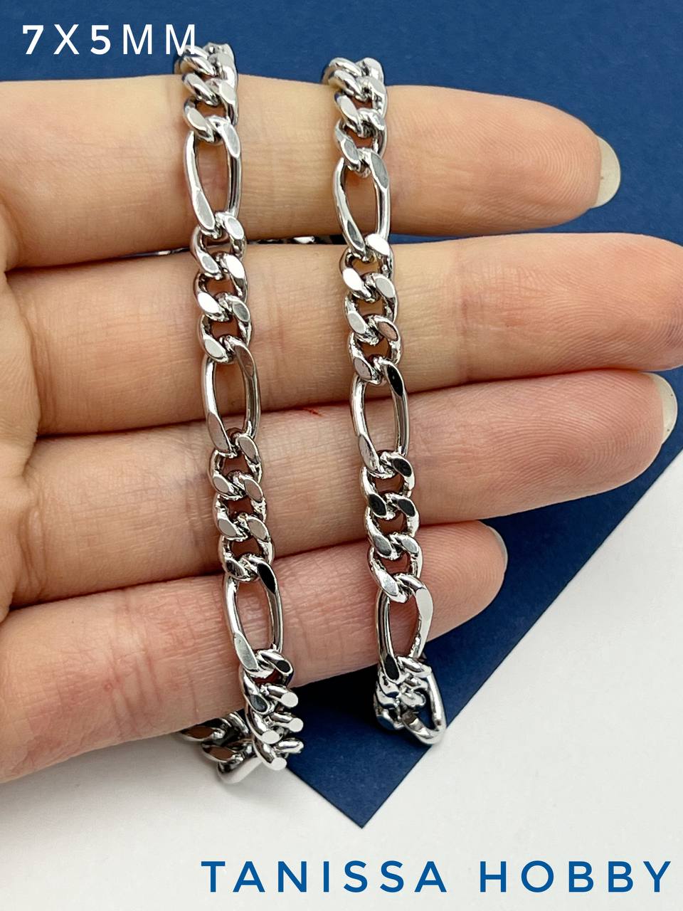 Цепочка панцирная, Фигаро, 7х5мм, родий, 50см, СН106