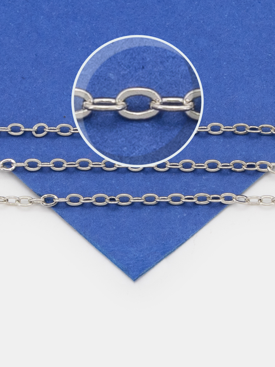 Цепочка тонкая 2,5х2мм, плоские звенья, родий, 50СМ. СН141