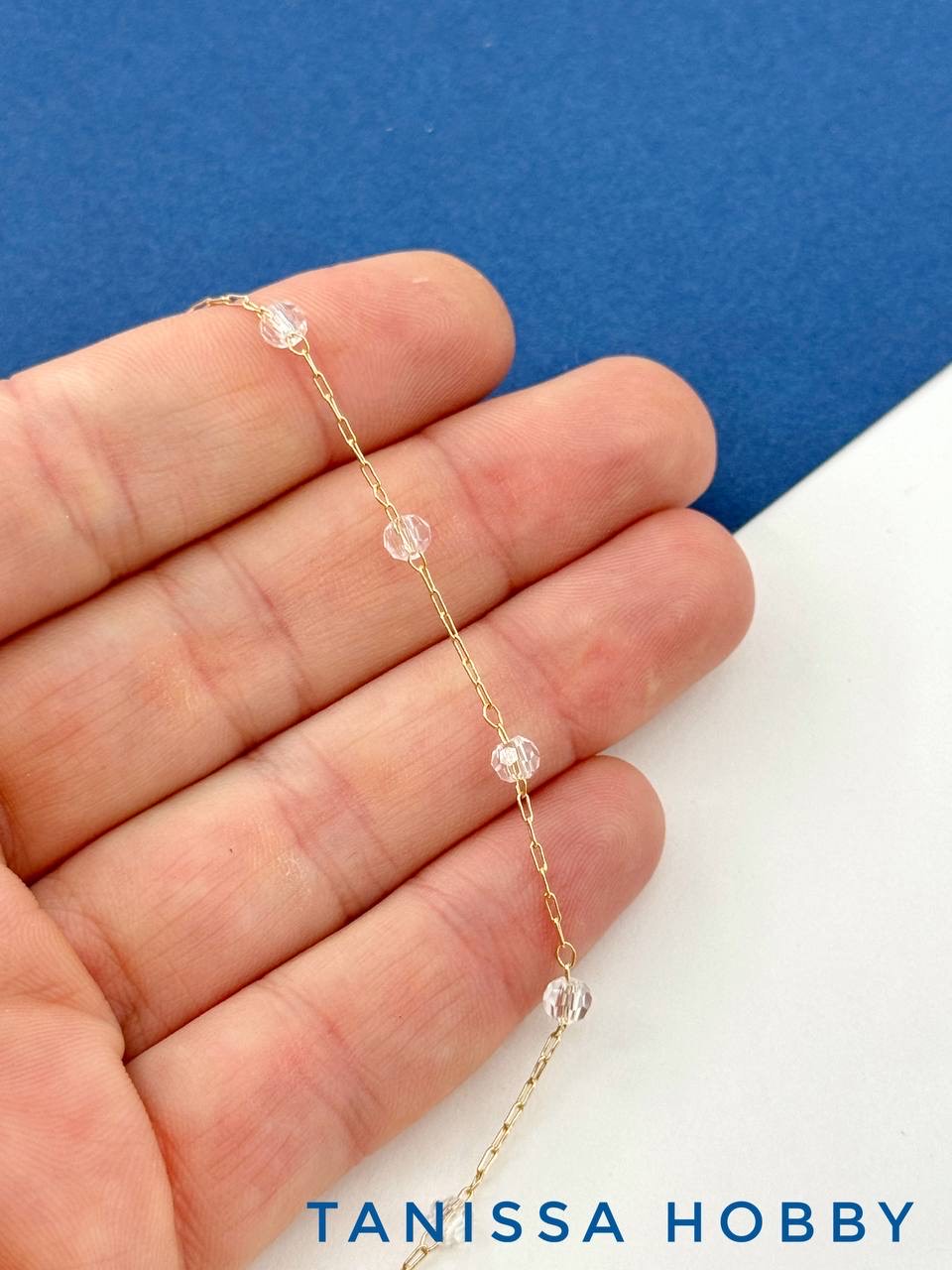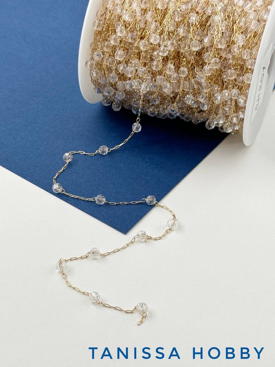 Очень красивая изящная цепочка с хрустальными стеклянными бусами. Теперь не нужно вручную закручивать пины на каждой маленькой бусине самостоятельно!