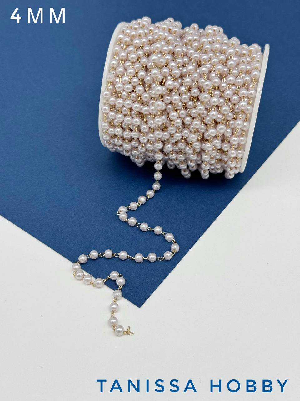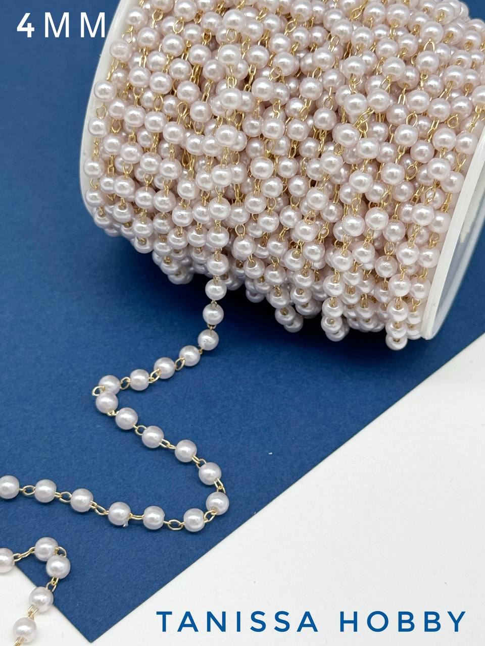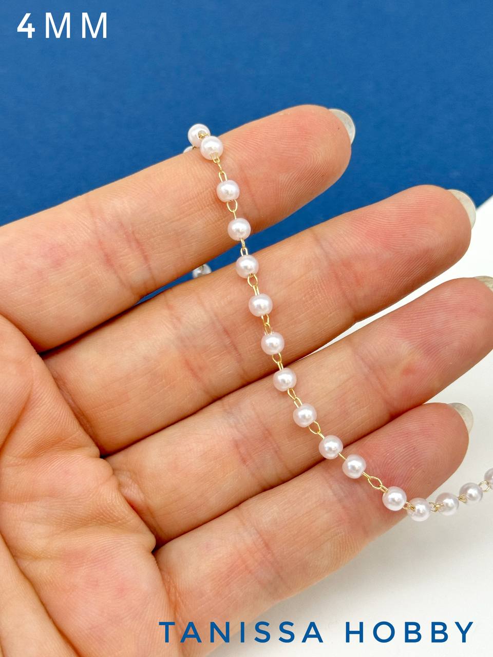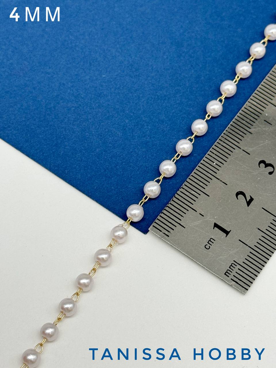Цепочка тонкая с акриловым жемчугом 4мм, 50см, позолота, СН205
