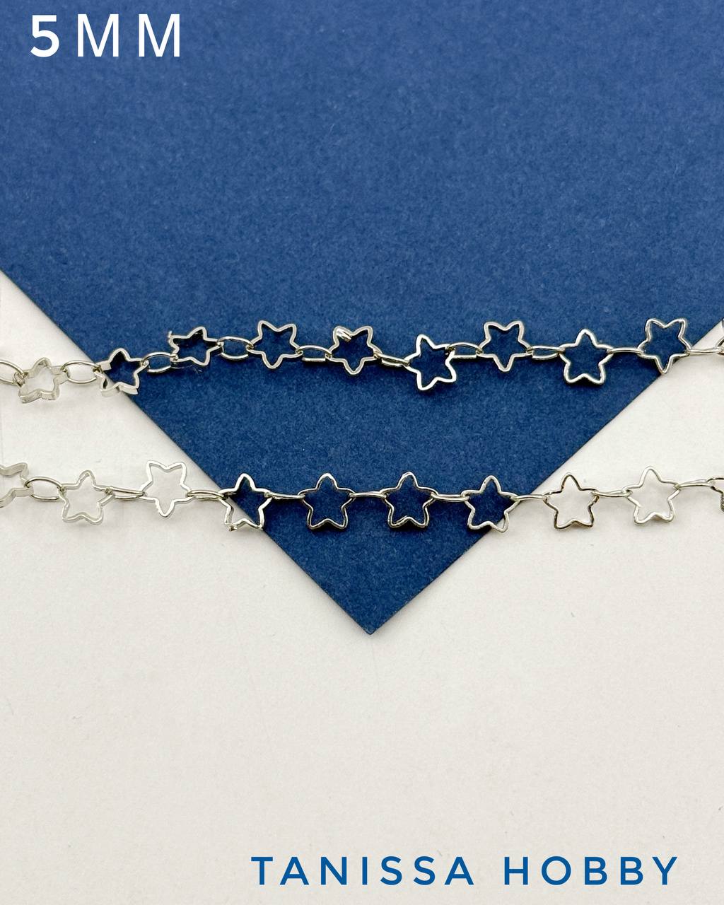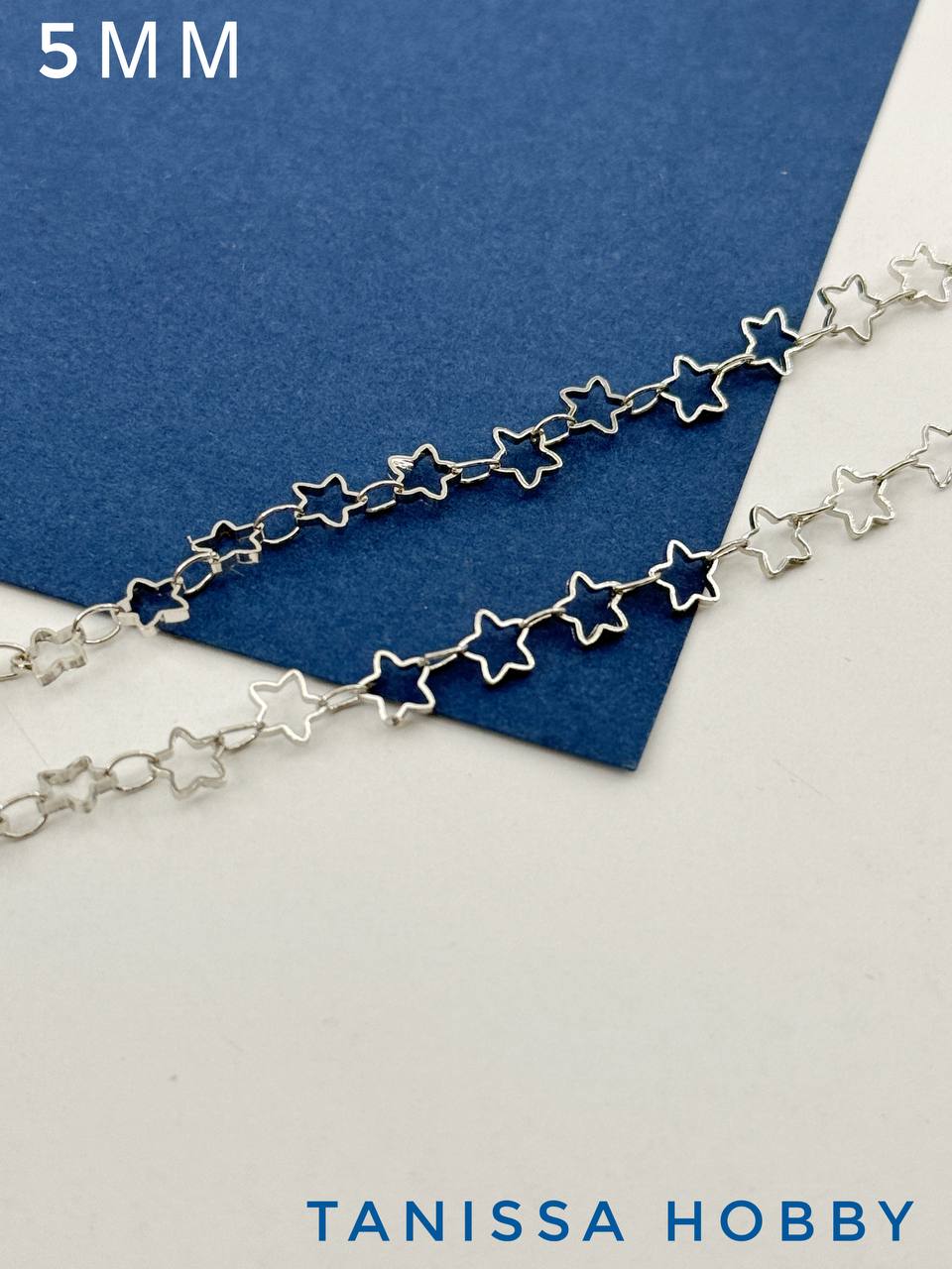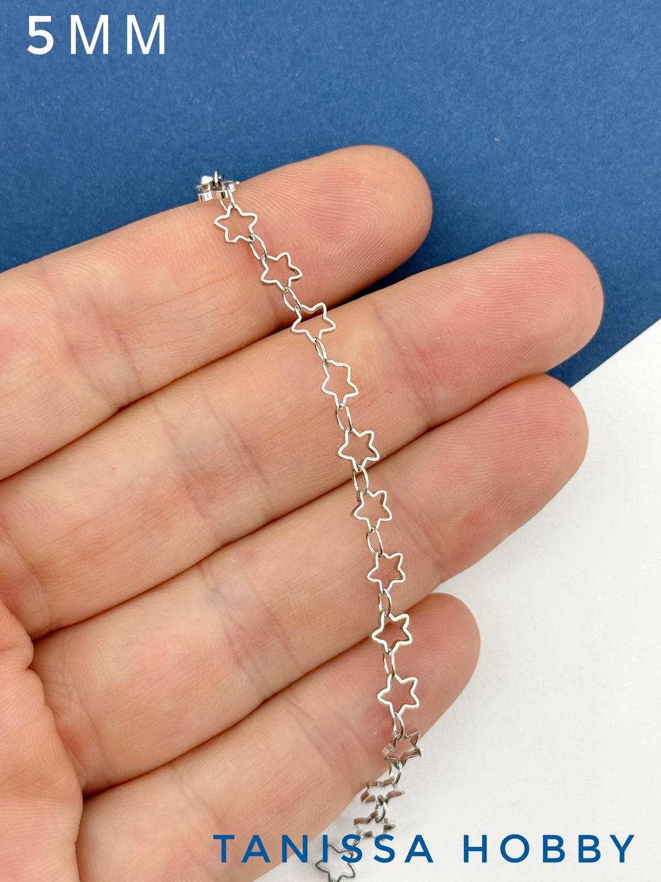 -Цепочка якорная звезды 5мм, Категория В, родий, 50см, СН020