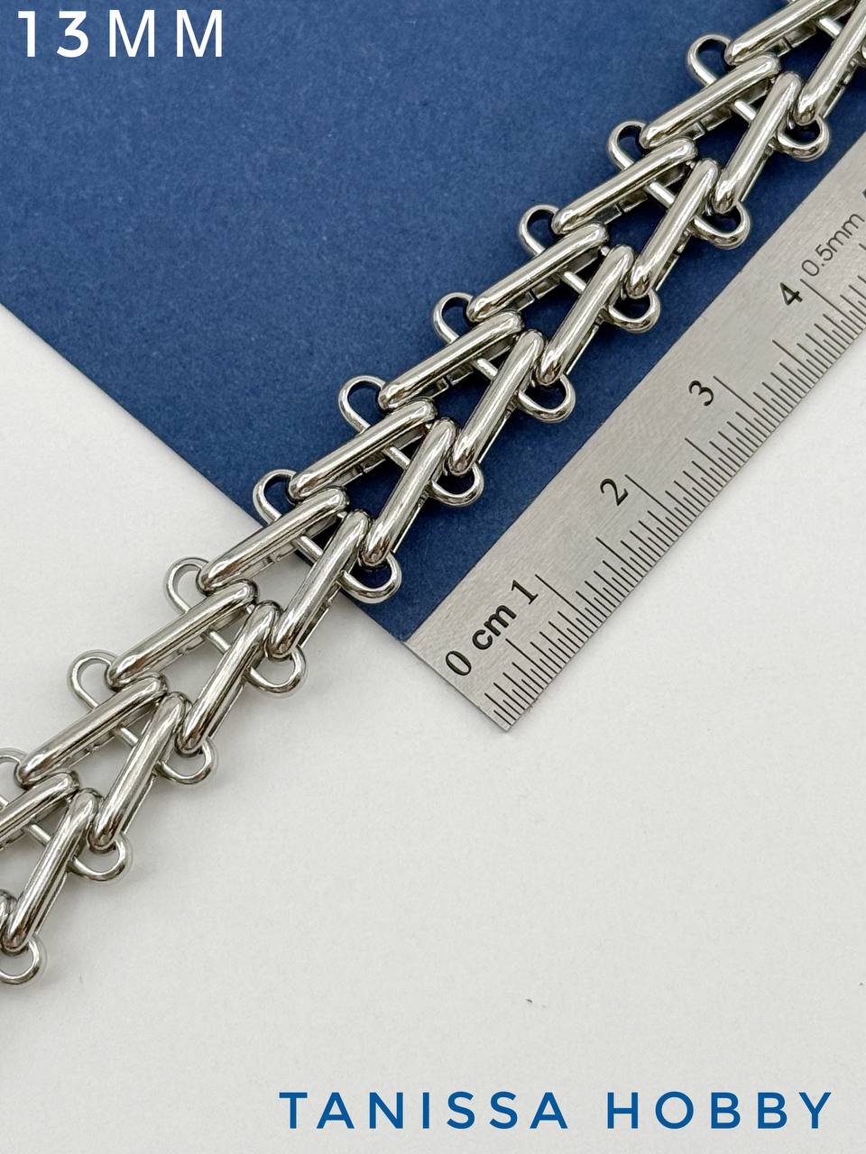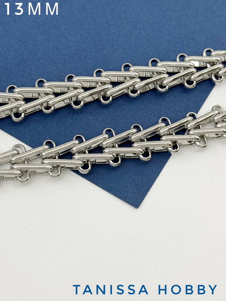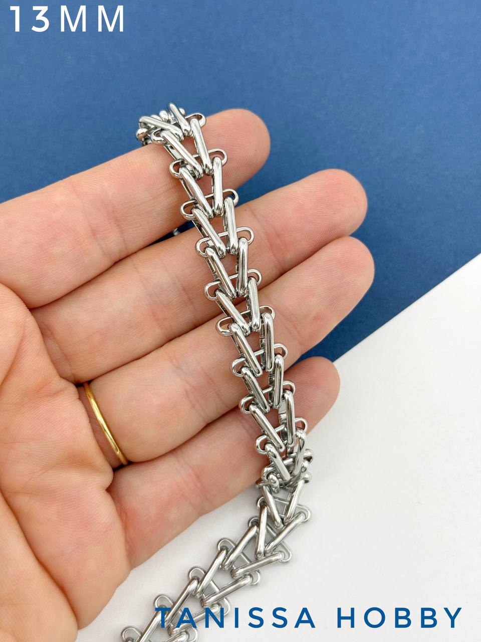 -Цепочка овалы елочка, позвоночное плетение, 13мм, 10см, сталь, Ч973