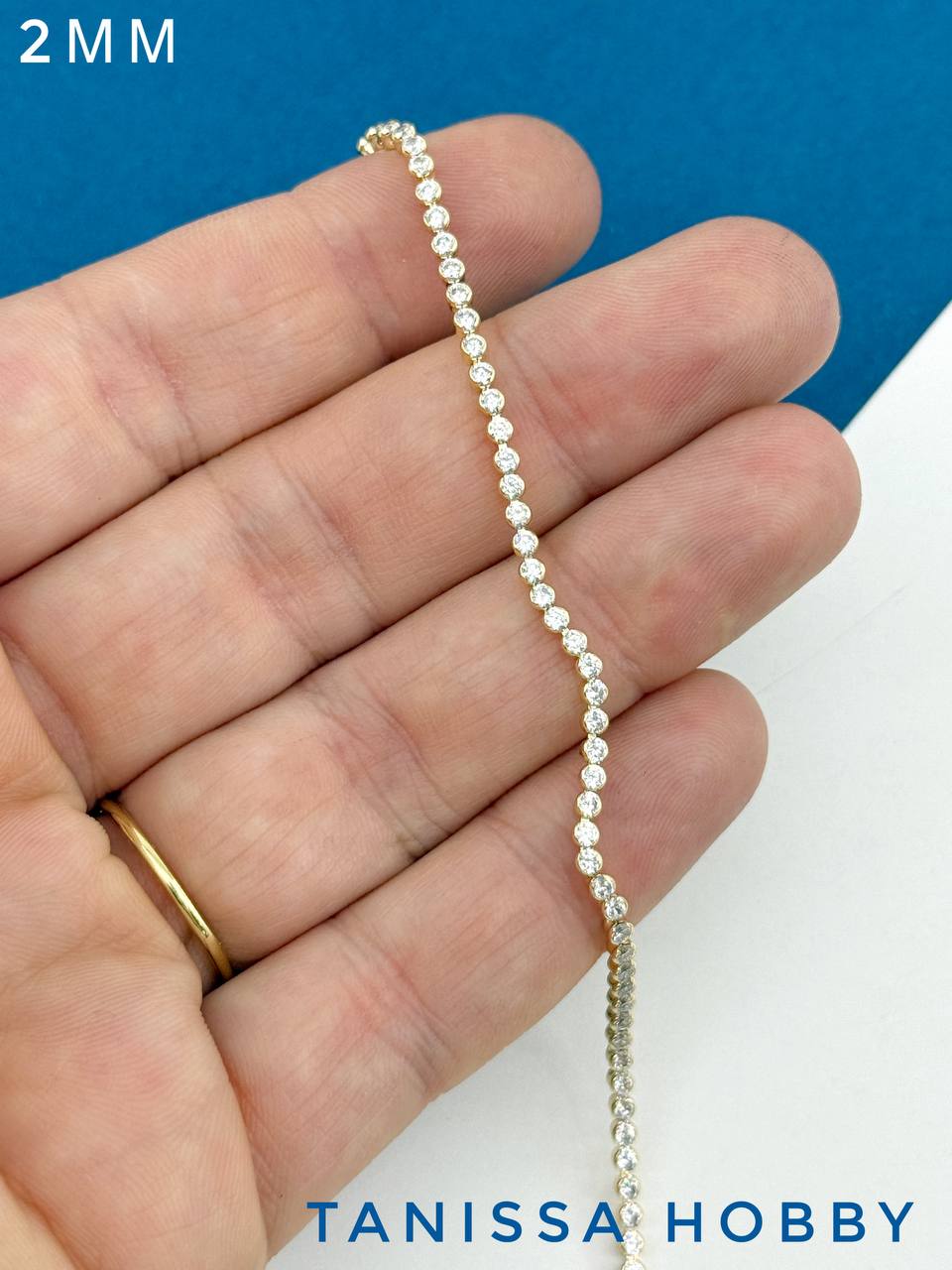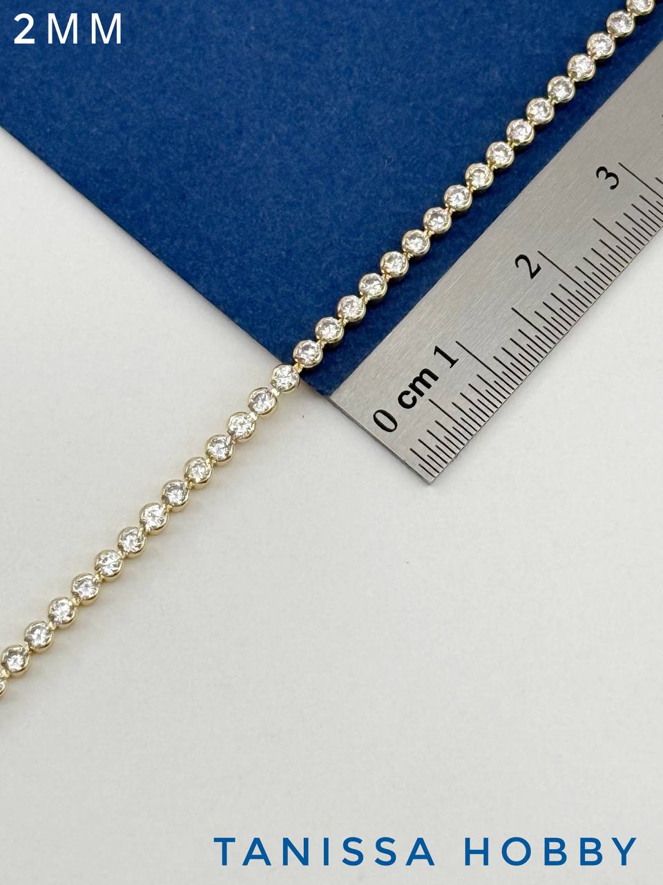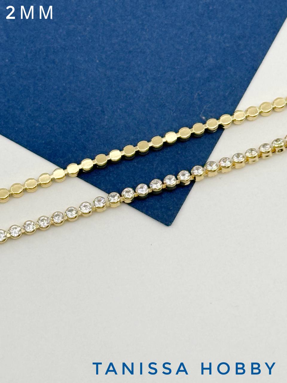 Цепочка стразовая лента, 2мм, позолота, 10СМ, СН063