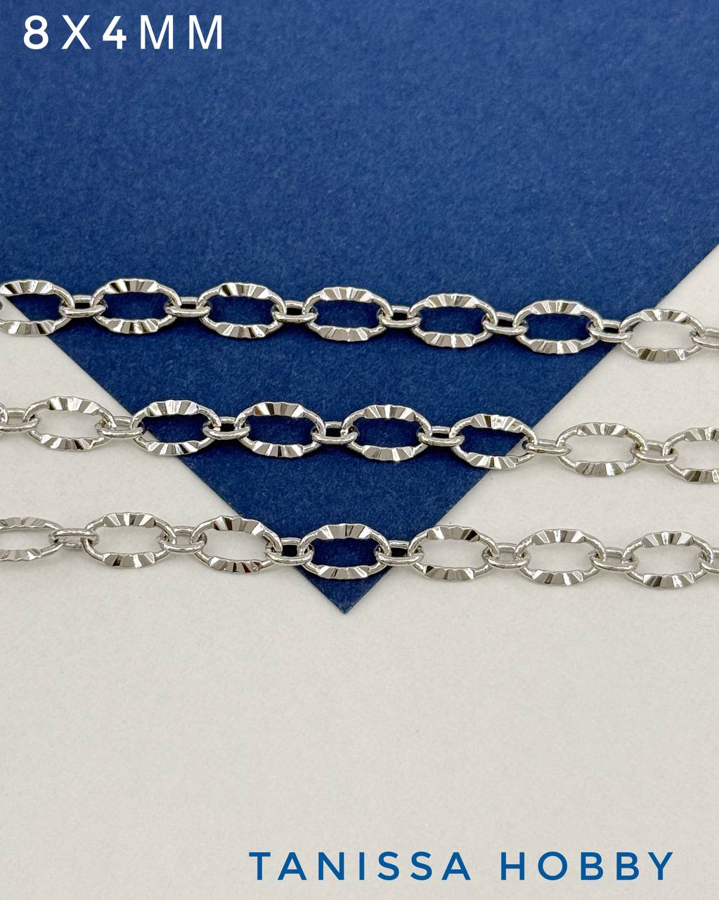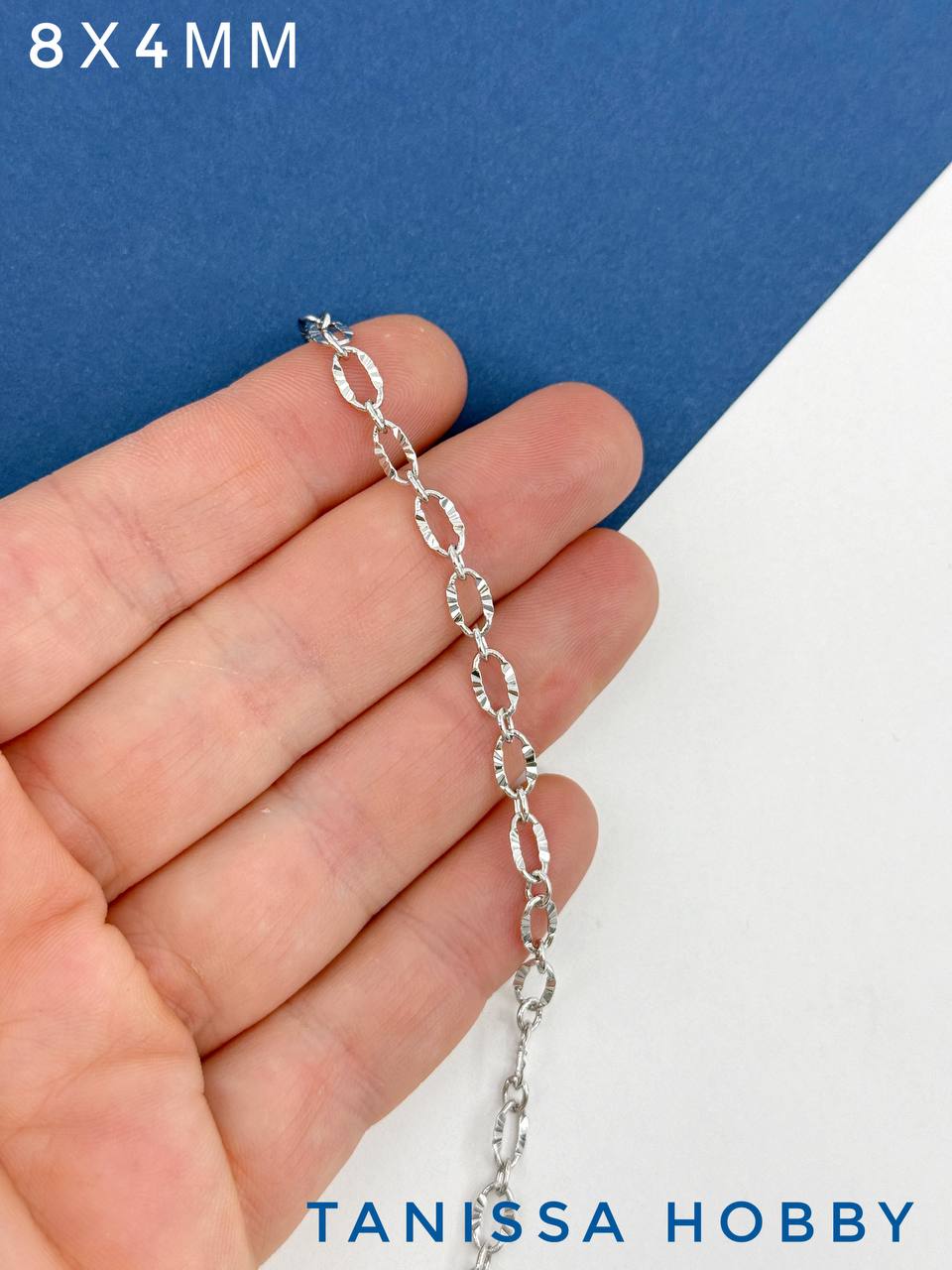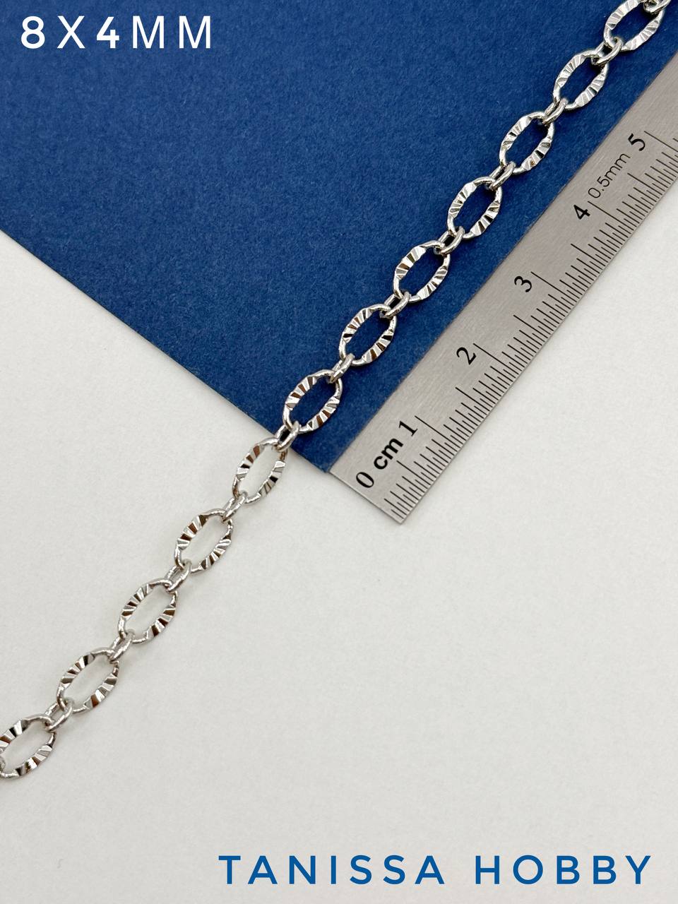 -Цепочка якорная овалы огранка 8х4мм, 50см, родий, СН064