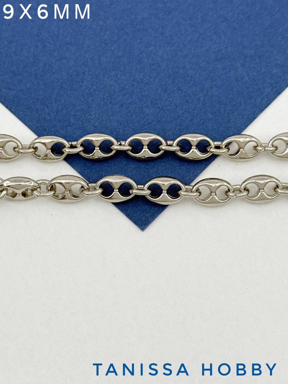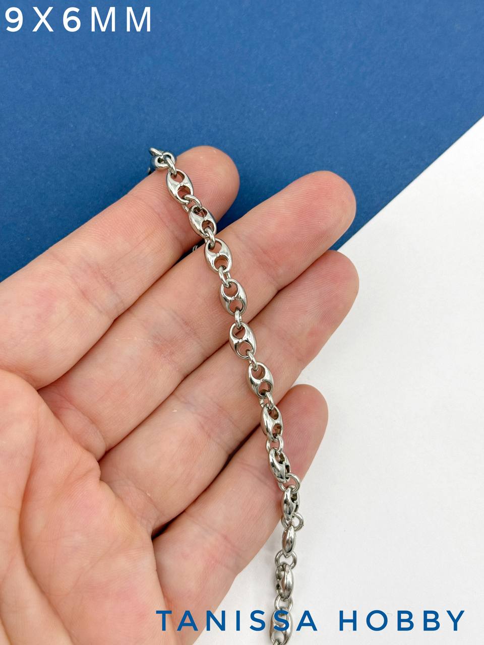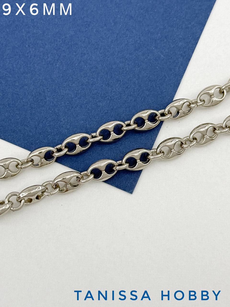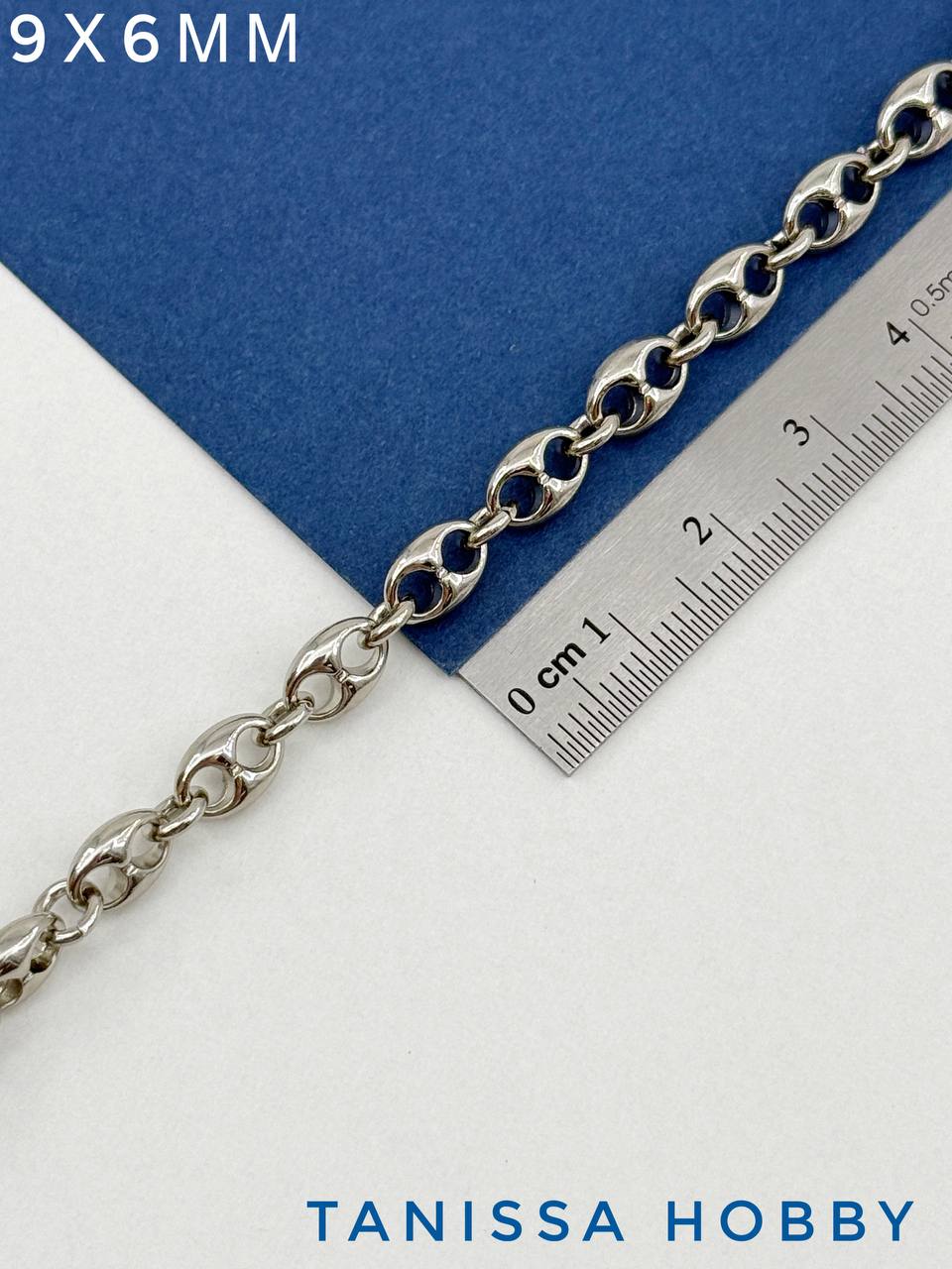 Цепочка овалы кофейное зерно 9х6мм, 50см, темный родий, СН115