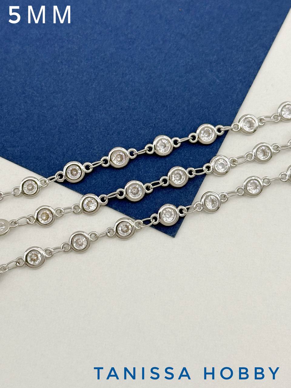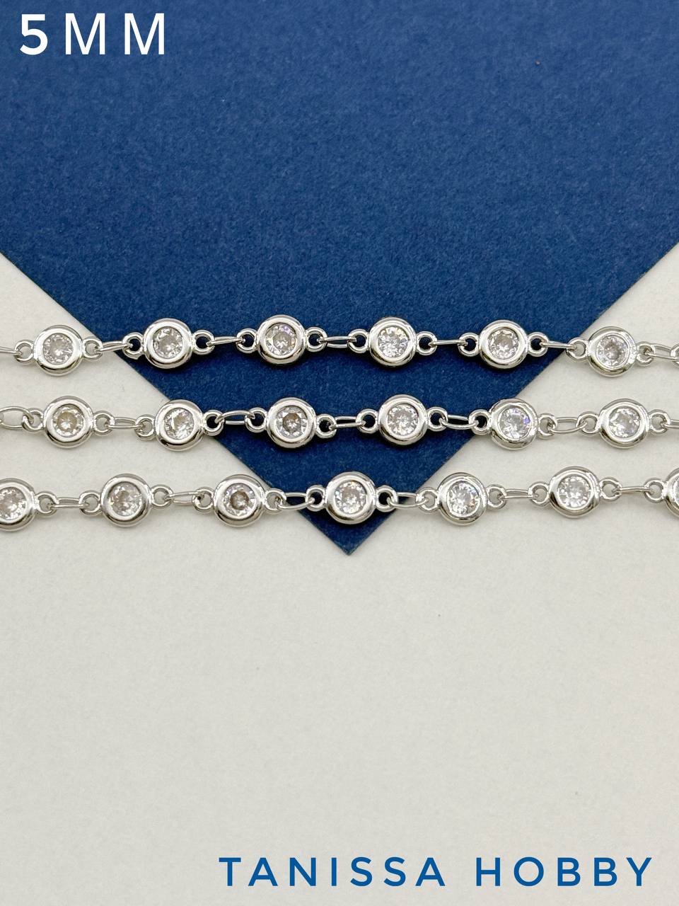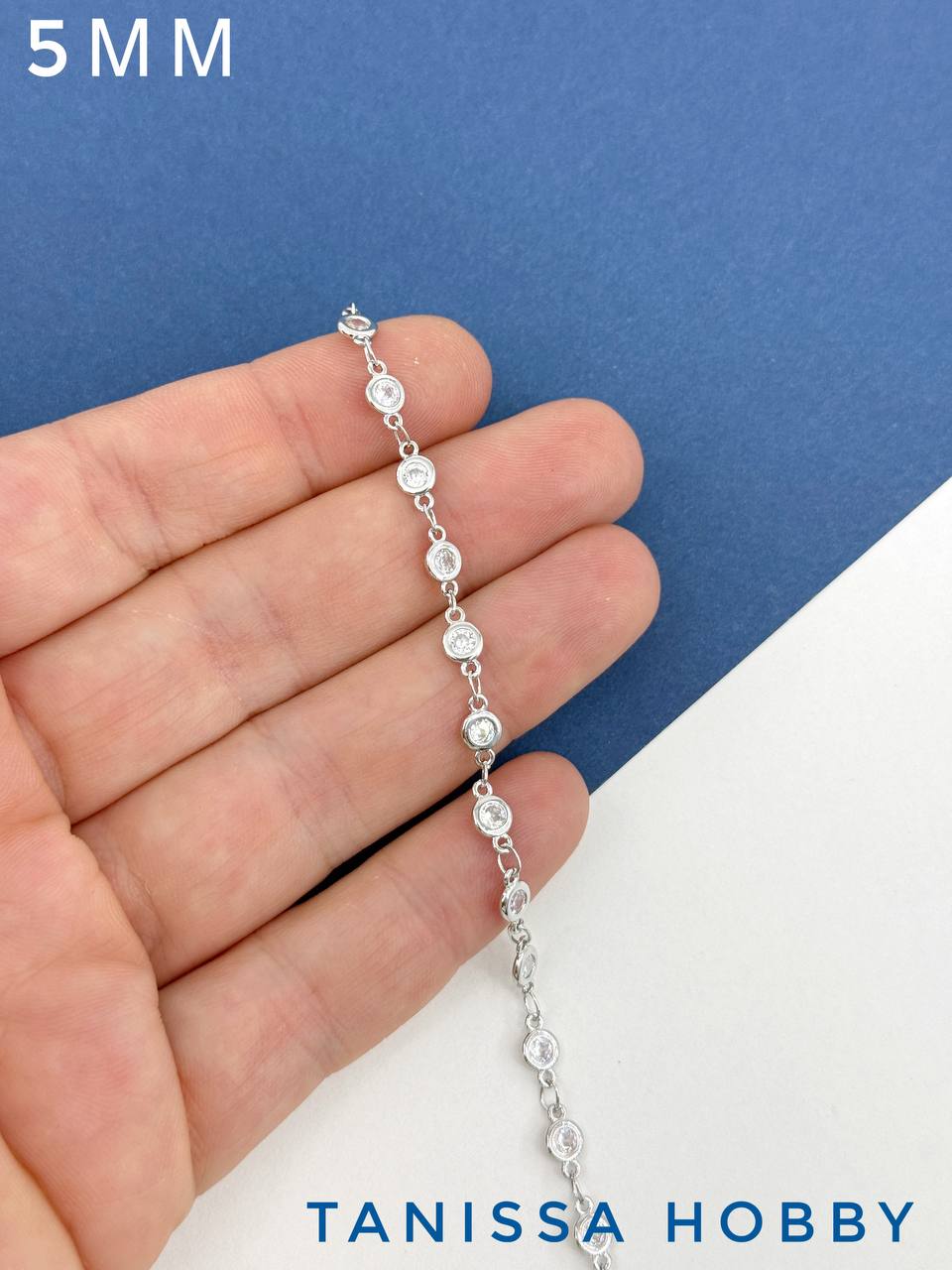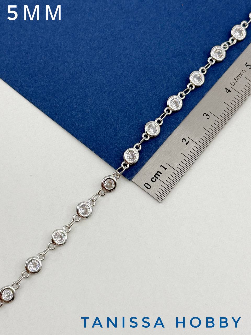 Цепочка якорная фианит 5мм, 10см, родий, СН131