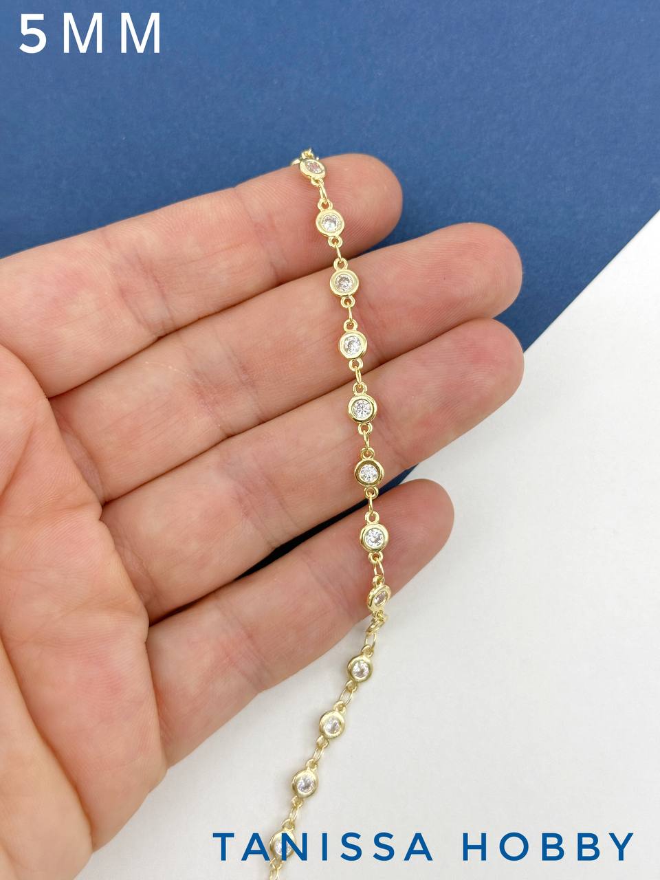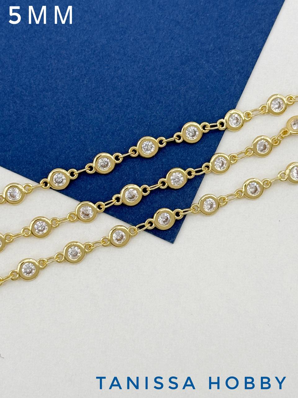 Цепочка якорная фианит 5мм, 10см, позолота, СН132