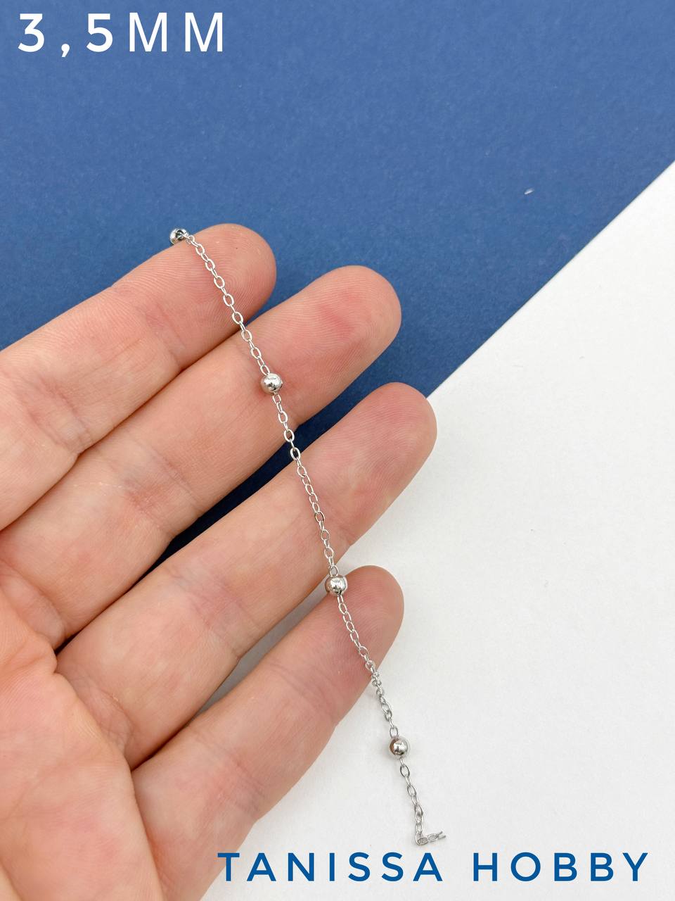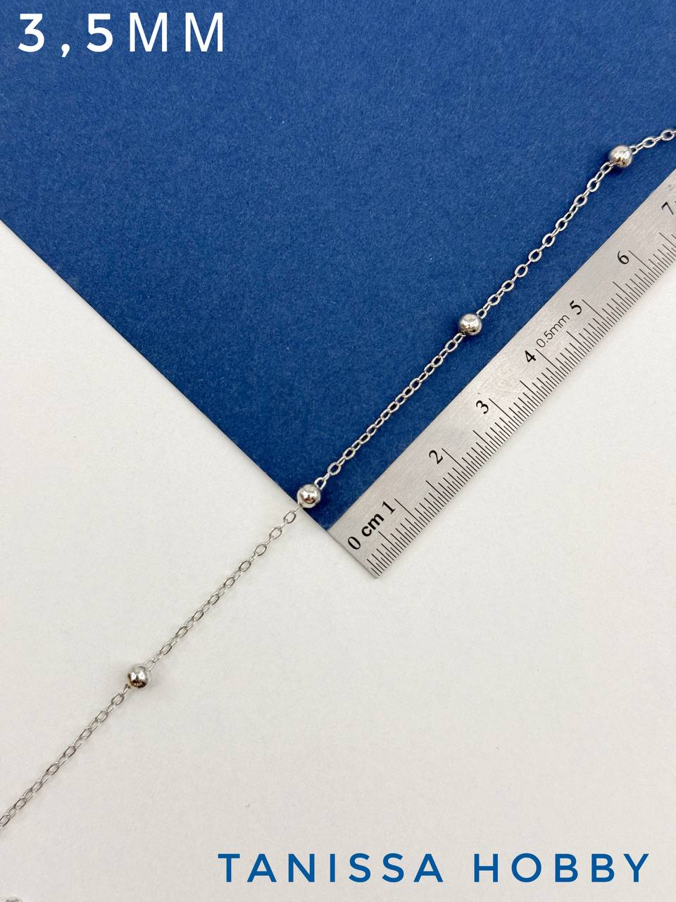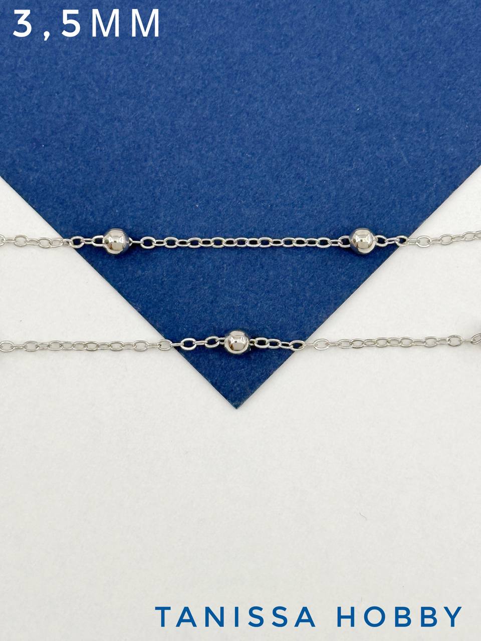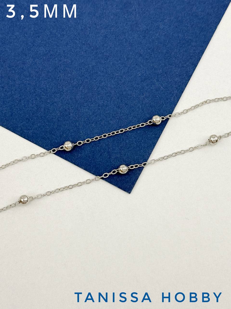 Цепочка с шариками 3,5мм, звено 1,8х1,5мм, 50см, родий, СН136