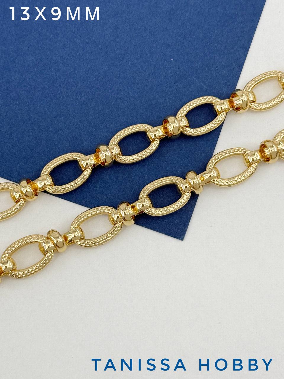 • Цепочка якорная овалы рельеф, 13х9мм, 50см, позолота, СН149