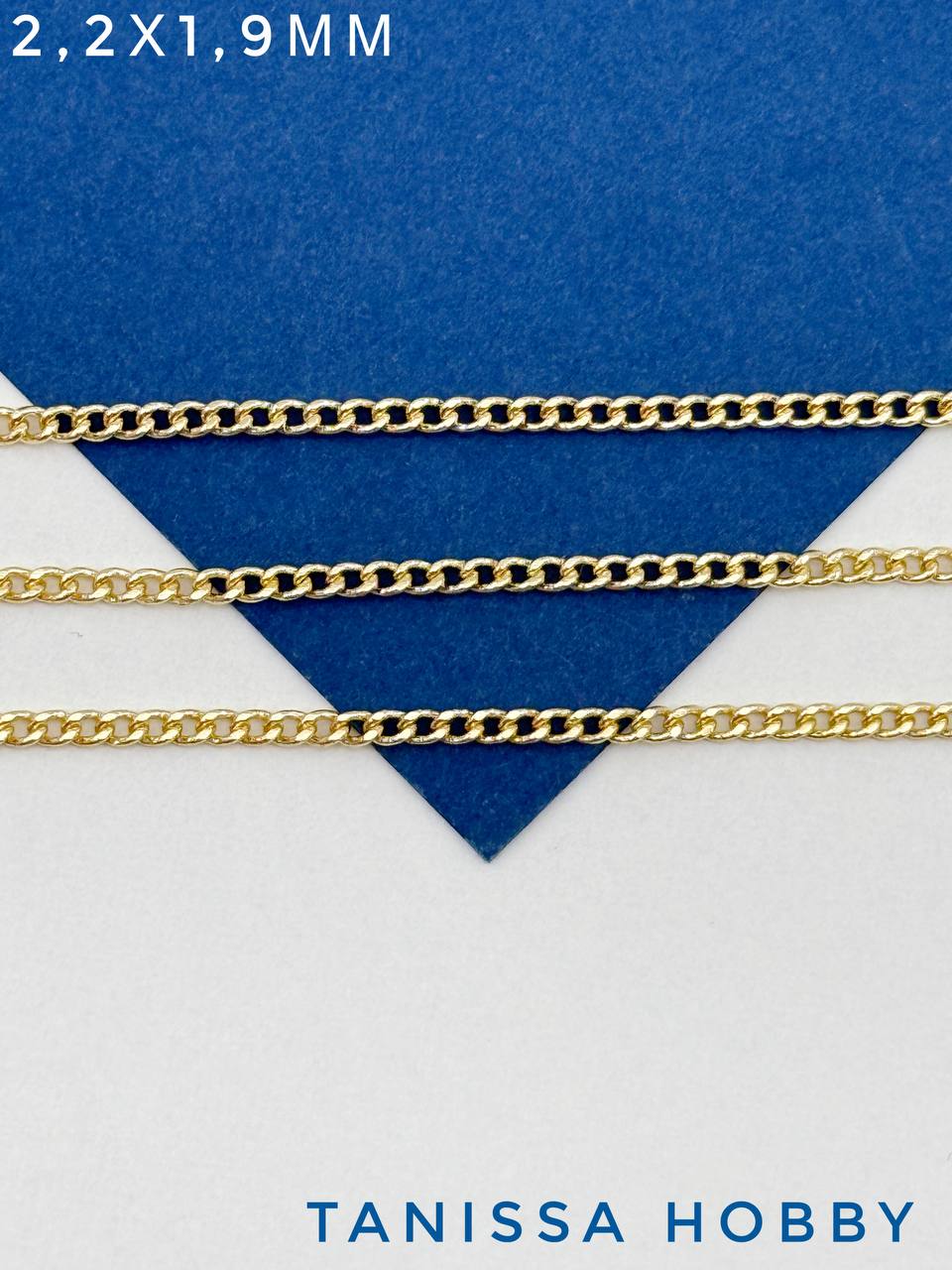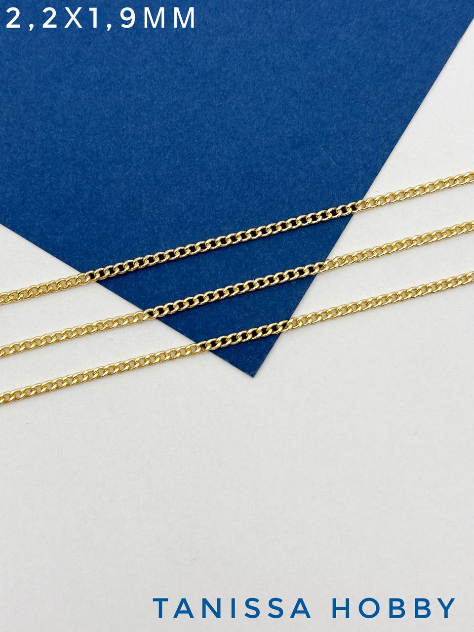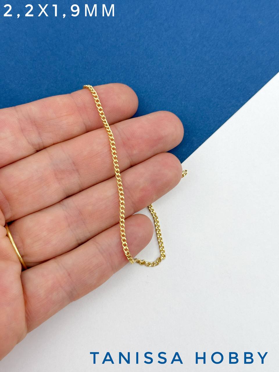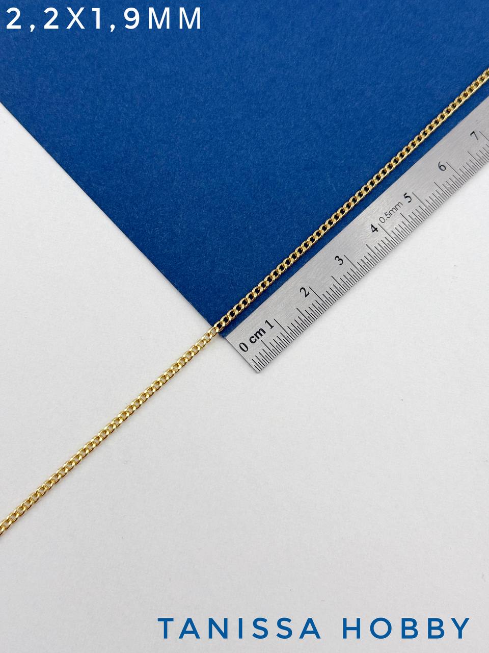 Цепочка тонкая панцирная плоская 2,2х1,9мм, 50см, позолота, СН155