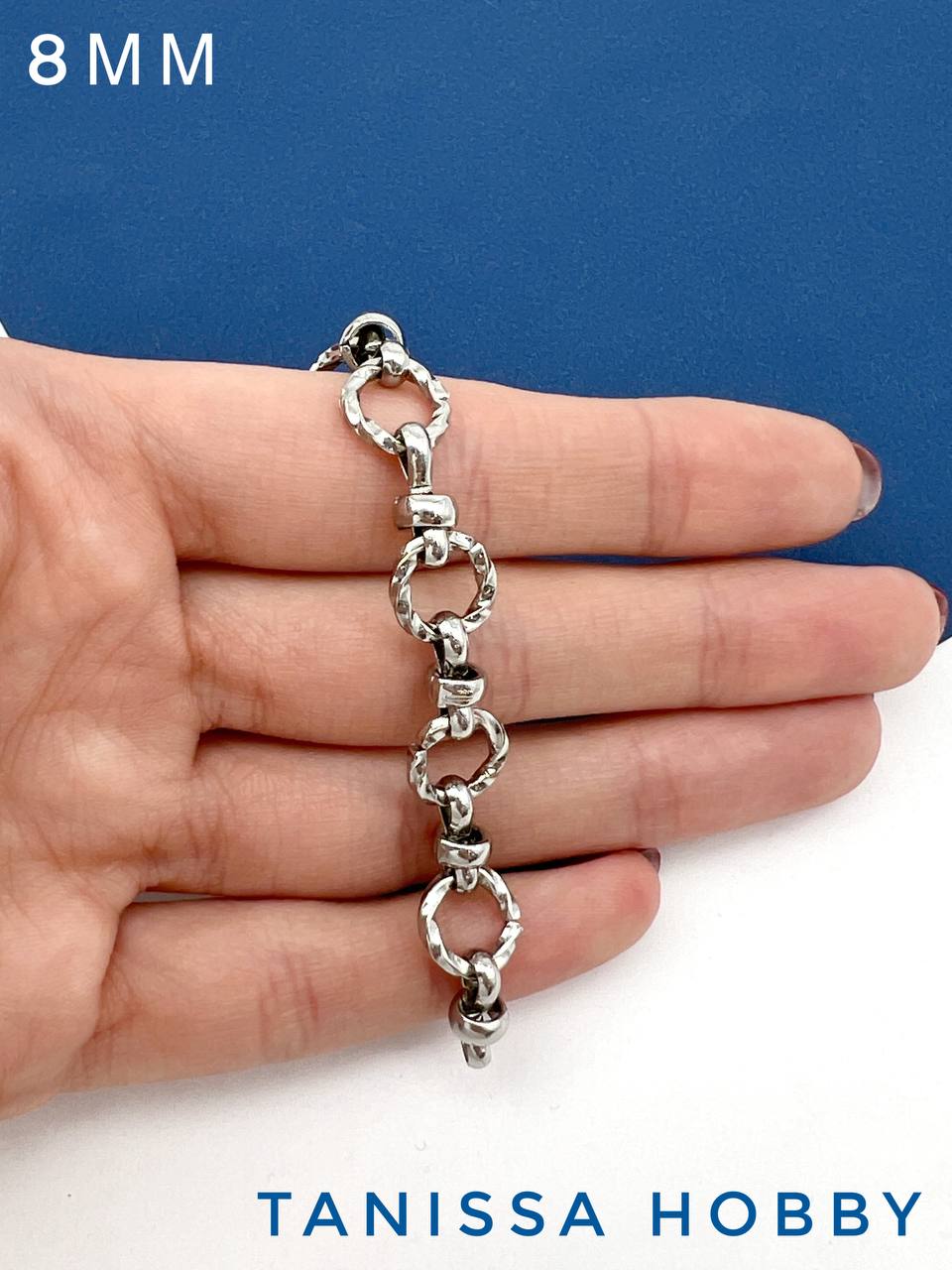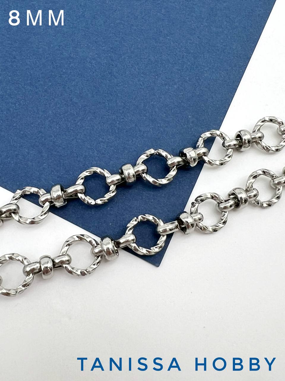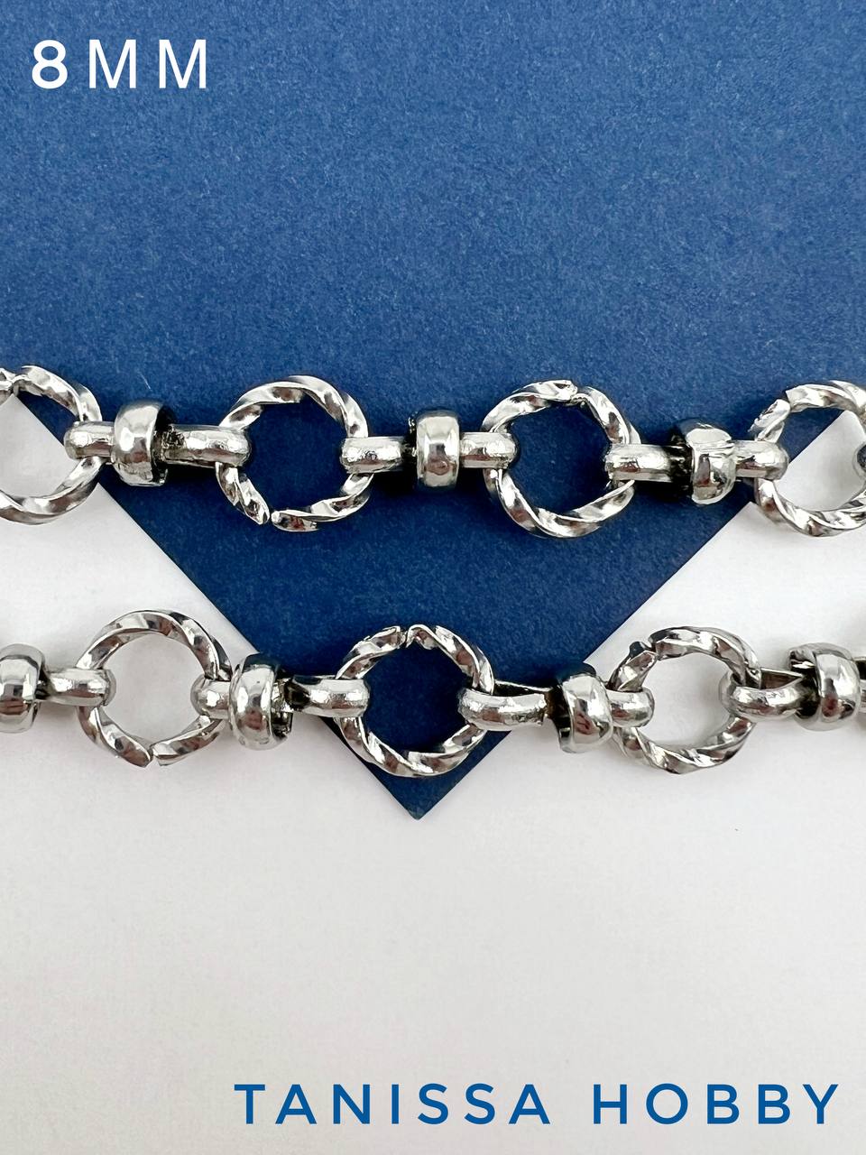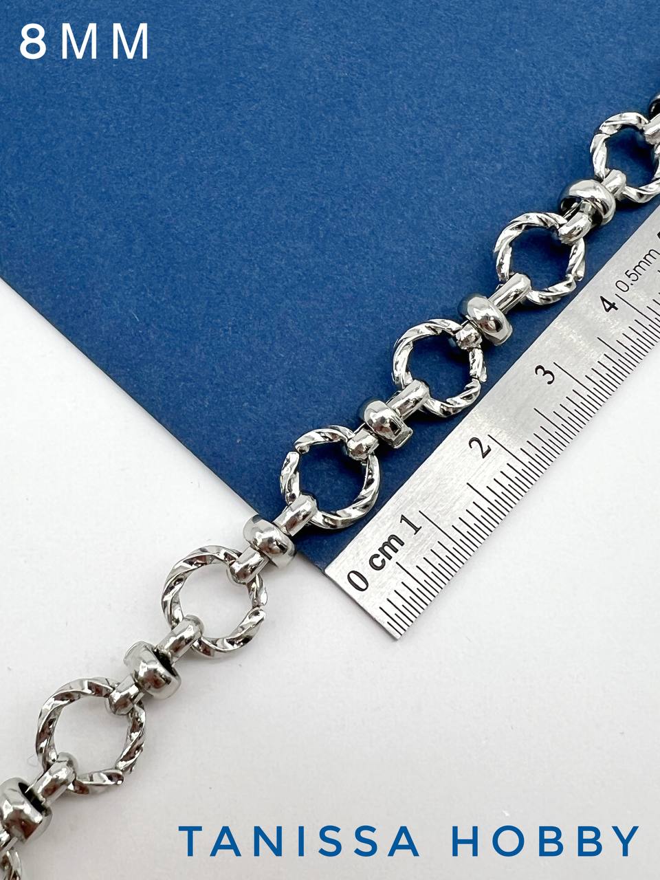 Цепочка витые круги, 8мм, родий, 50см, СН182