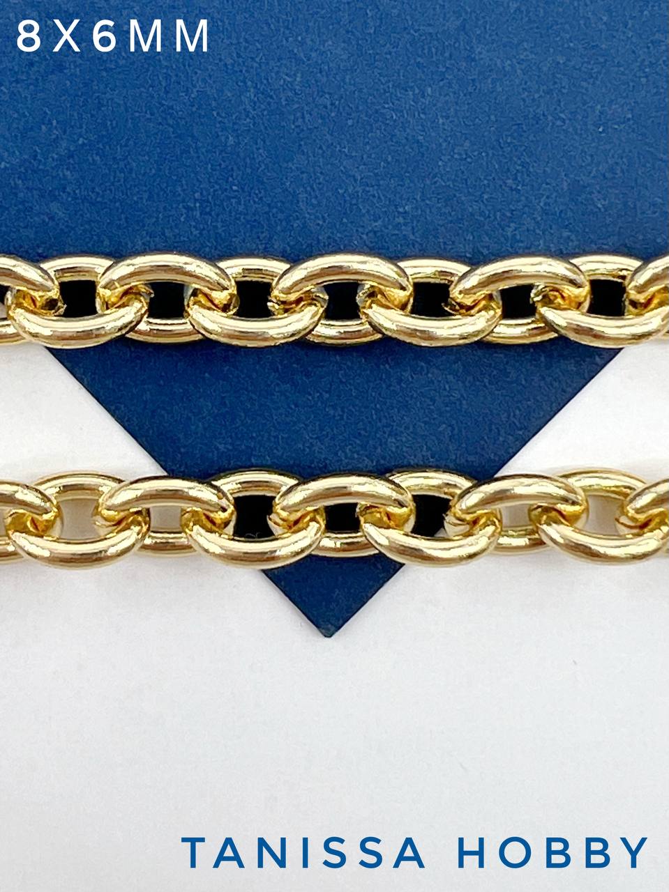 Цепочка якорная овалы, 8х6мм, позолота, 50см, СН191