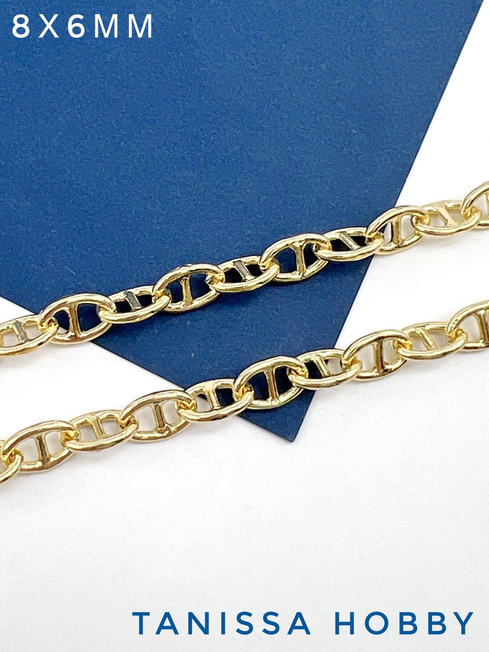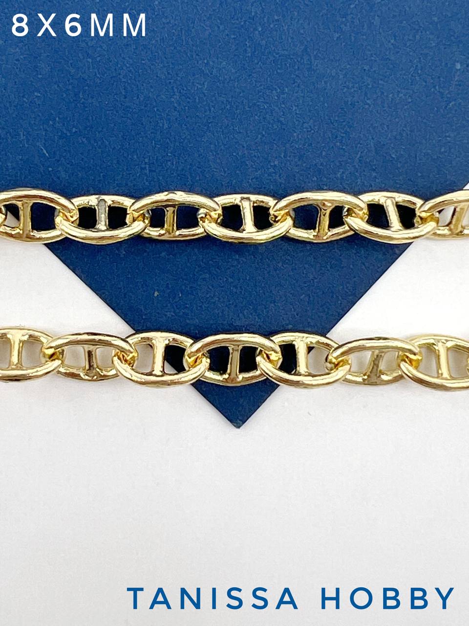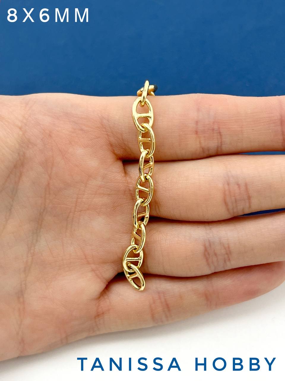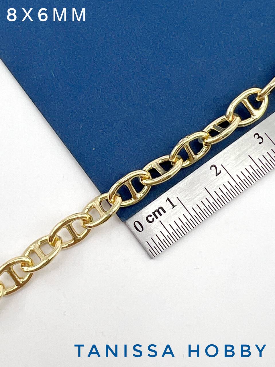 Цепочка якорная овалы кофейное зерно, 8х6мм, позолота, 50см, СН199