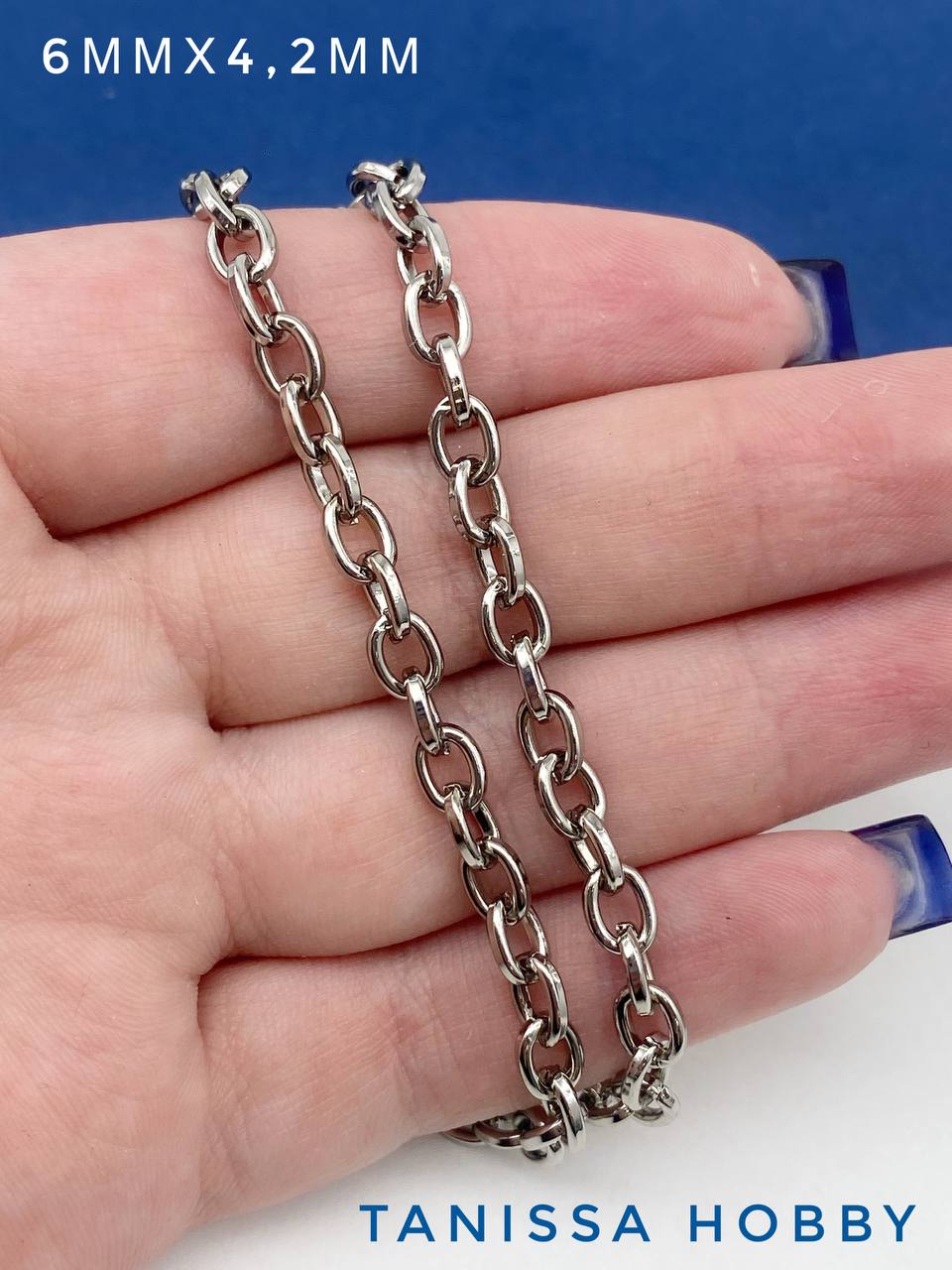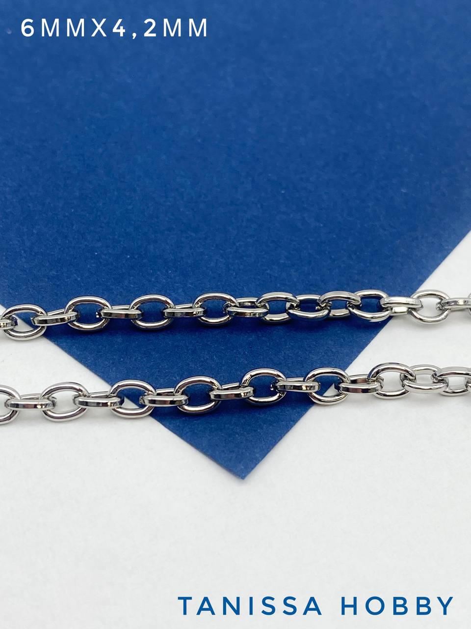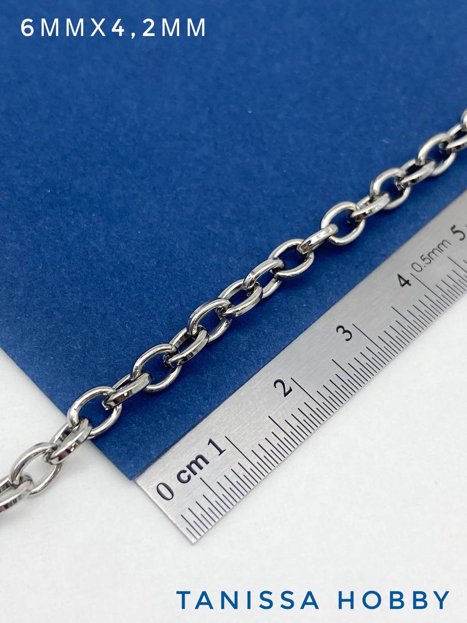 Цепочка якорная овалы, 6х4,2мм, 50см, родий, СН246