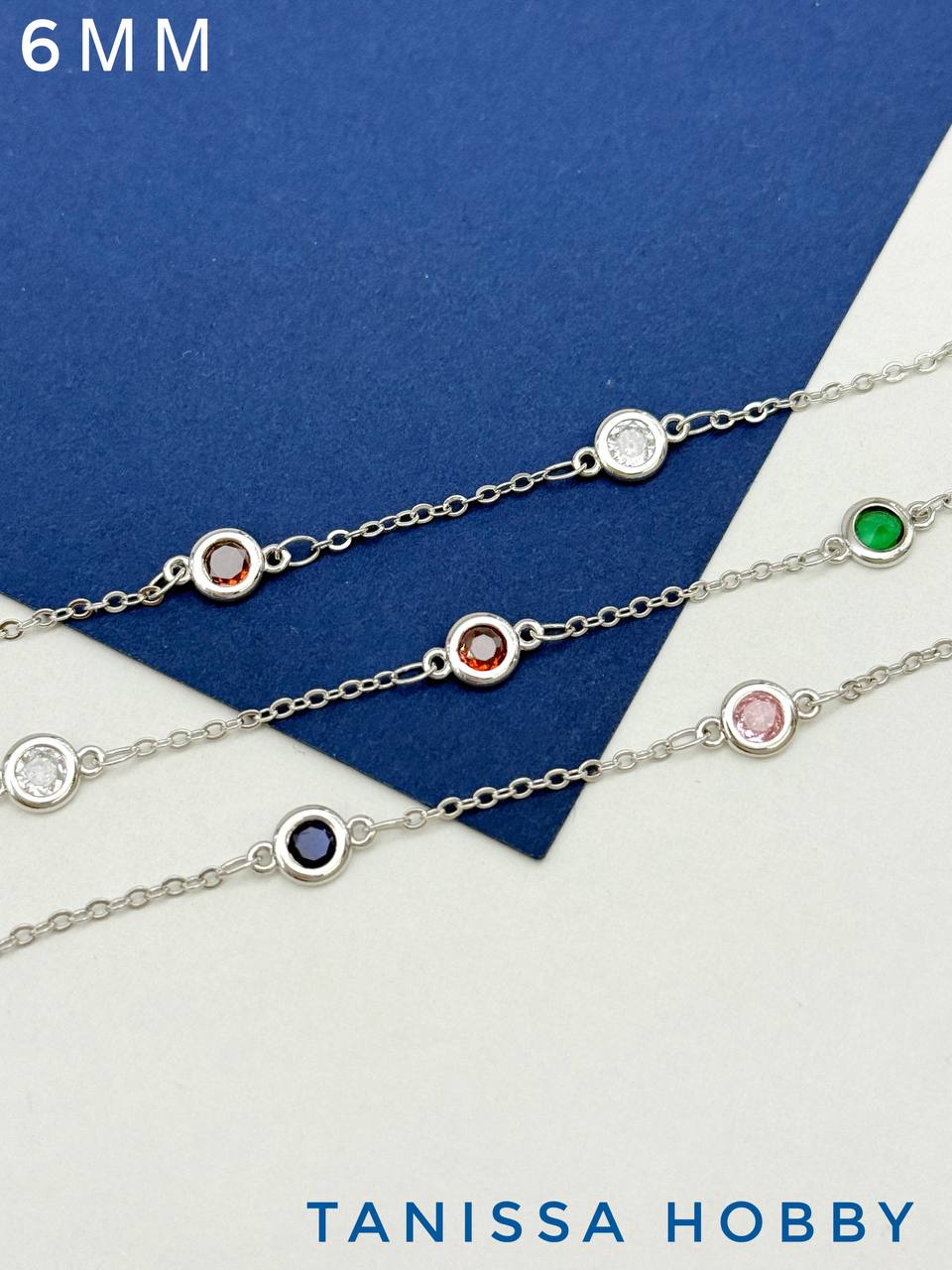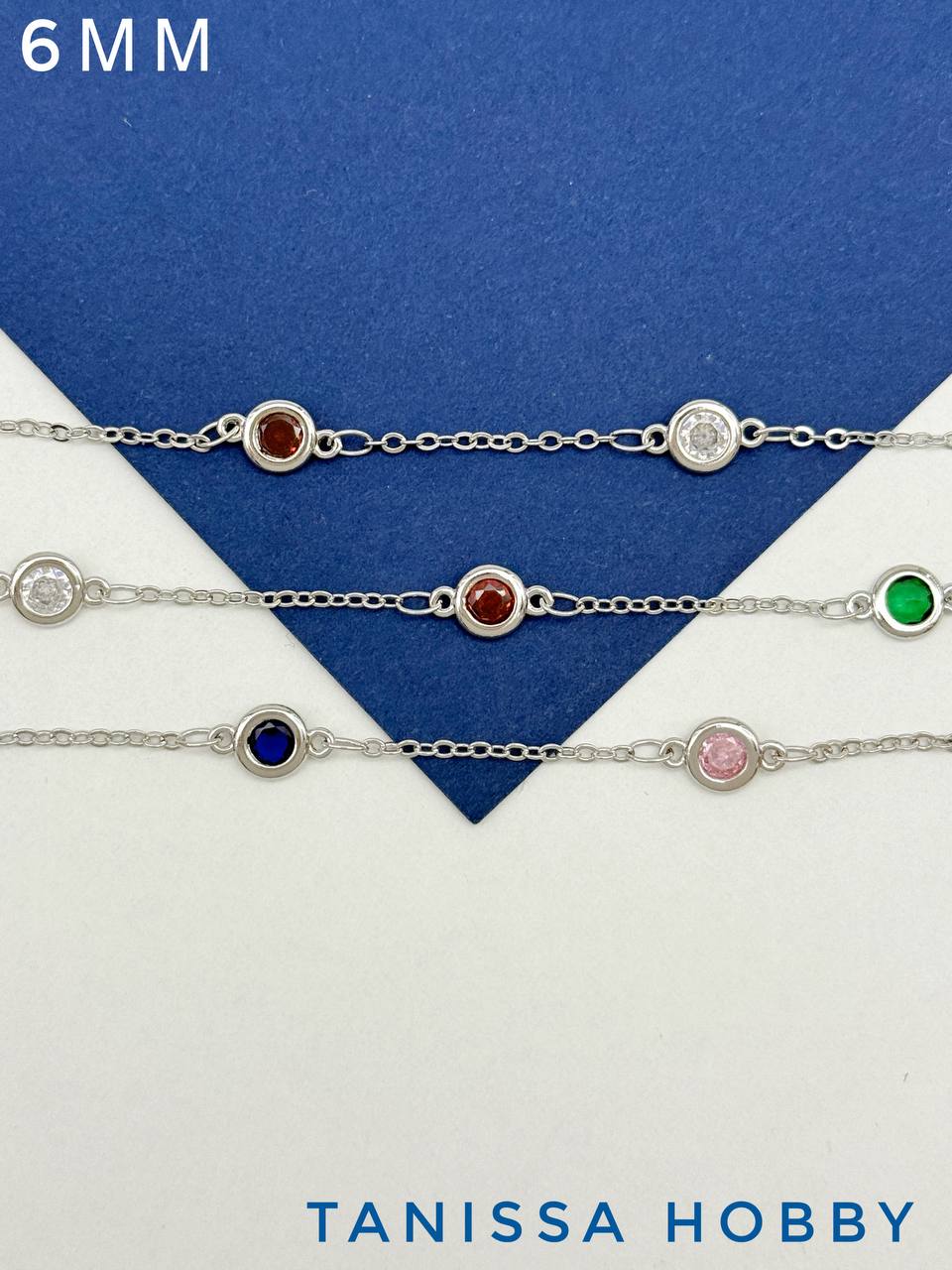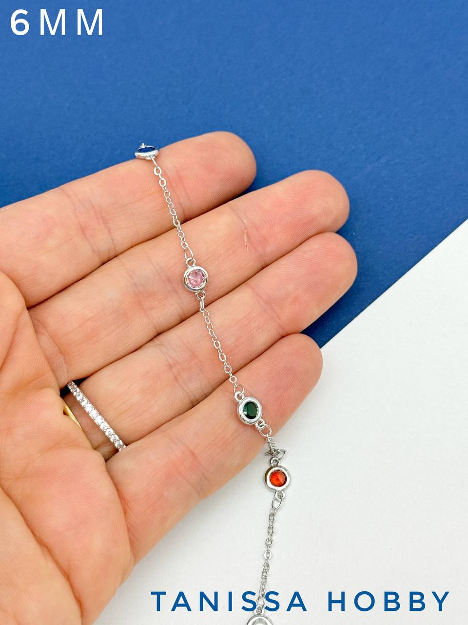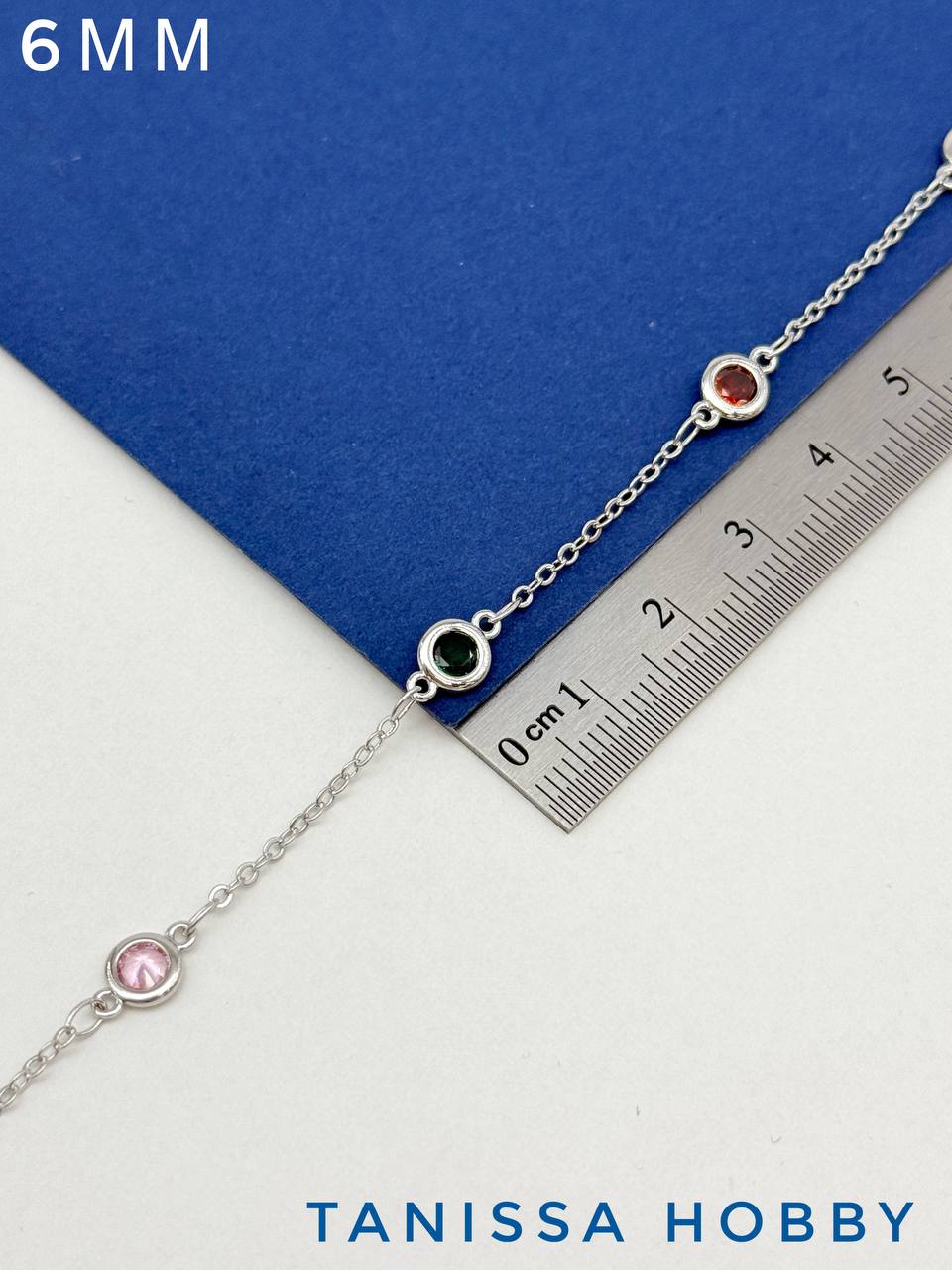 -Цепочка якорная цветные фианиты микс 6мм, 10см, родий, СН248