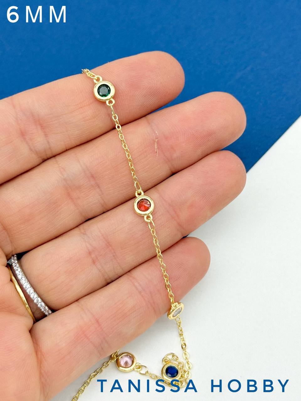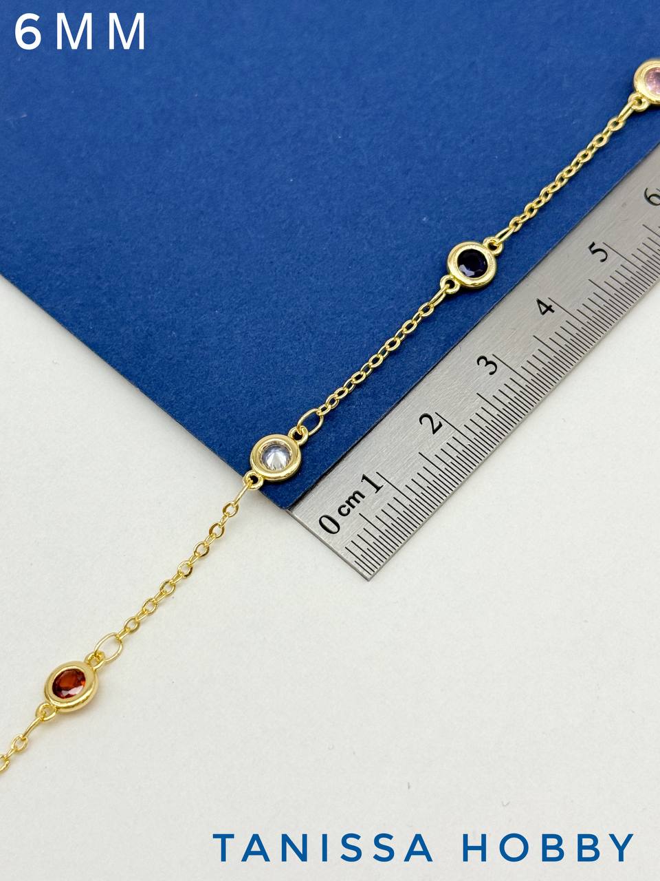 -Цепочка якорная цветные фианиты микс 6мм, 10см, позолота, СН249