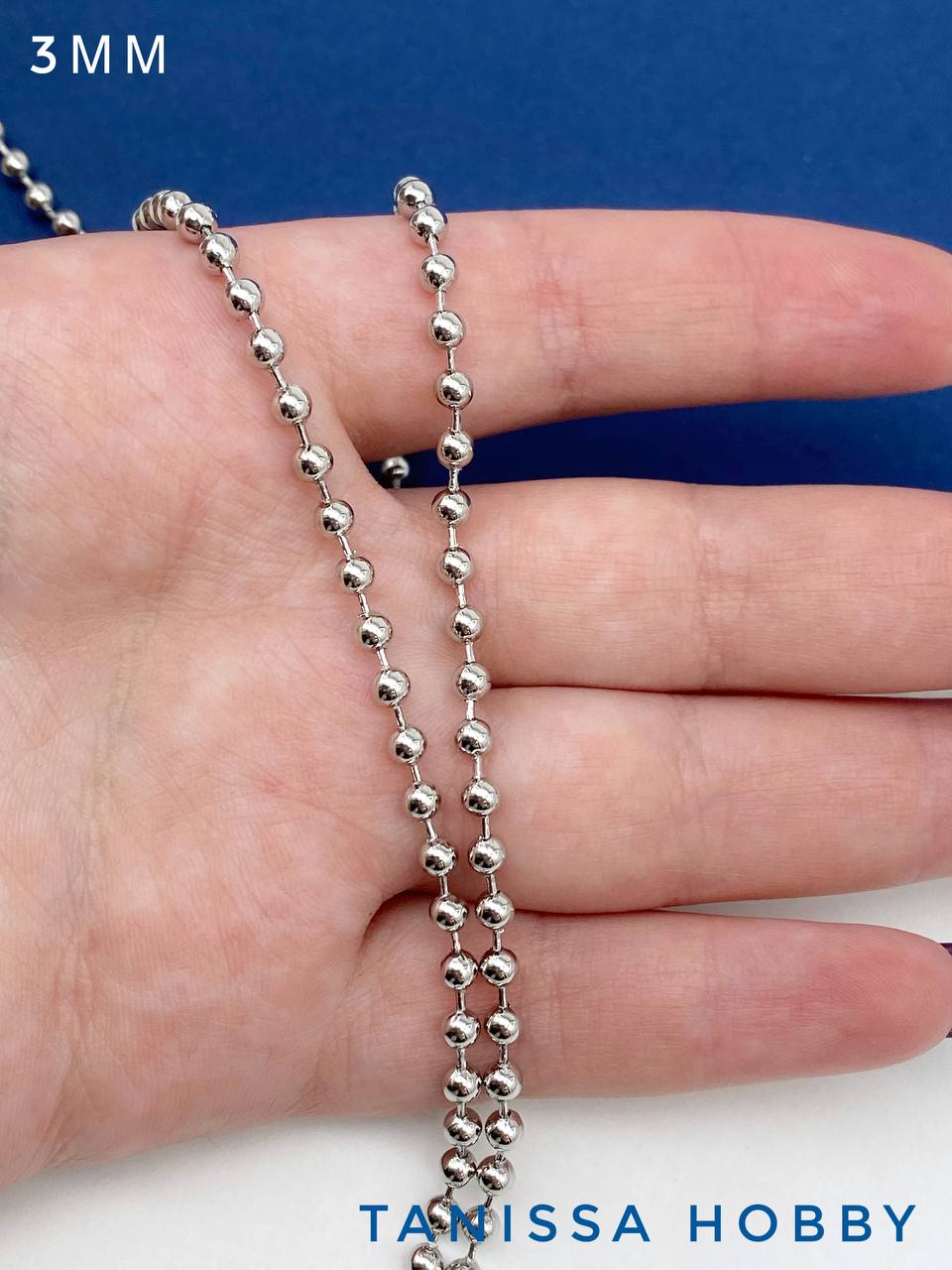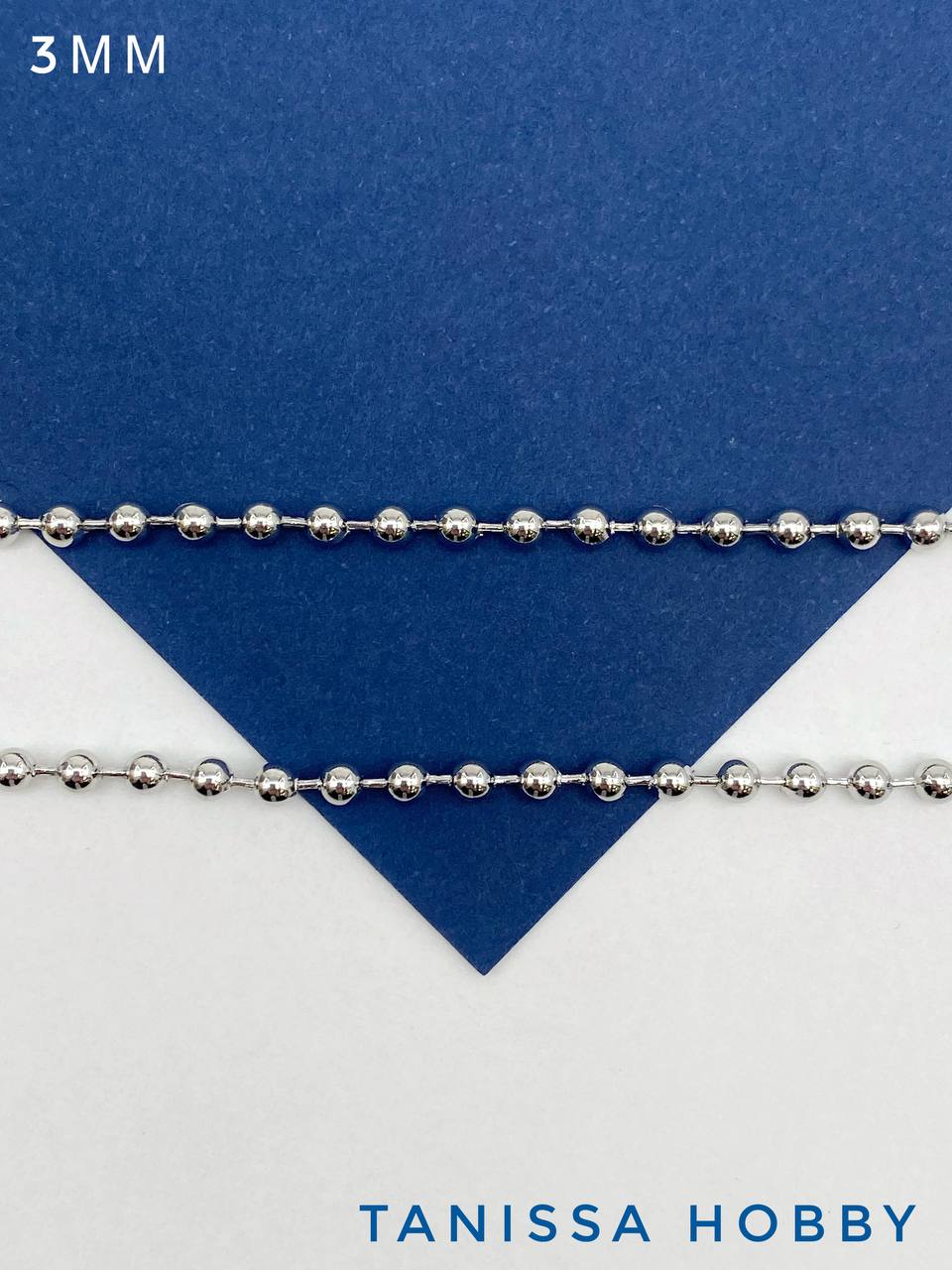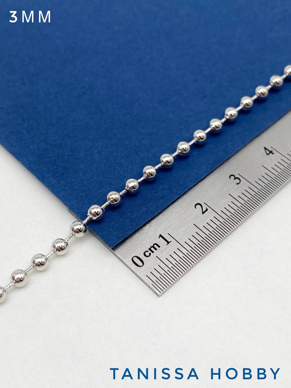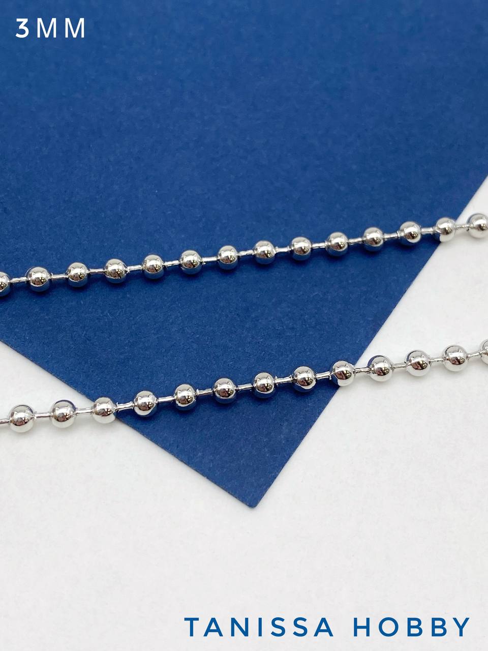 Цепочка с шариками перлина 3мм, родий, 50см, СН252