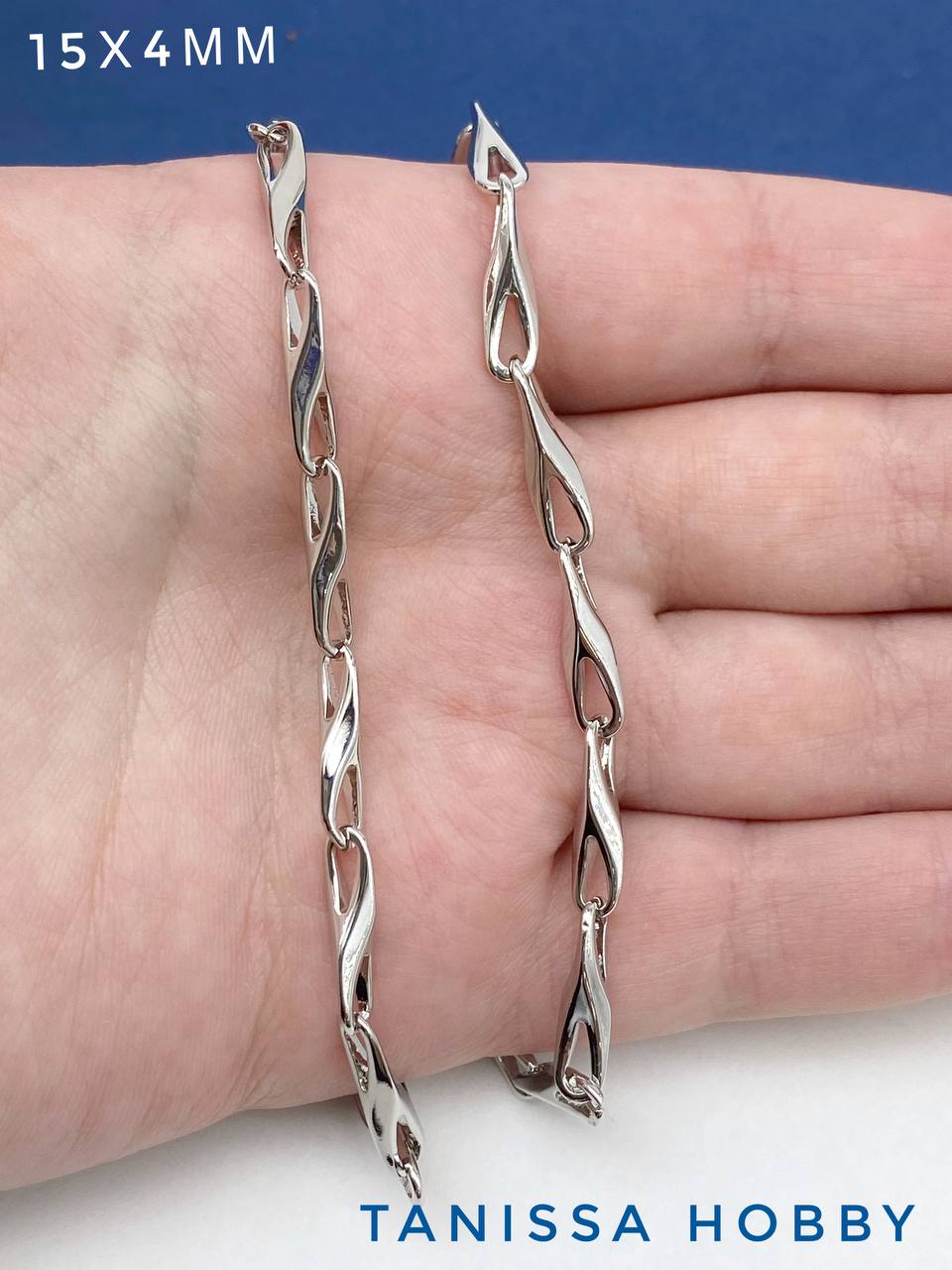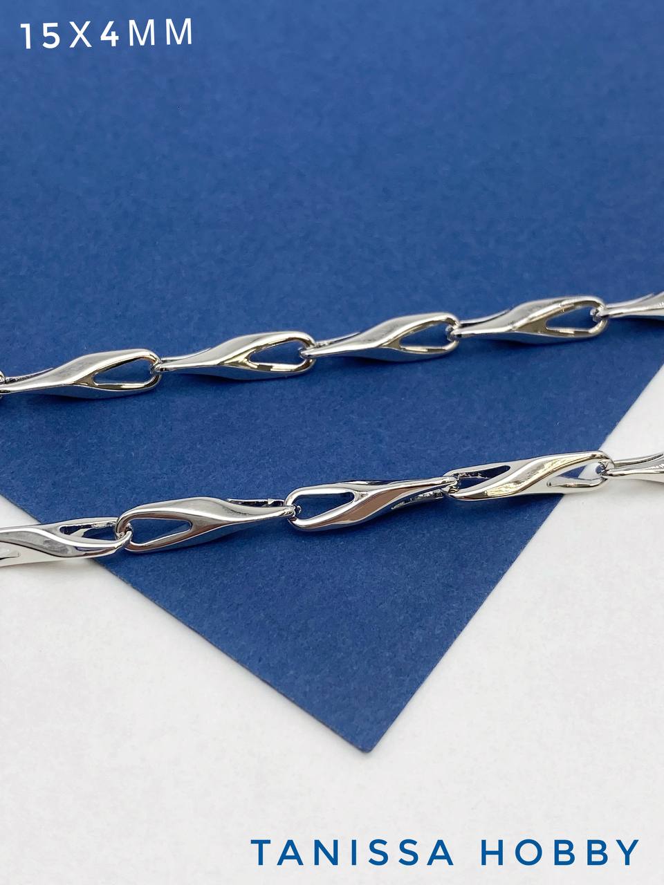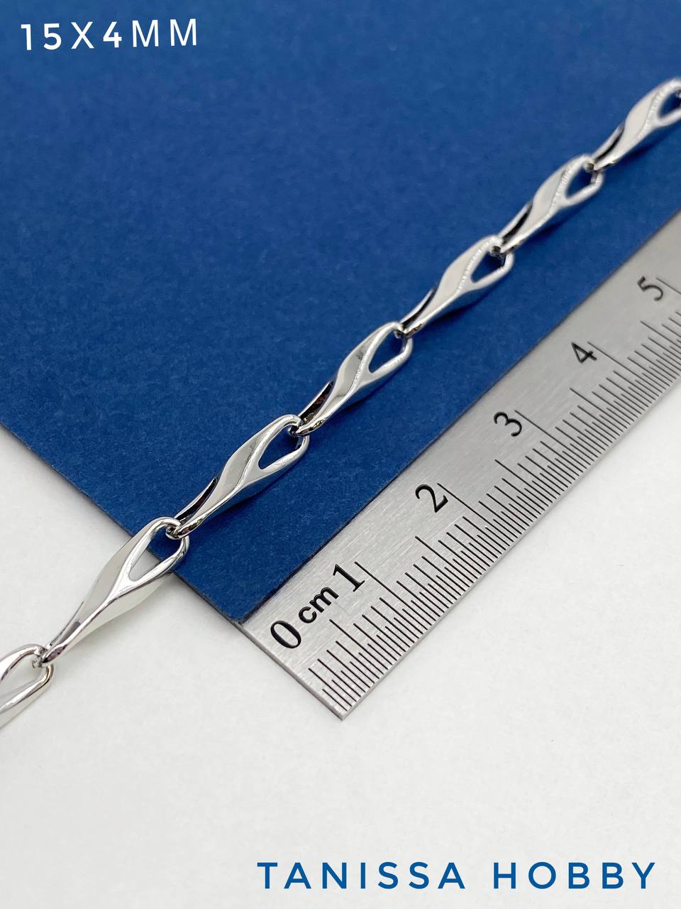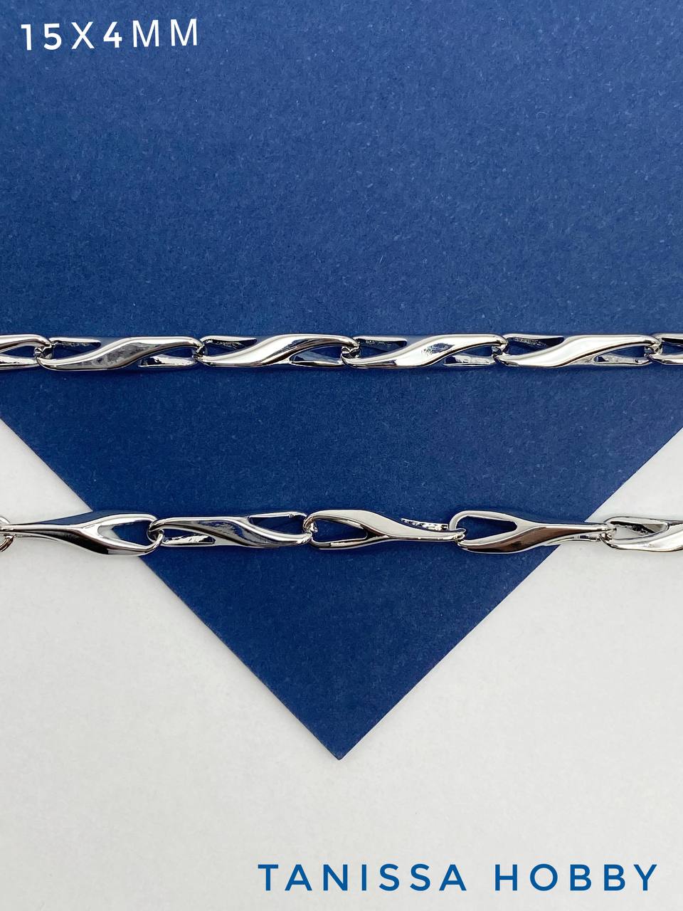 Цепочка волна бесконечность, 15х4мм, родий, 50см, СН258