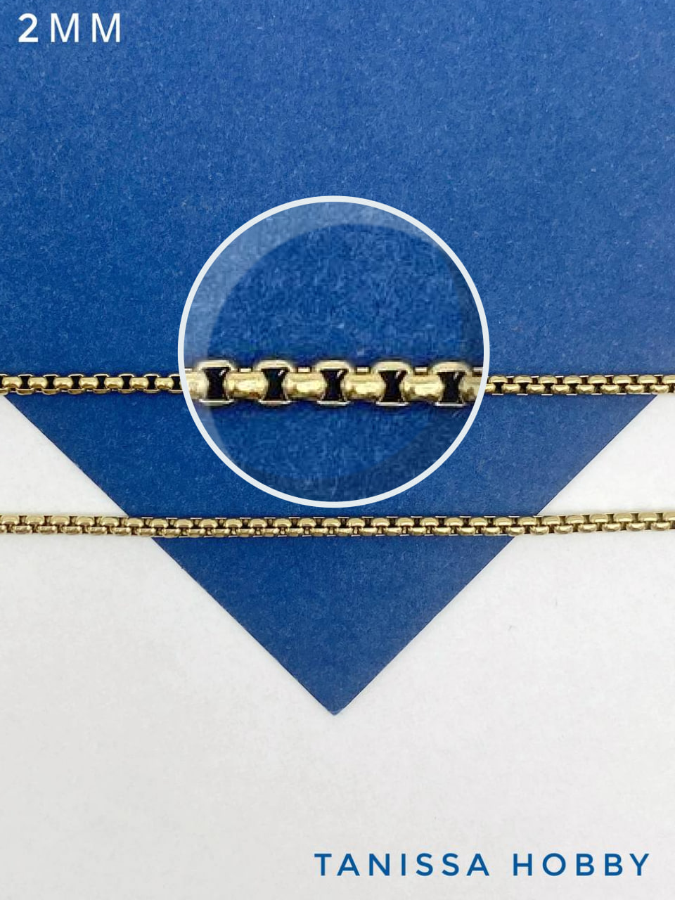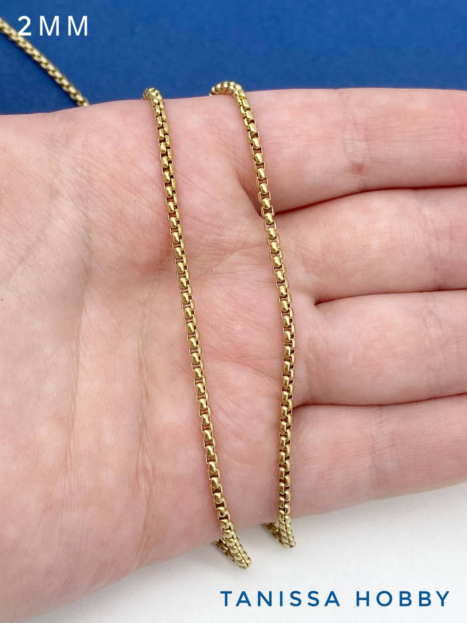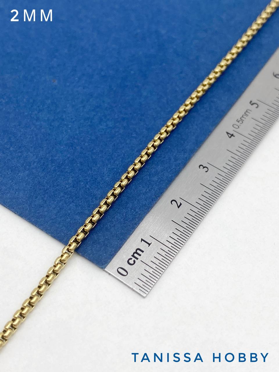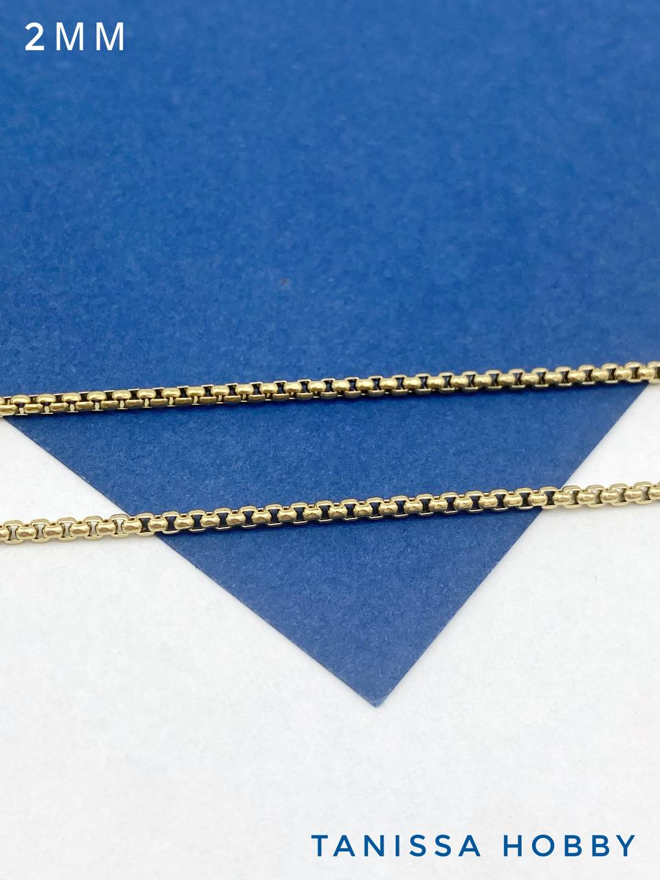 Цепочка тонкая, коробочка, 2мм, сталь, позолота, 50см, Ч977