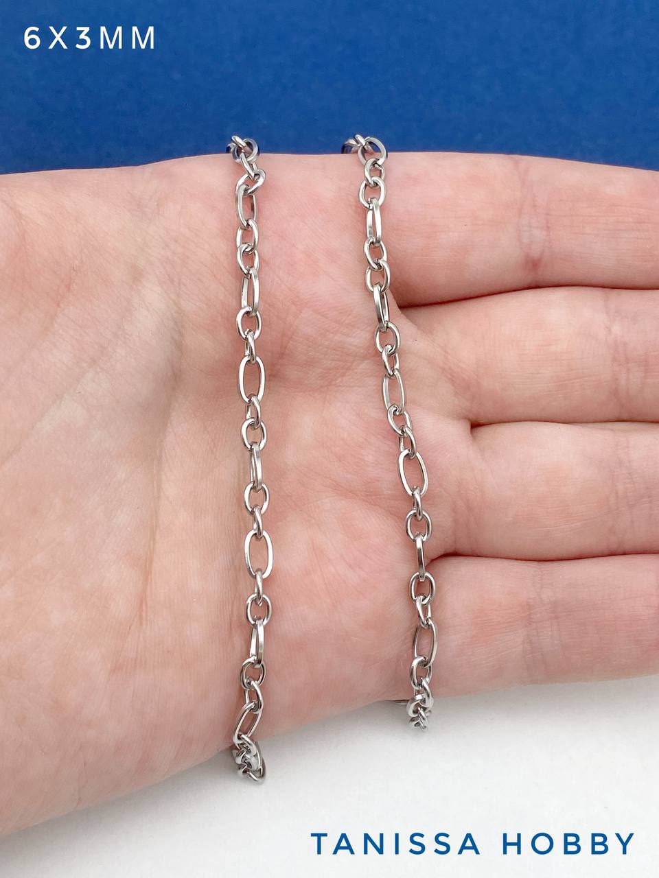 Цепочка якорная овалы, 6х3мм, сталь, 50см, Ч982