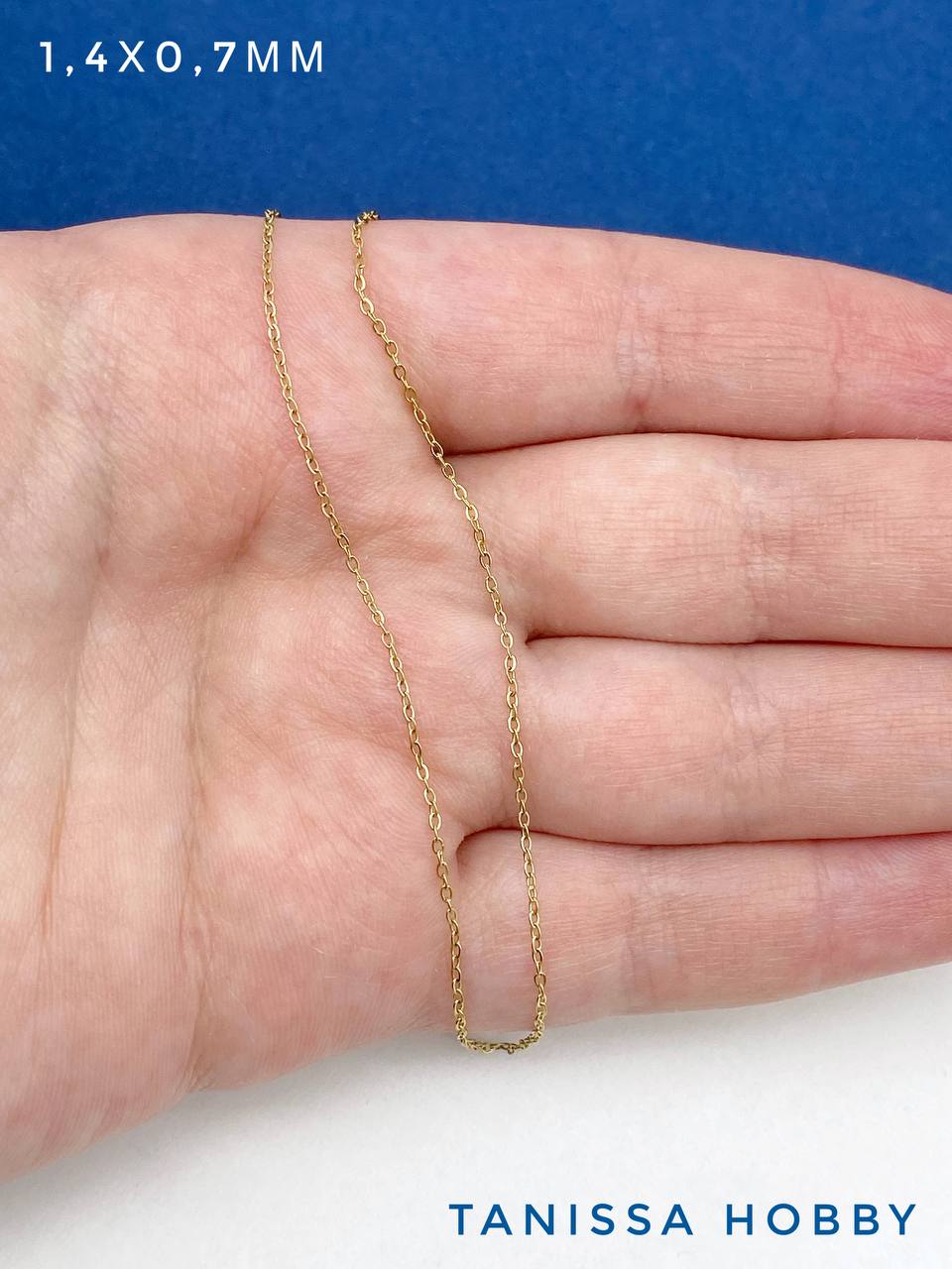 Цепочка тонкая якорная, 1,4х0,7мм, сталь, позолота, 50см, Ч997