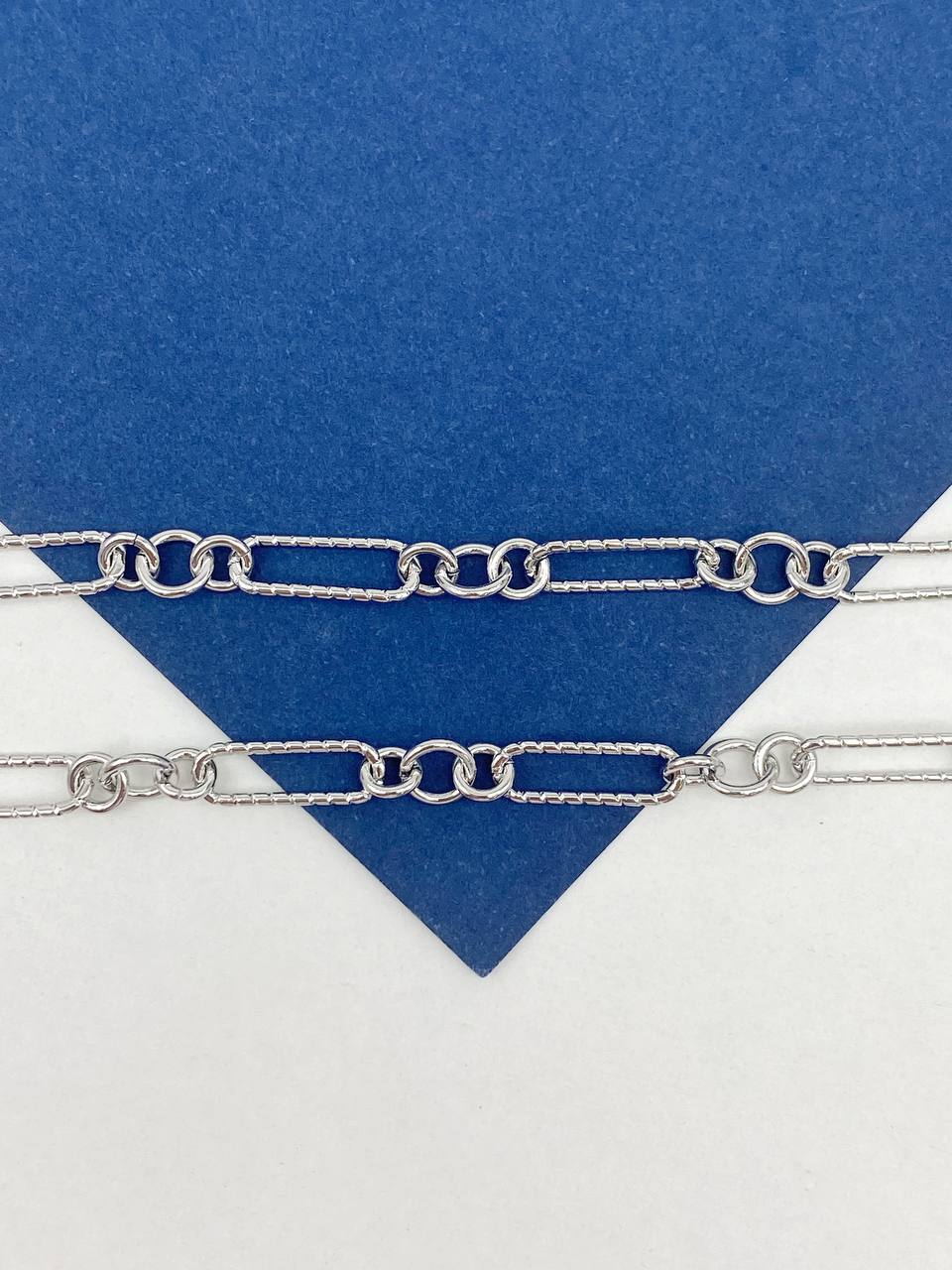 Цепочка якорная овалы с насечками, 15х5мм, родий, 50см, СН270