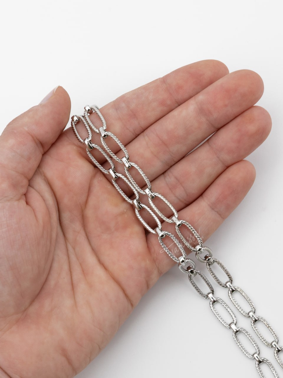 • Цепочка витые овалы, 15х6мм, родий, 50СМ, СН059