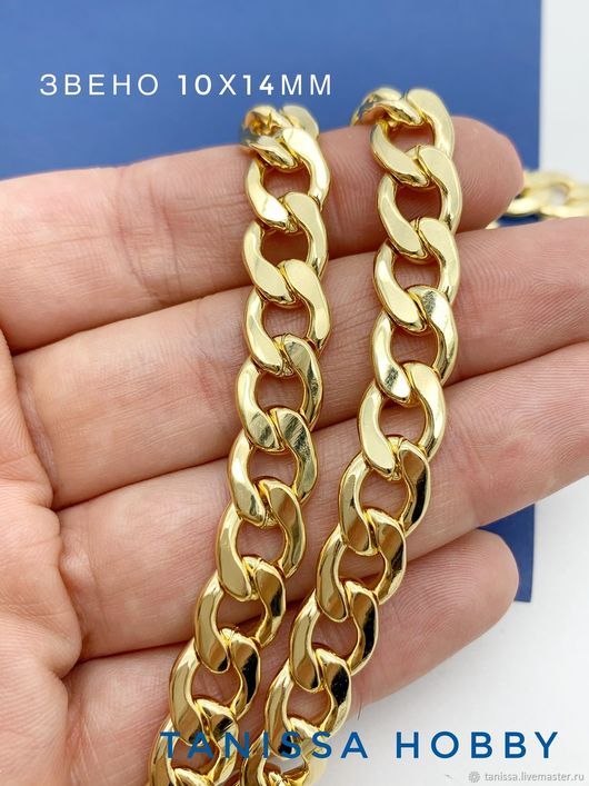 Цепочка крупная 10х14 мм, позолота. Сталь с позолотой 24К, очень стойкое покрытие.