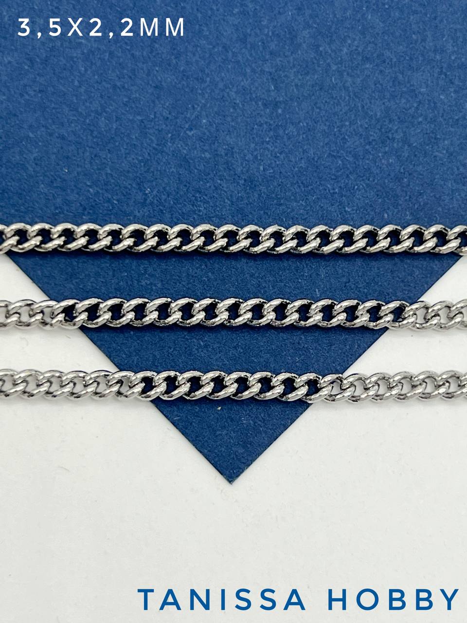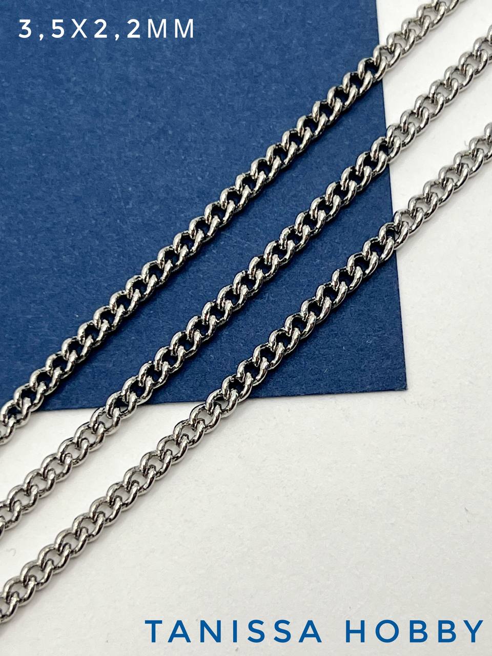 Цепочка панцирная 3,5х2,2мм, родий, 50см. СН017