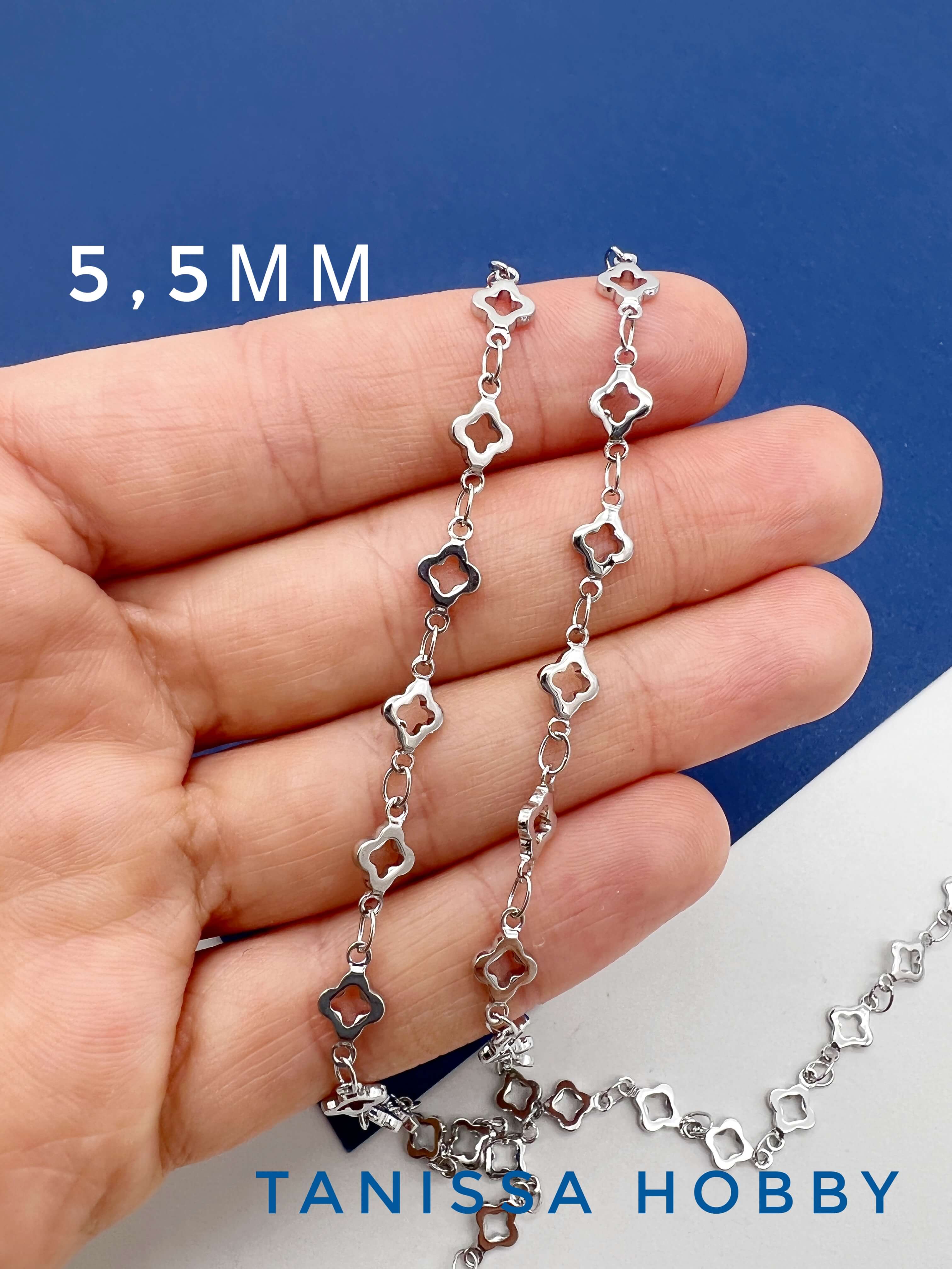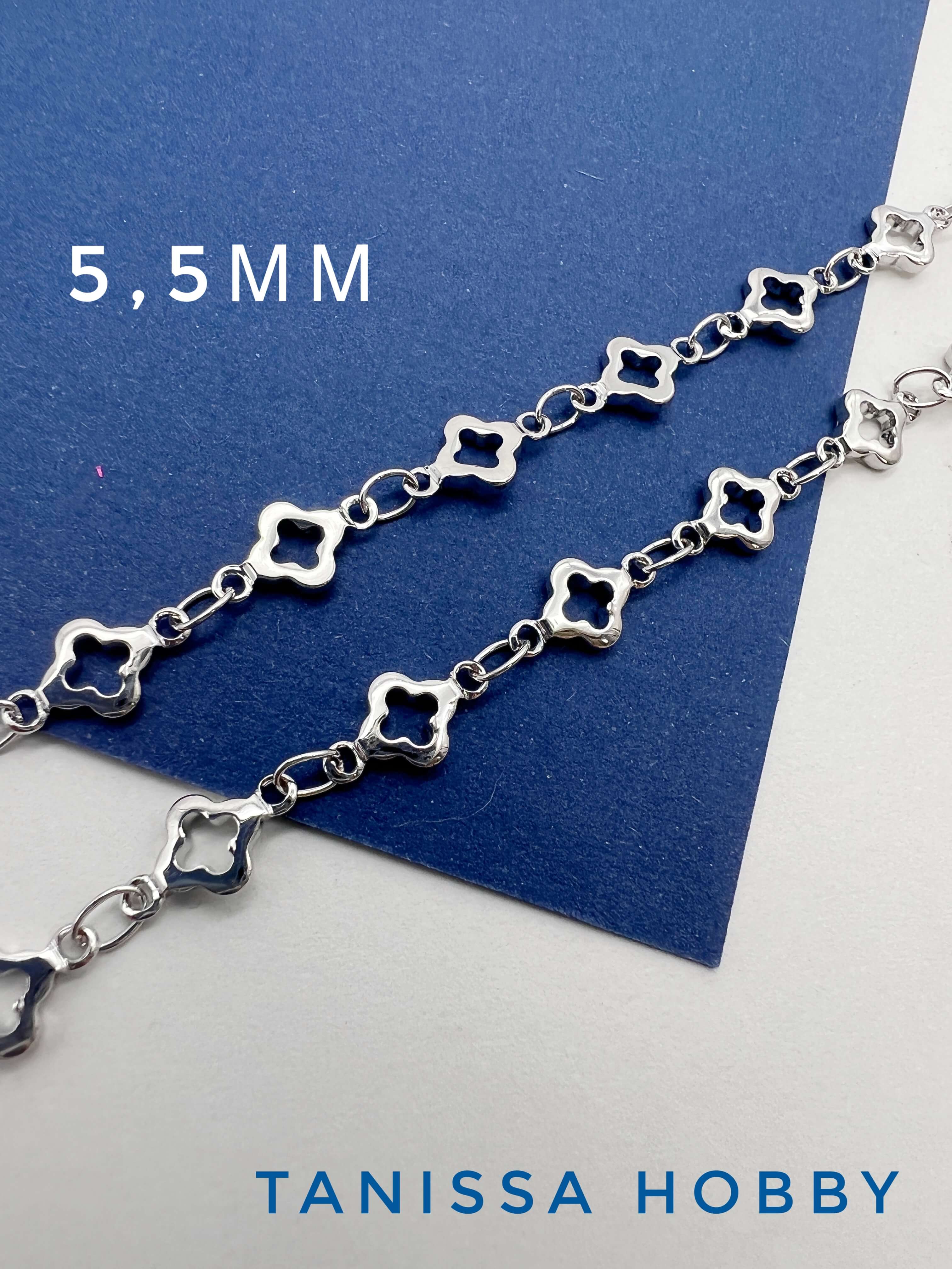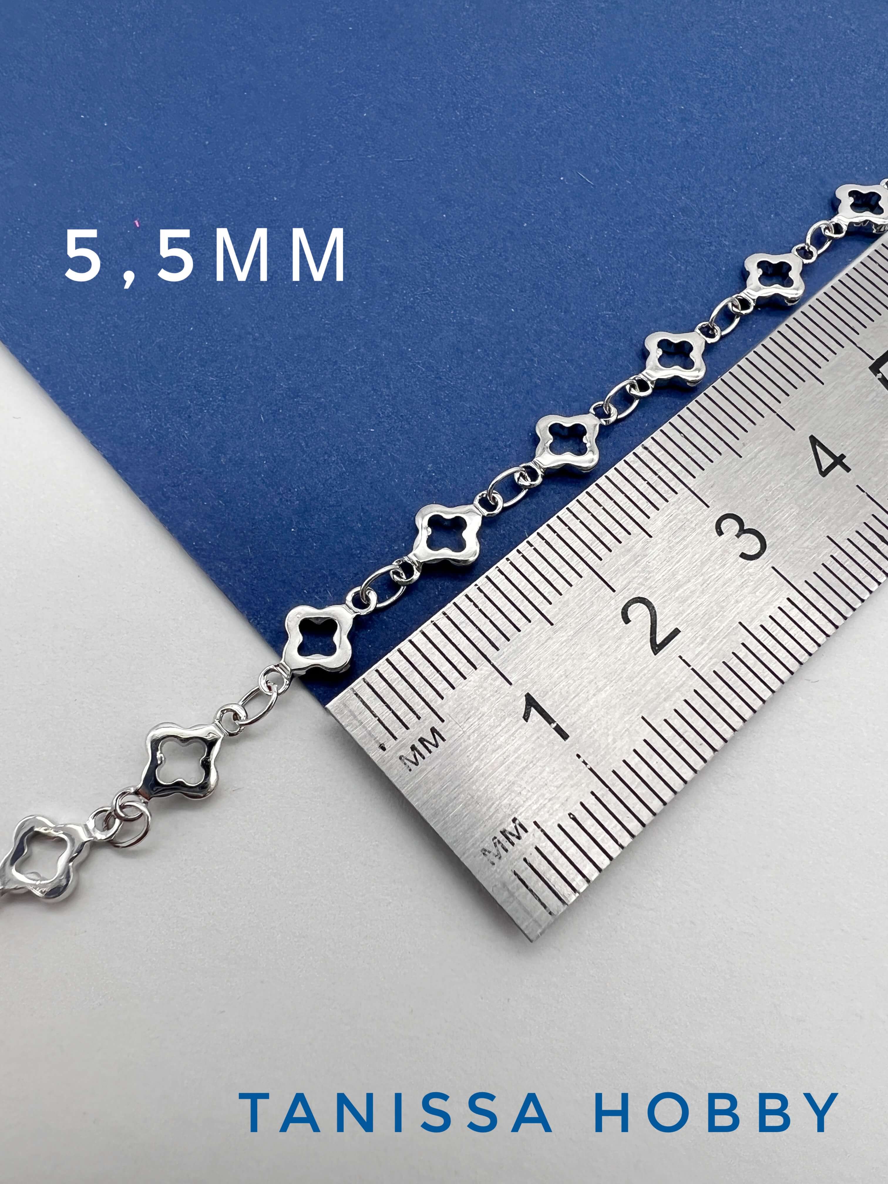 -Цепочка клевер 5,5мм, 50см, родий, СН147
