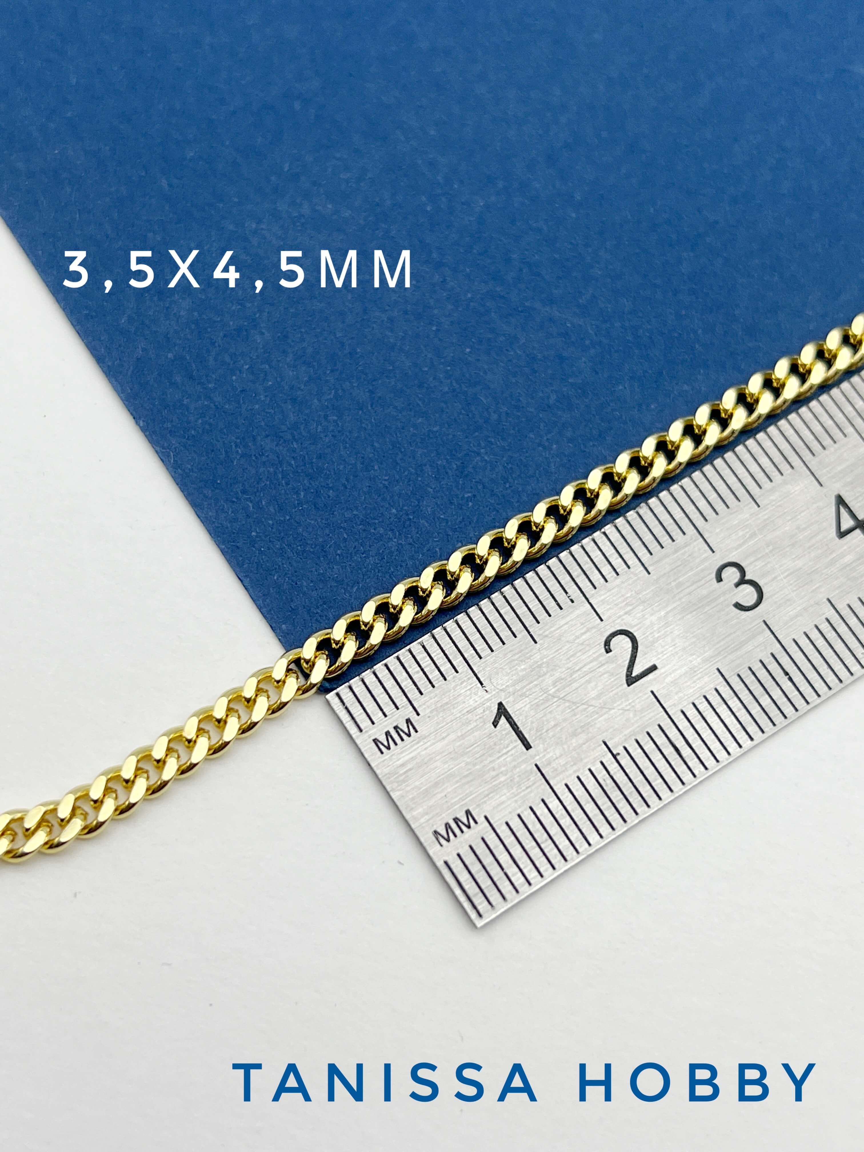 • Цепочка якорная овалы огранка, 4х2мм, сталь, позолота 50см, Ч989