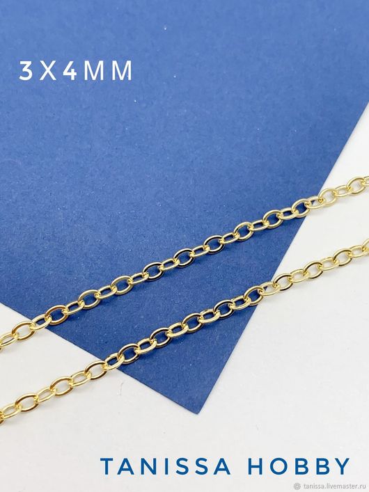 Цепочка эллипс 3х4 мм, позолота, 50 СМ. СК019