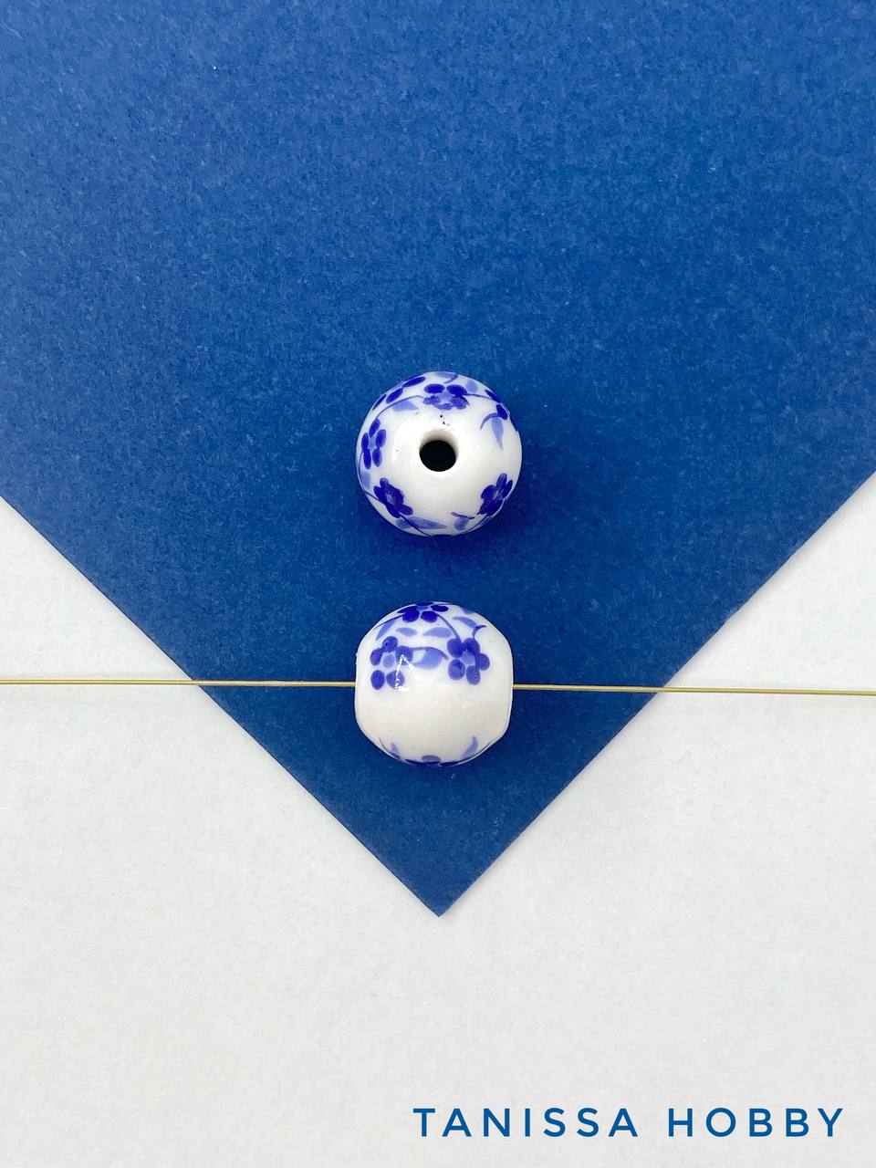 Бусина фарфоровая, керамика, 12х6мм, трубочка цилиндр, синий, гжель, штука, П246
