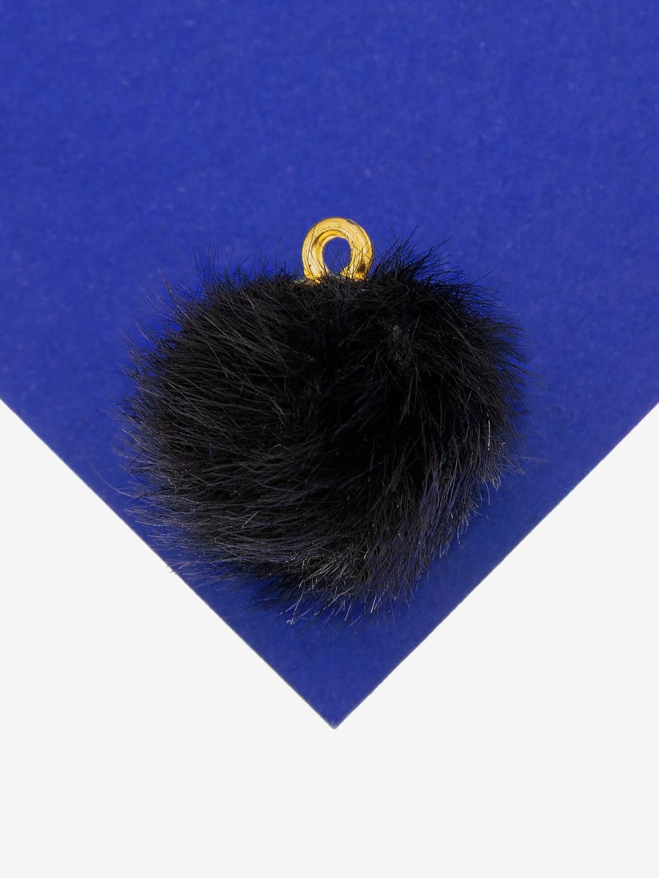 Подвеска шарик пушистик, черный мех, позолота, П309