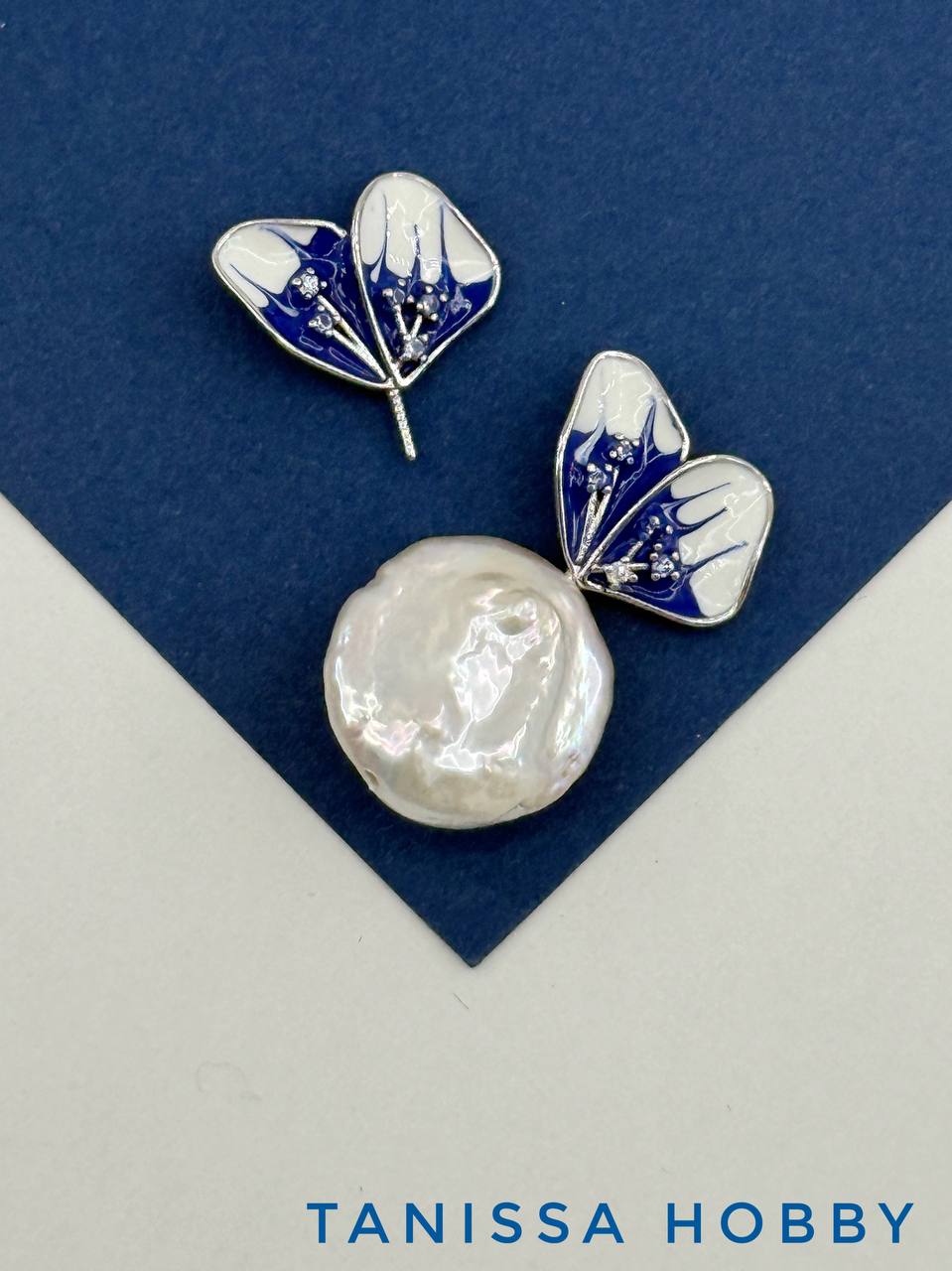 Подвеска крылья для вклейки, эмаль гжель, 12х14мм, родий, В301